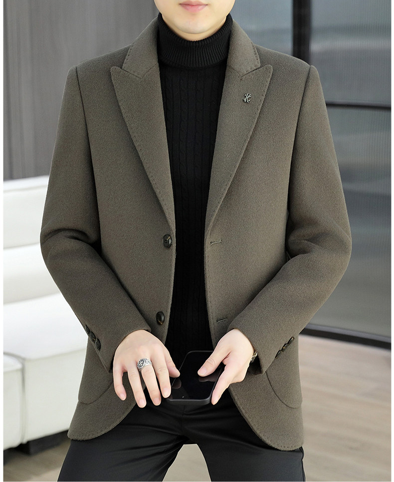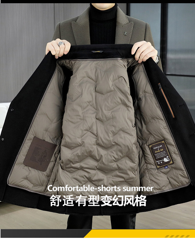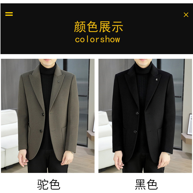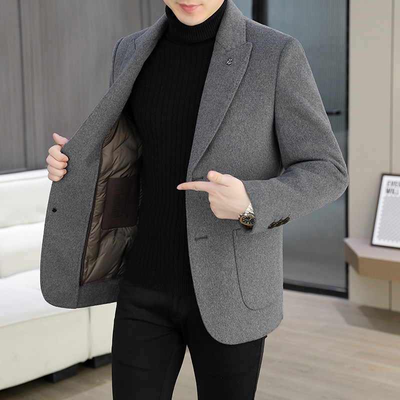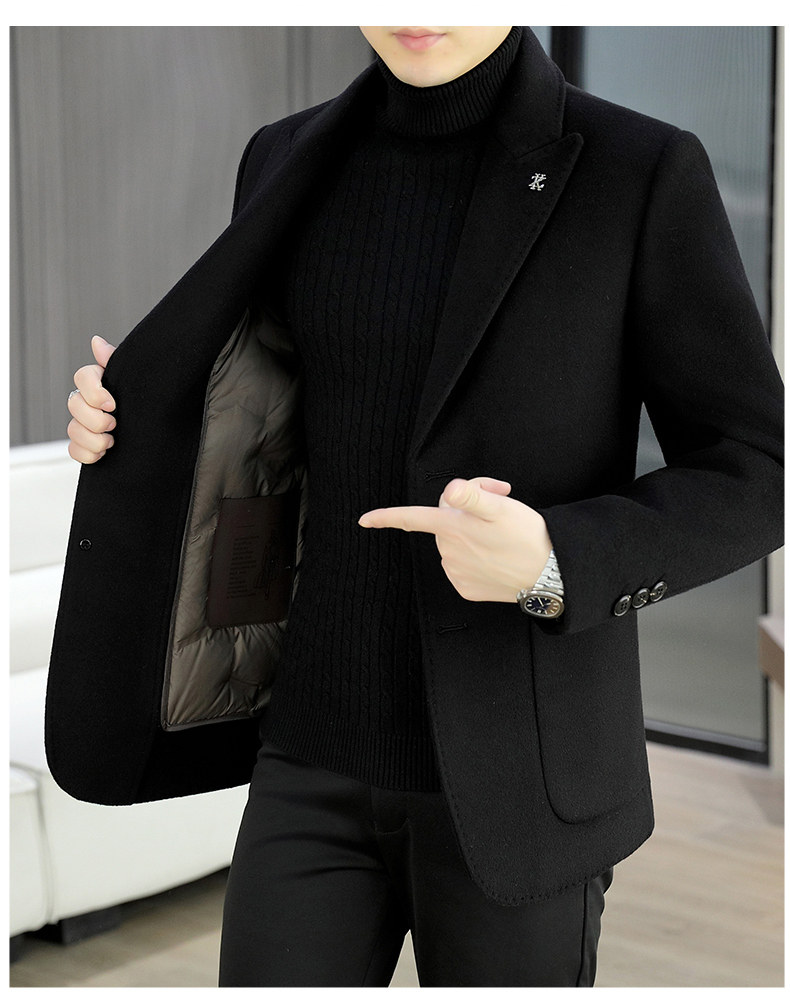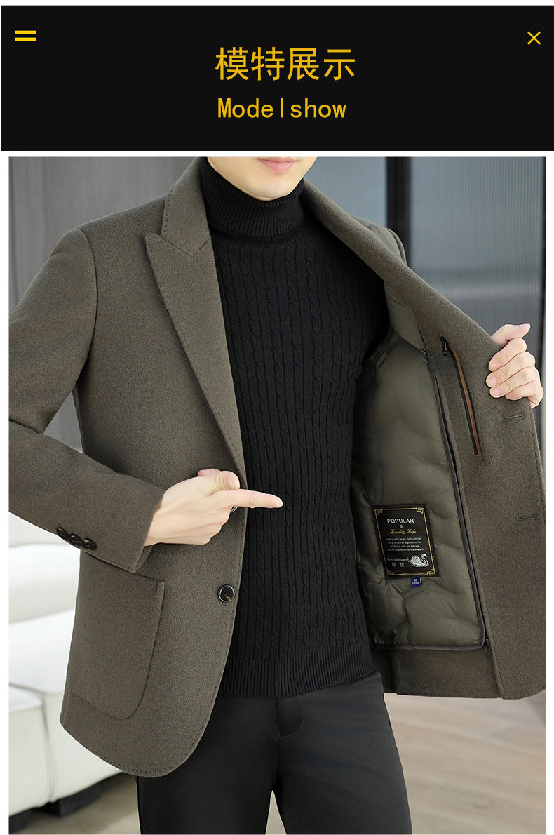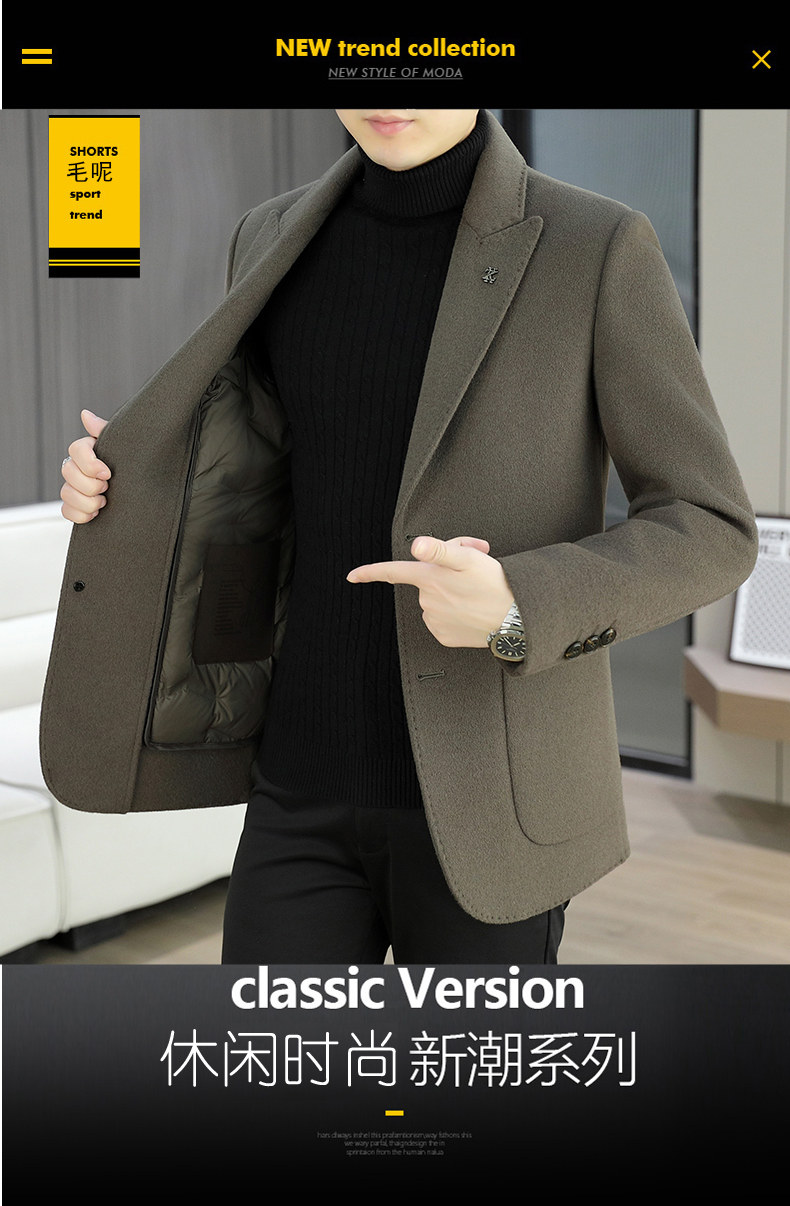 Hengyuanxiang Men's Thick Double-Sided Wool Suit, Autumn and Winter Cashmere Wool Coat, Short Style with Goose down Lining