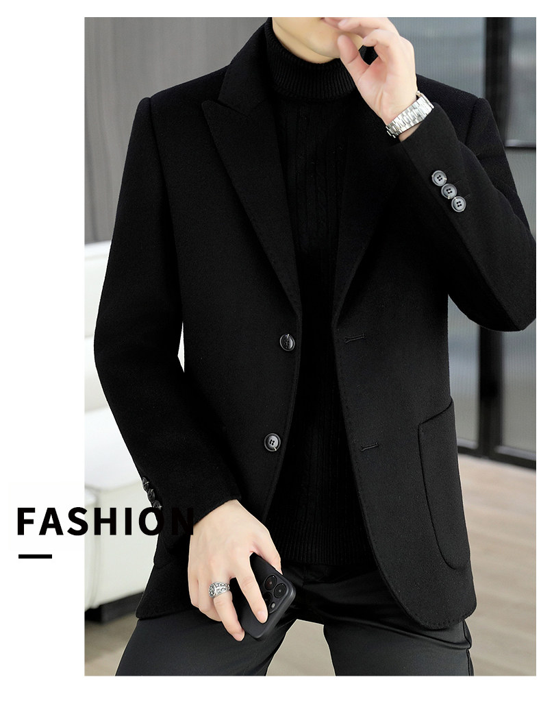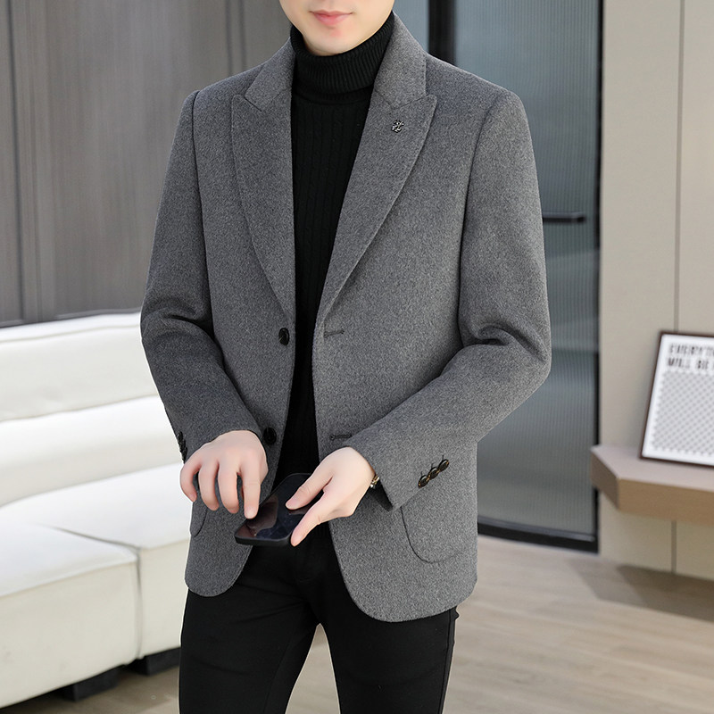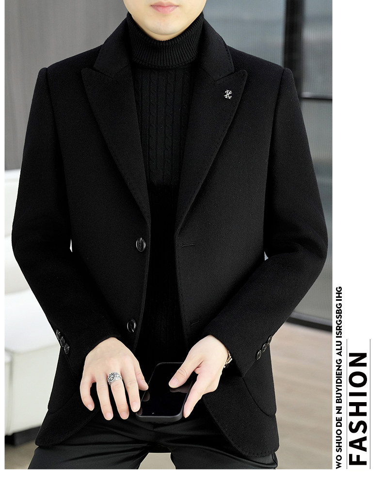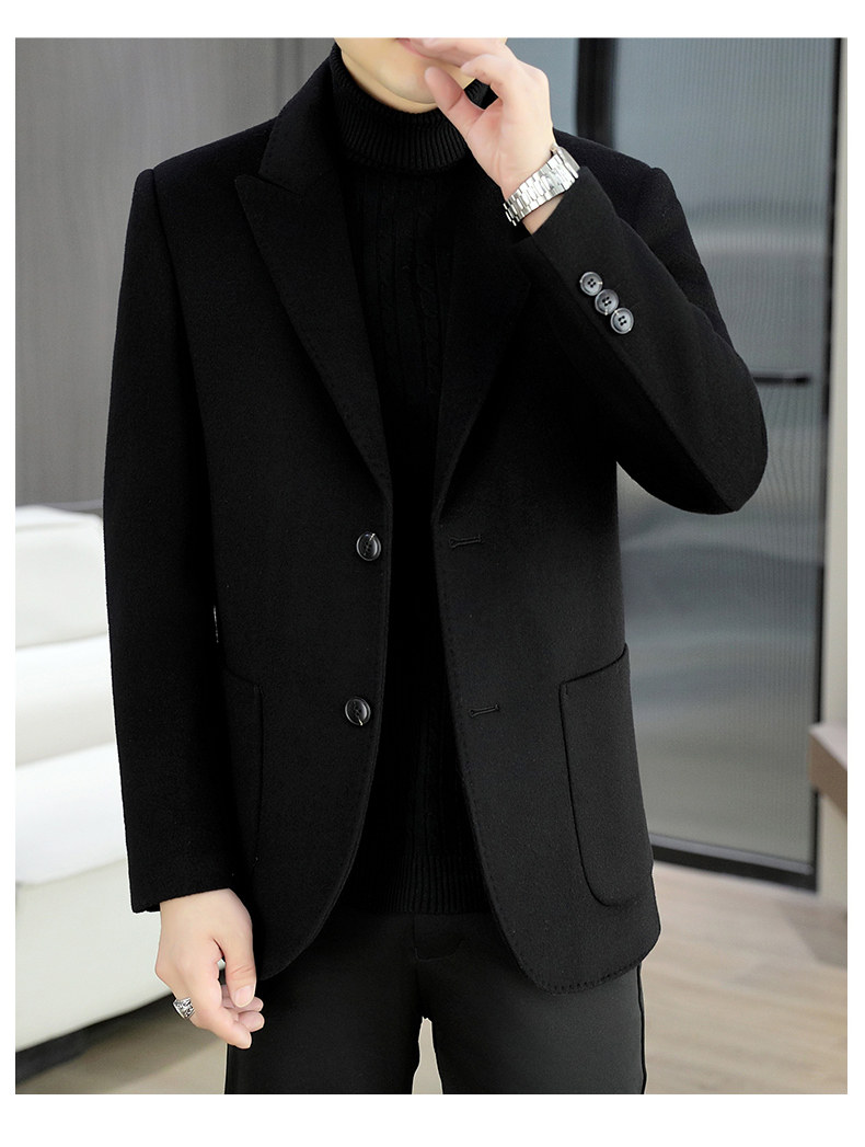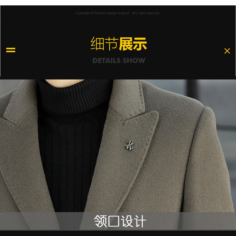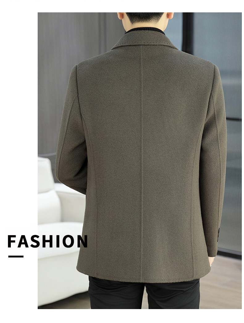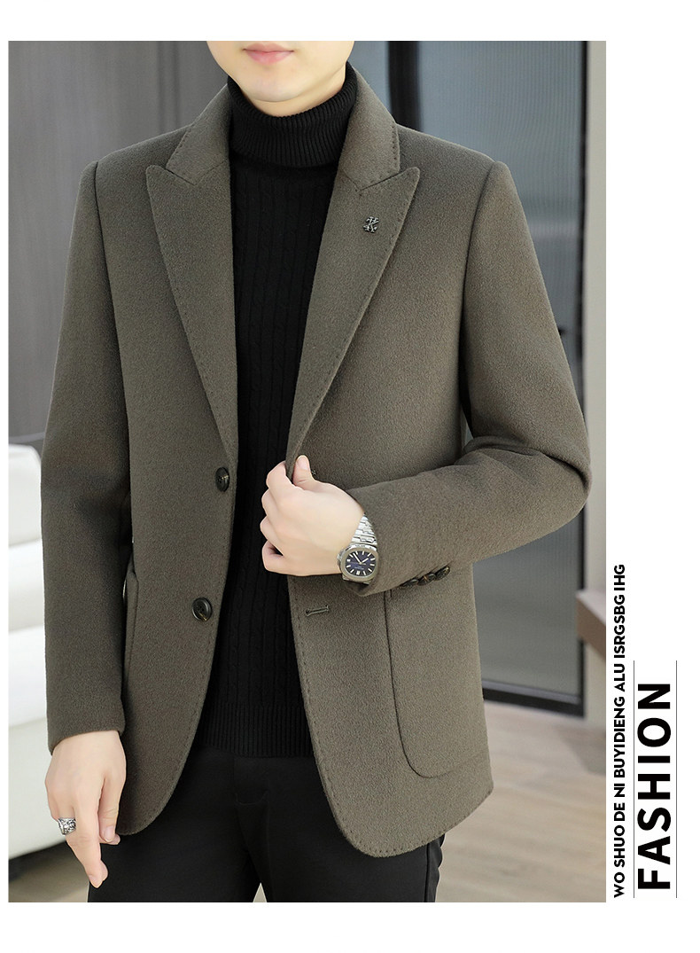 Hengyuanxiang Men's Thick Double-Sided Wool Suit, Autumn and Winter Cashmere Wool Coat, Short Style with Goose down Lining