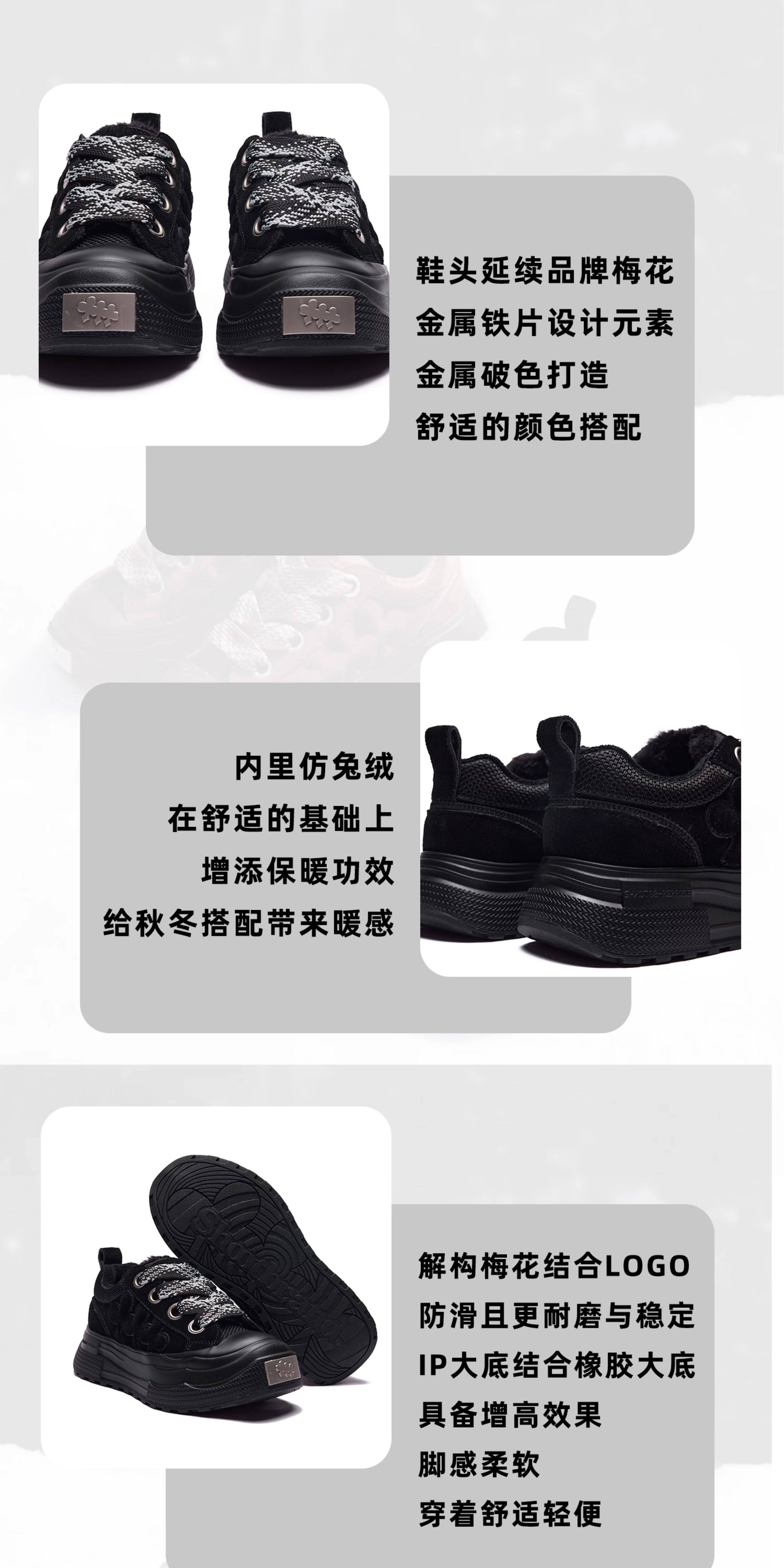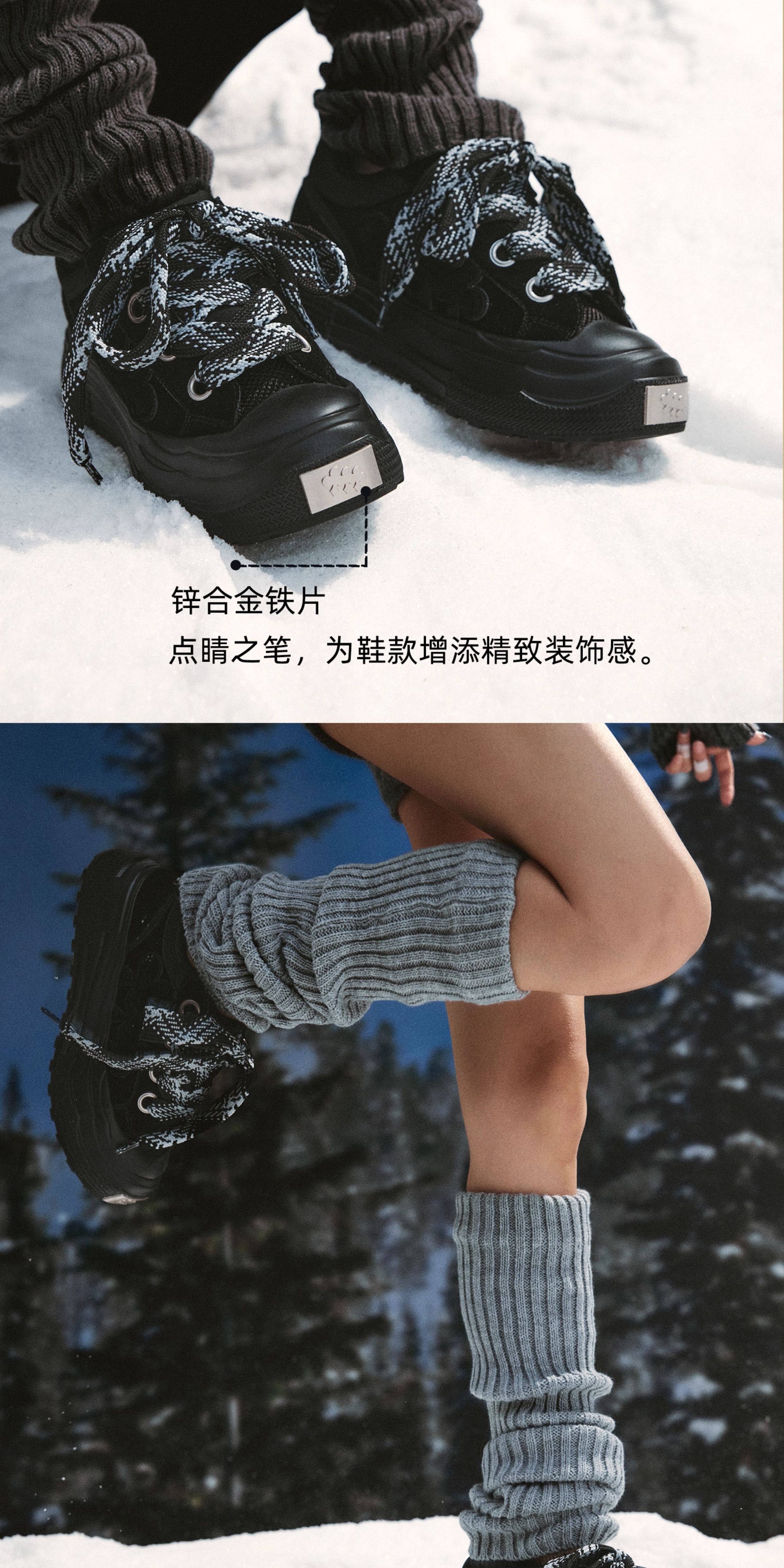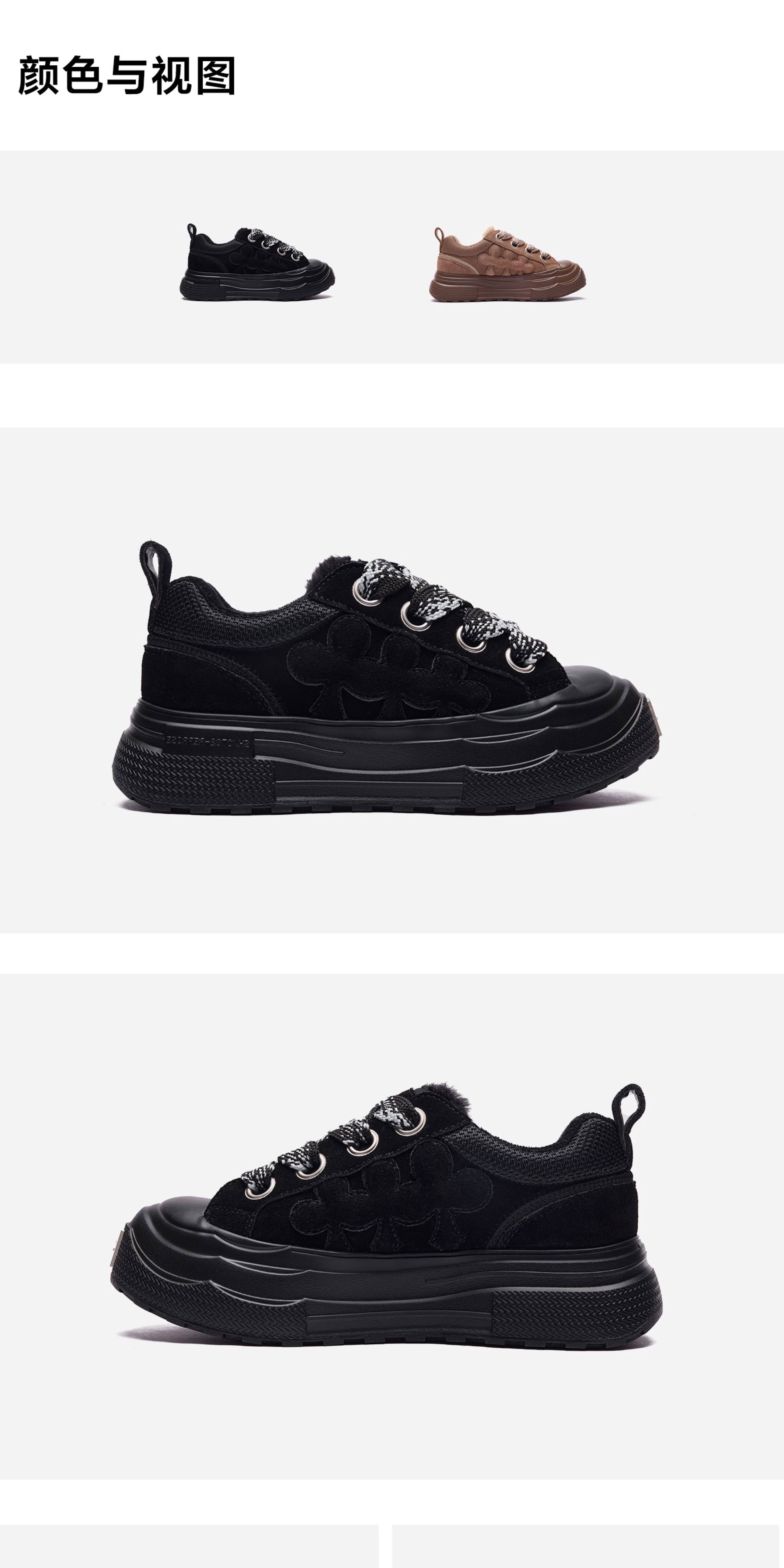 Shoot Brand Ensemble Series Black Plush Sneakers Cow Suede Thick Sole Height Increasing Warm Canvas Shoes Winter