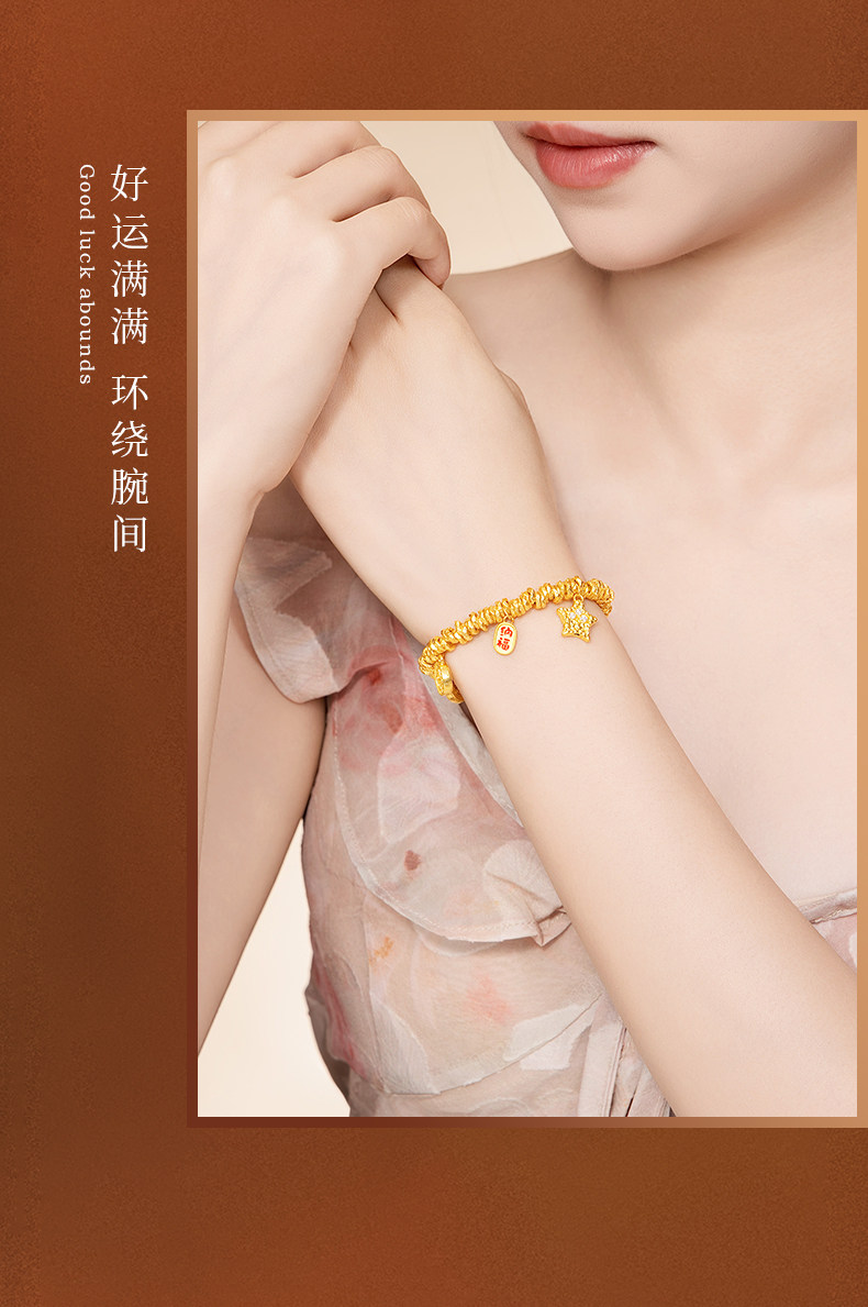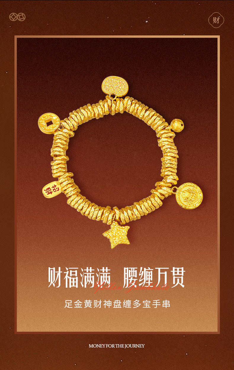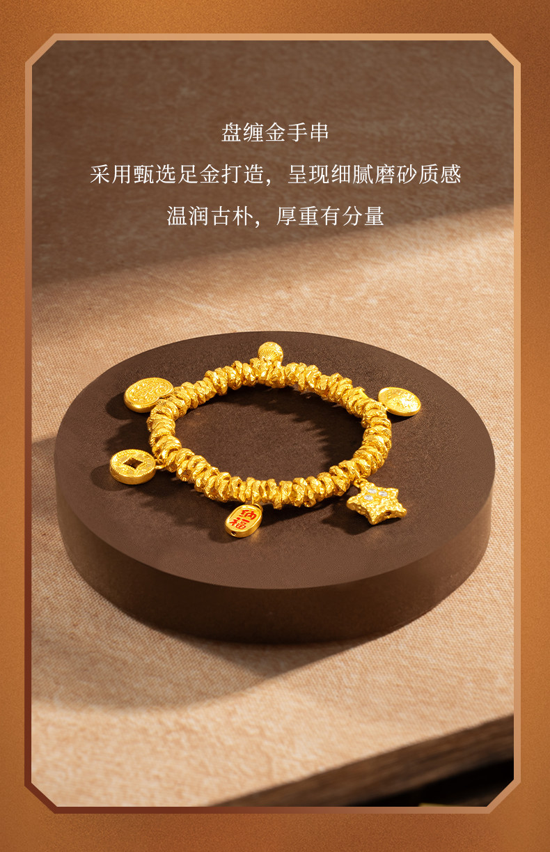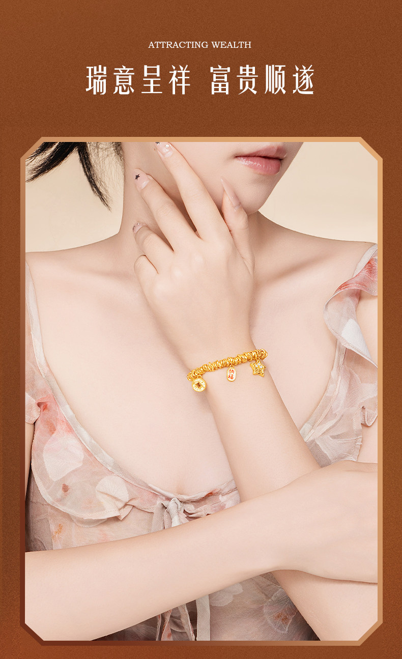 Shuibeijinhuo Official Flagship Store Pure Gold 999 Yellow Wealth God Coiled Multi-Treasure Bracelet Gift for Girlfriend