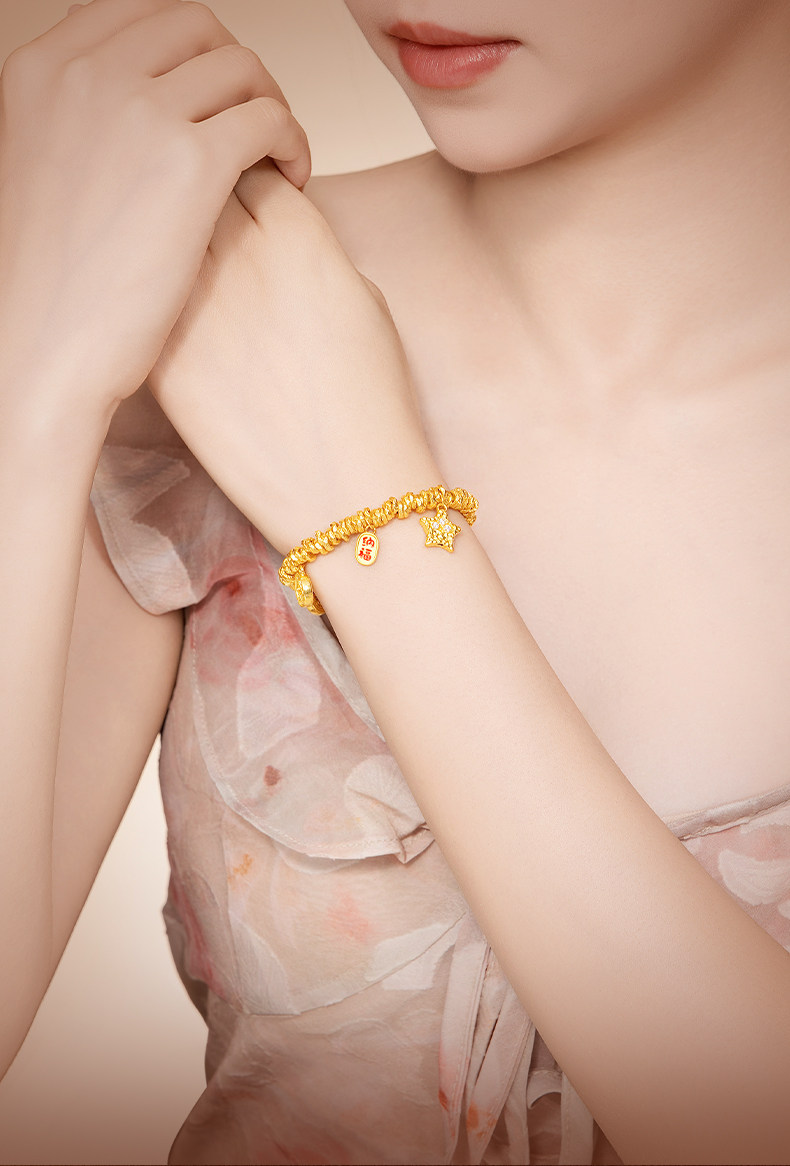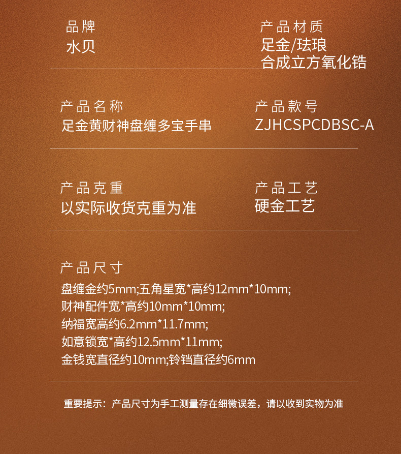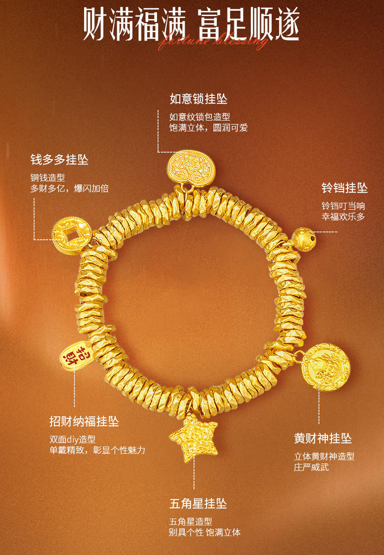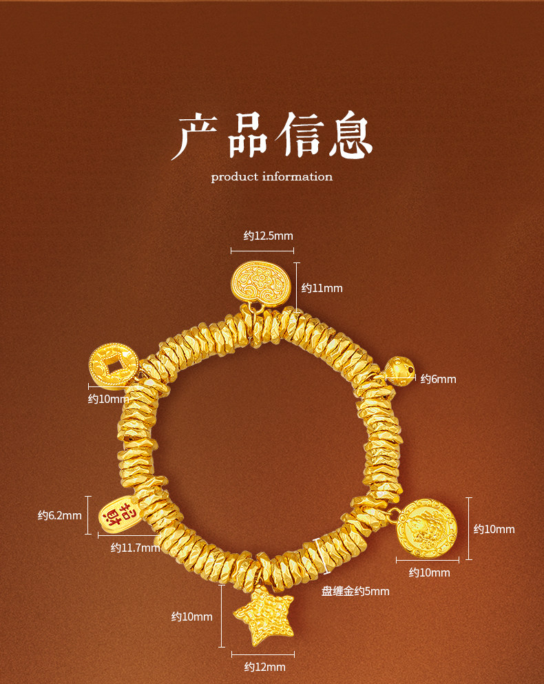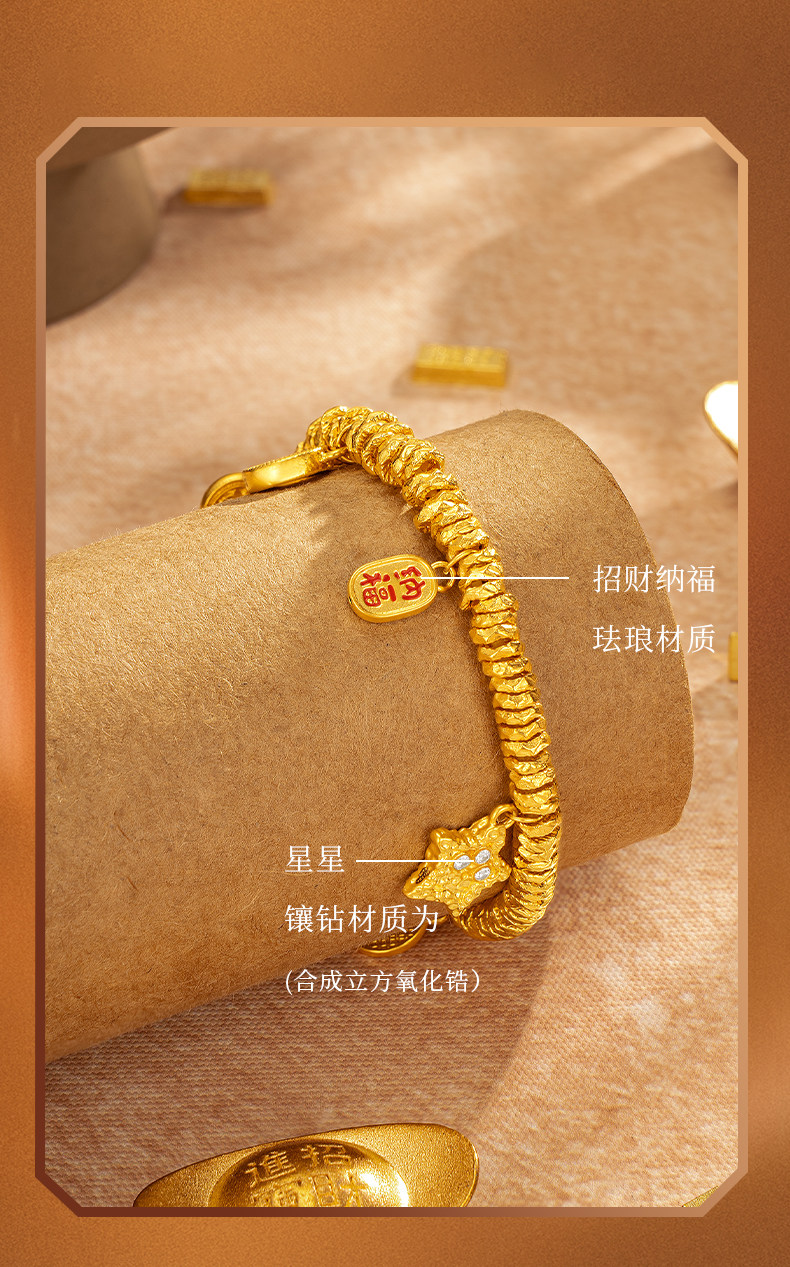 Shuibeijinhuo Official Flagship Store Pure Gold 999 Yellow Wealth God Coiled Multi-Treasure Bracelet Gift for Girlfriend