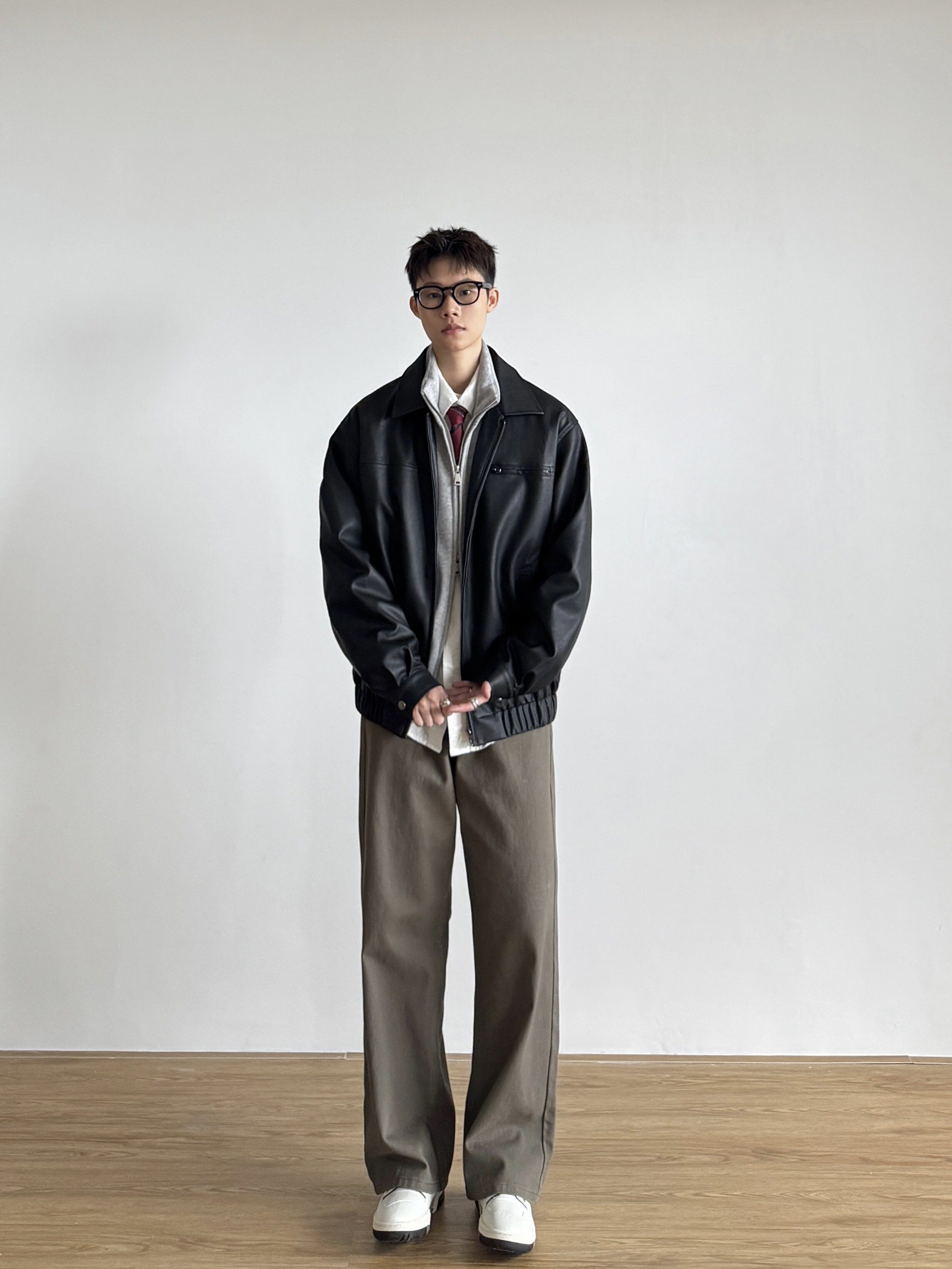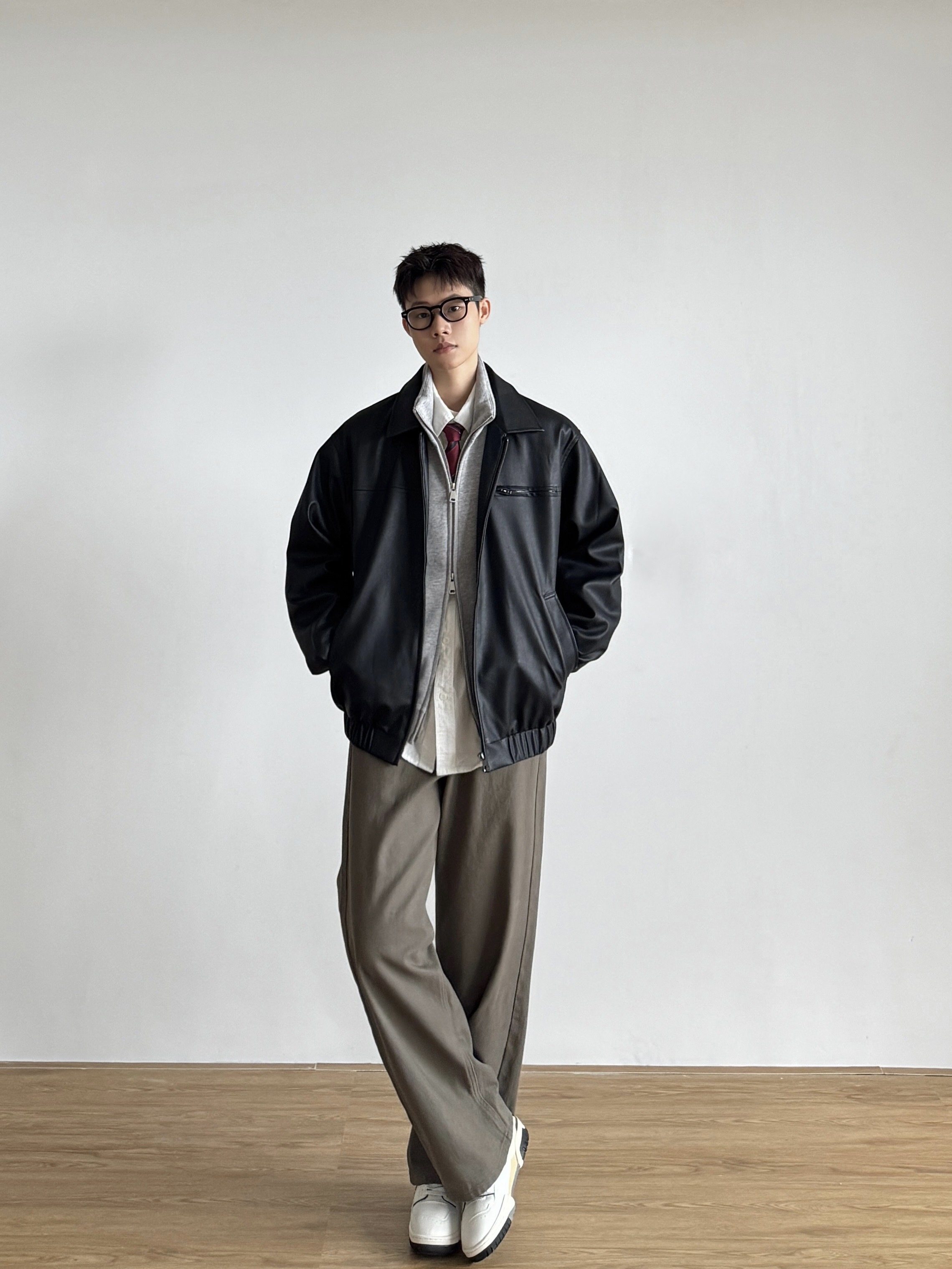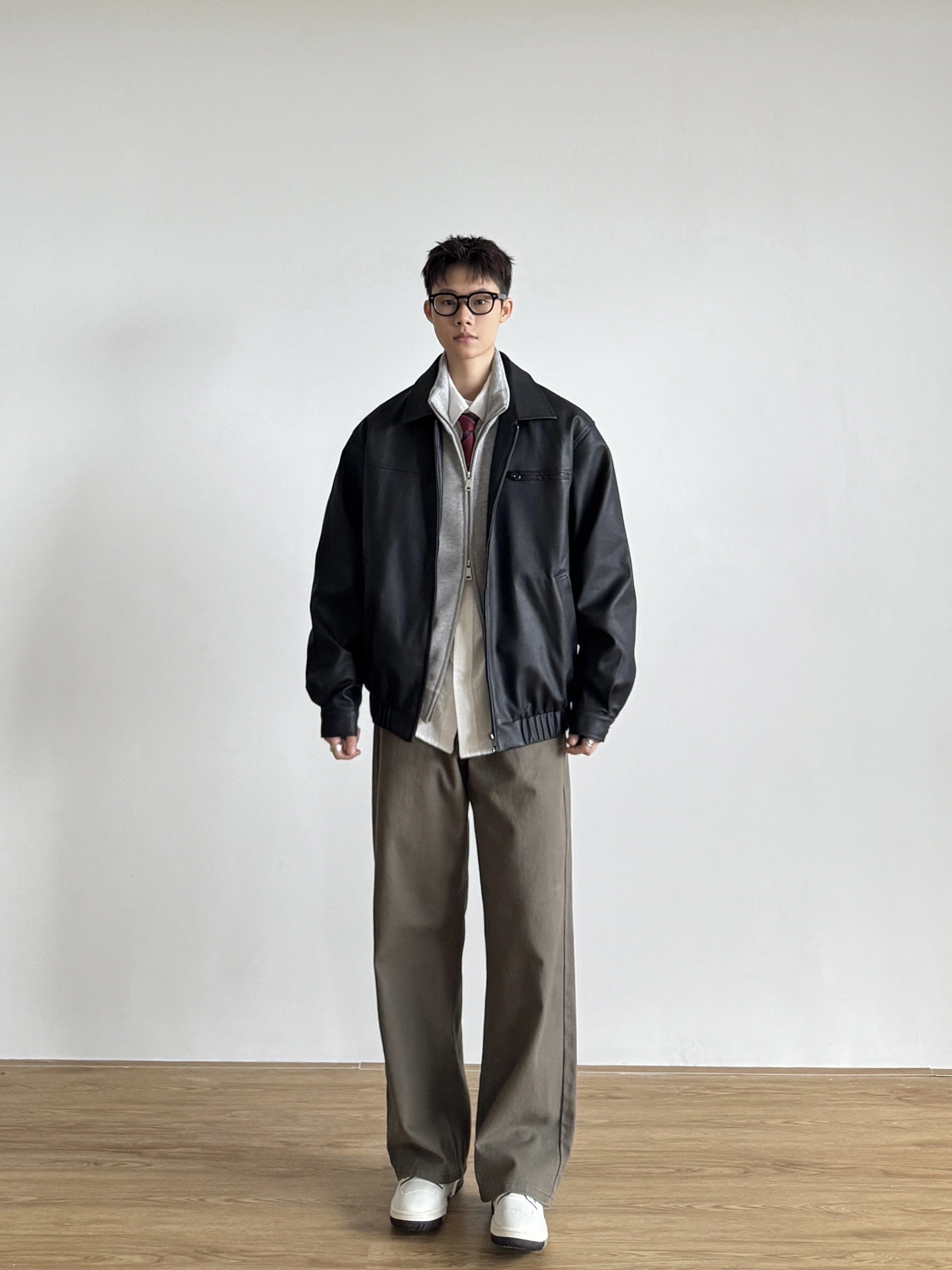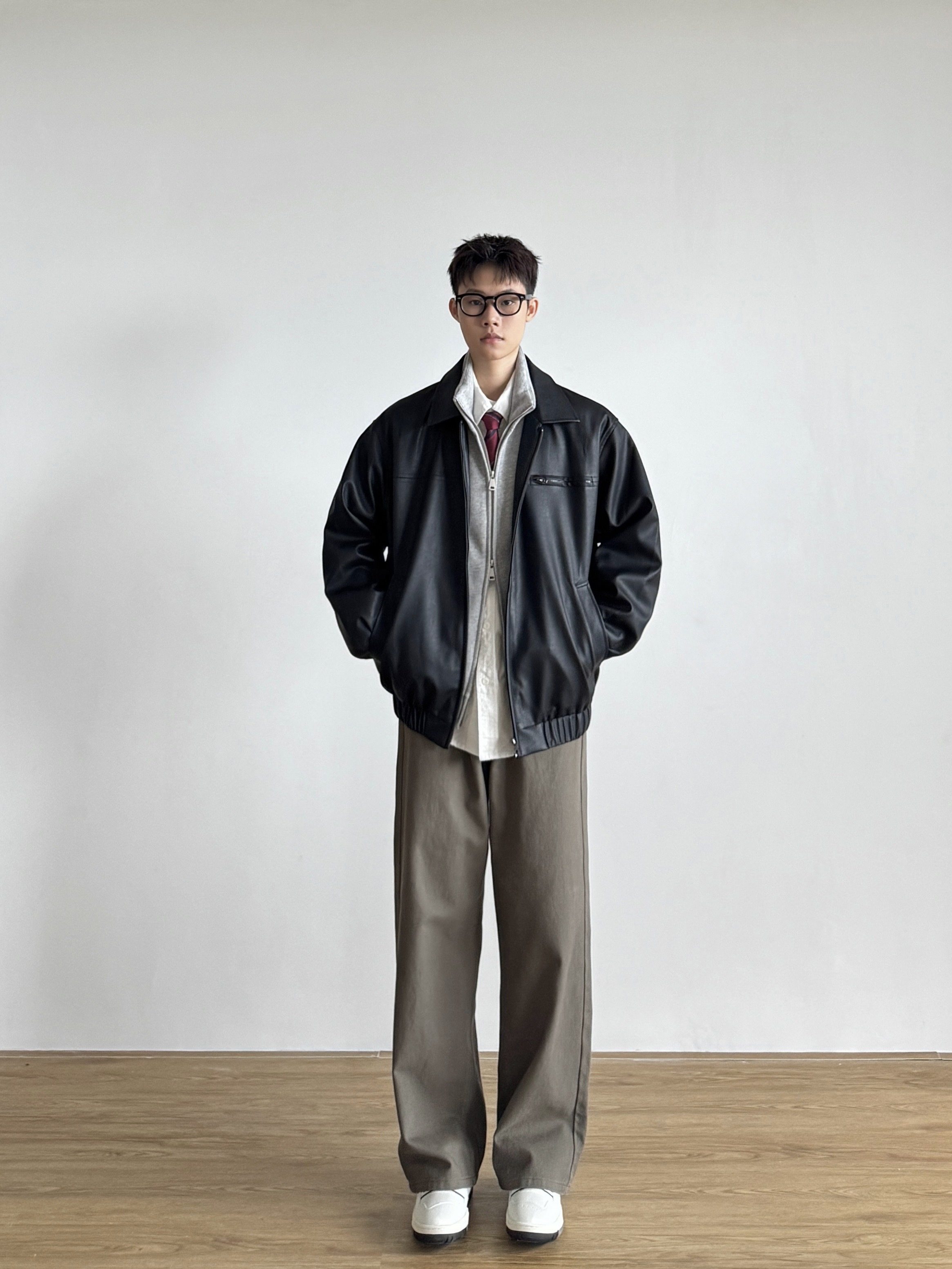 Siiiend American Retro Leather Jacket for Men, Loose Casual Versatile Lapel Biker Jacket for Autumn