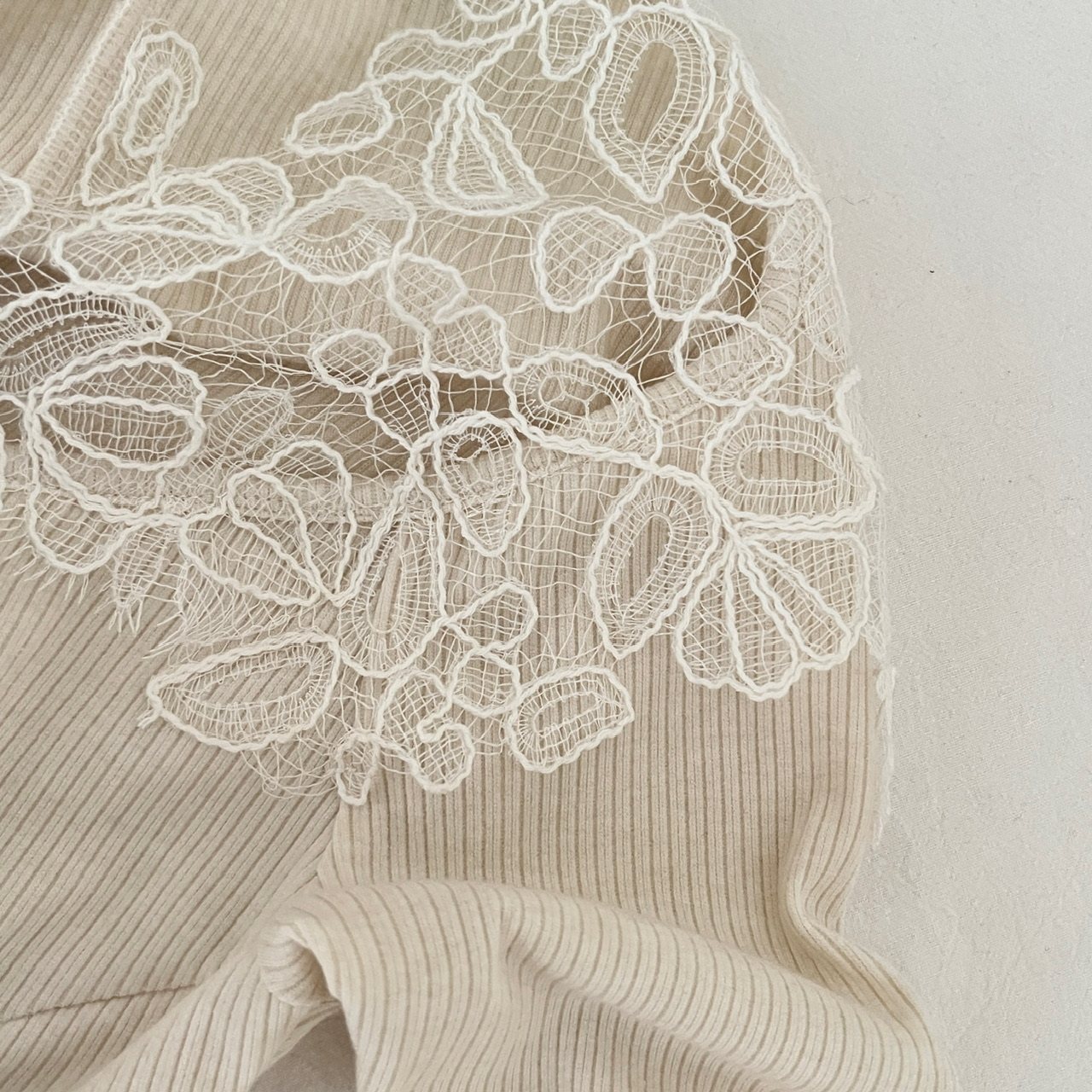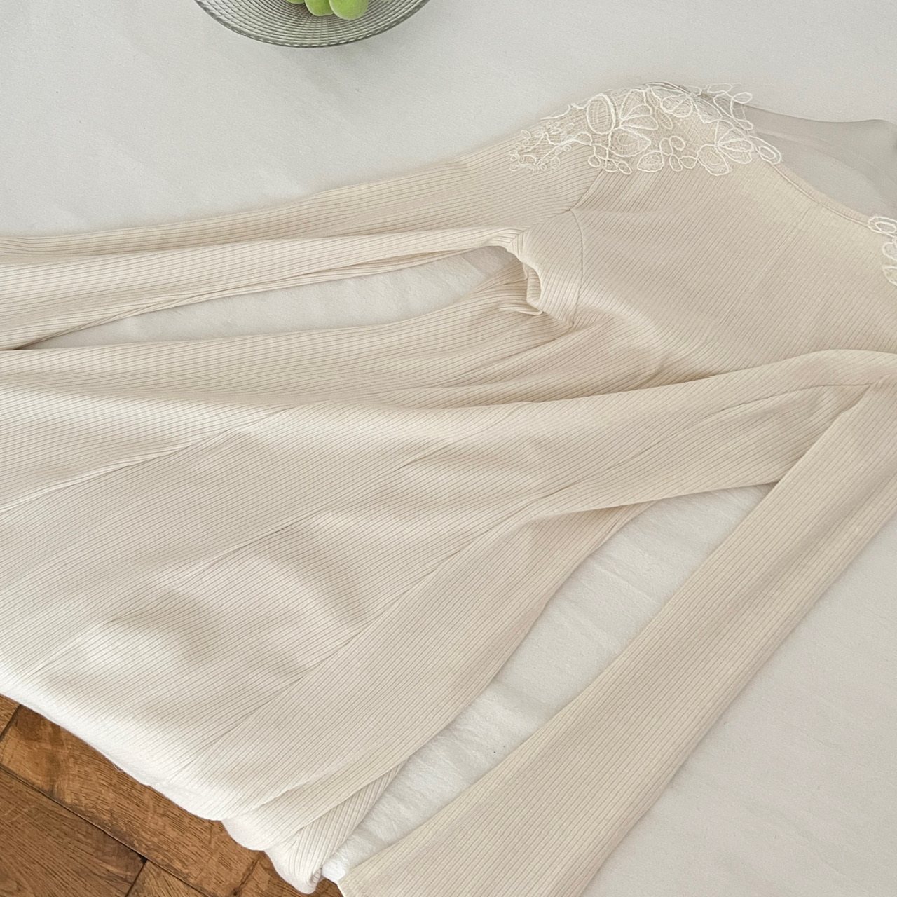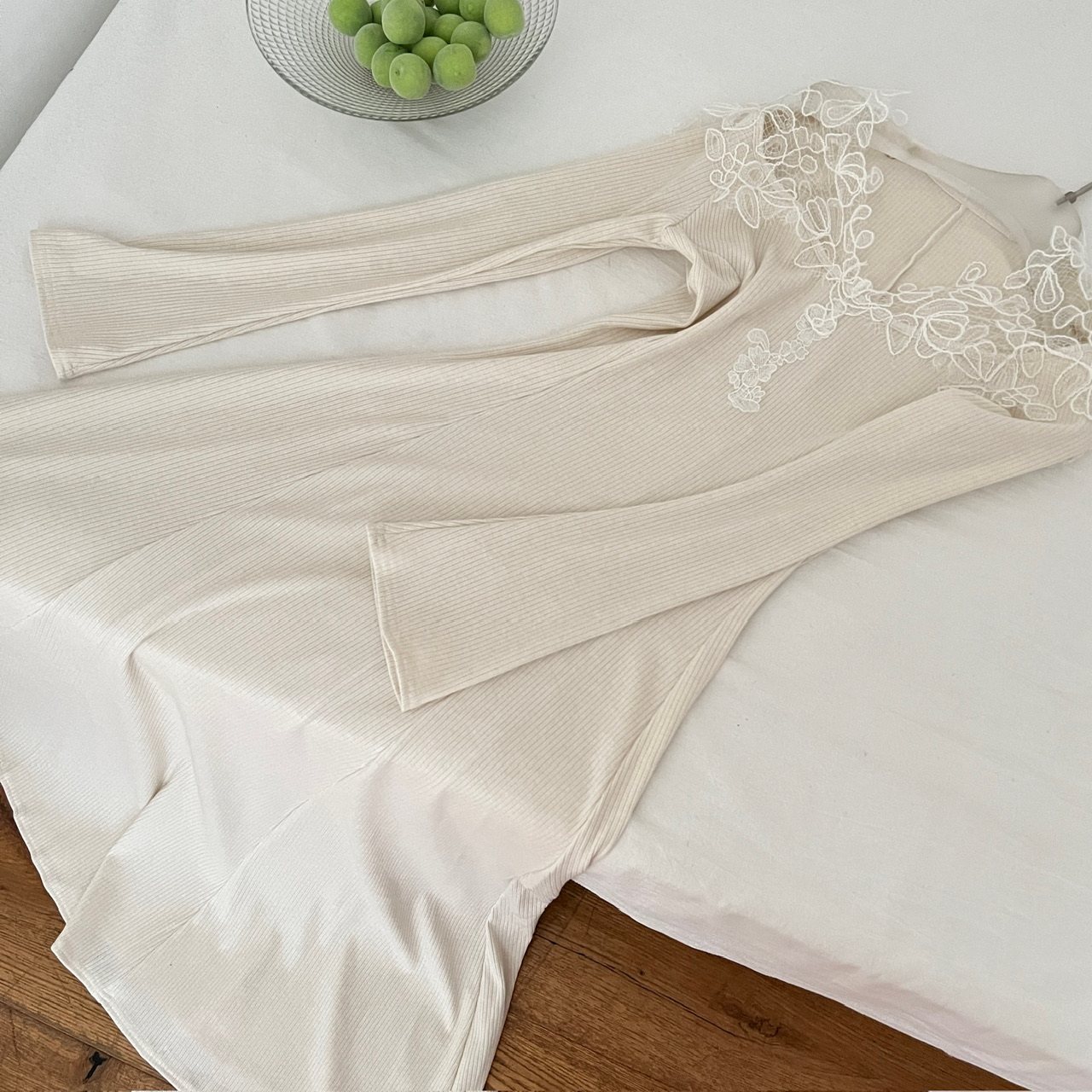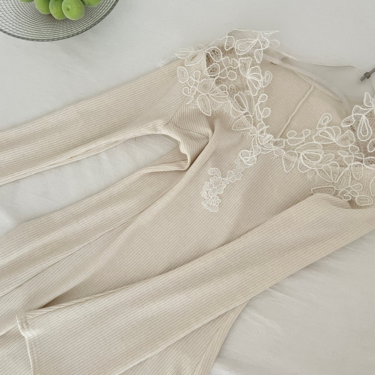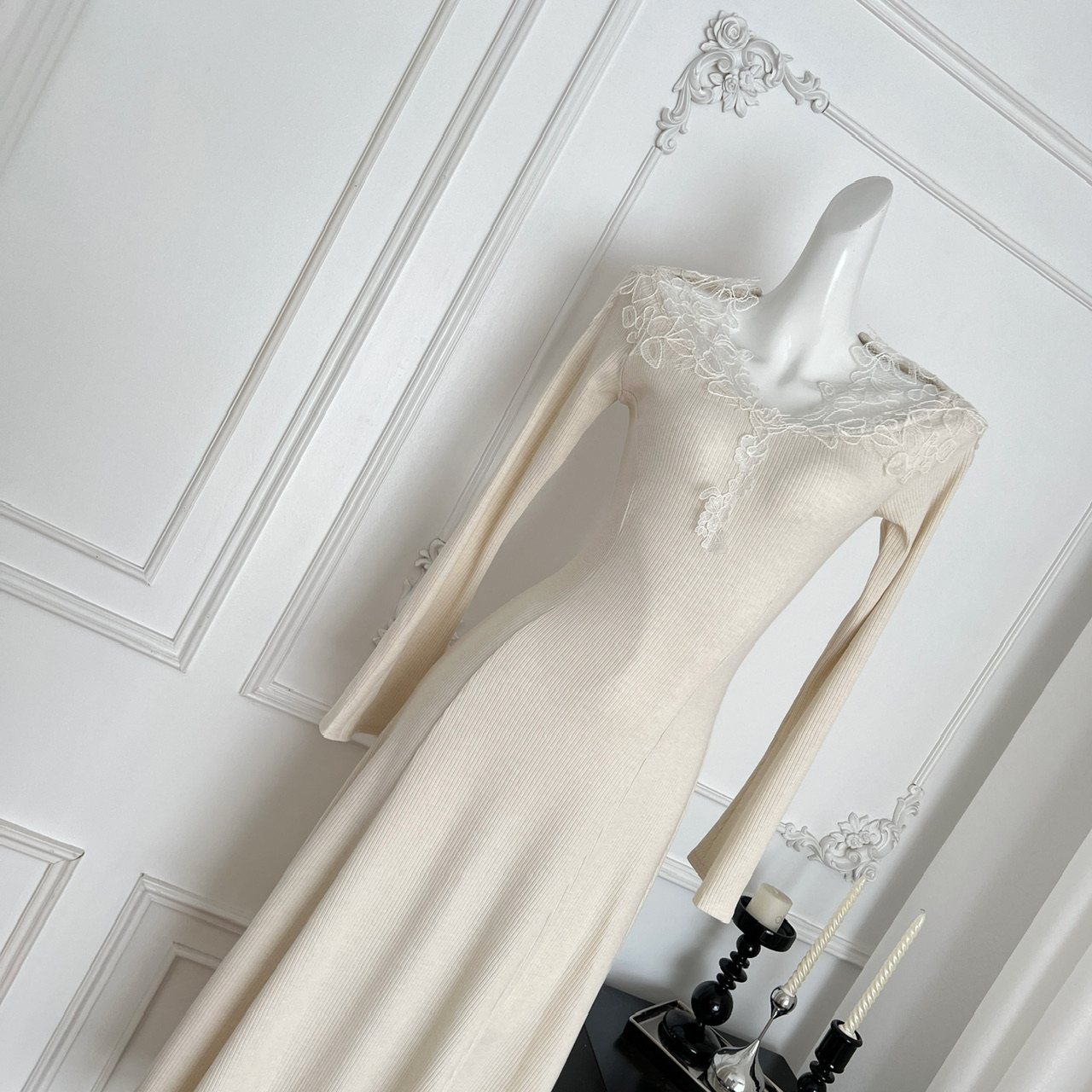 Peach LAOSHU Snowy and Gentle Atmosphere Lace V-Neck Knitted Dress with Waist-Cinching, Slimming A-Line Long Skirt