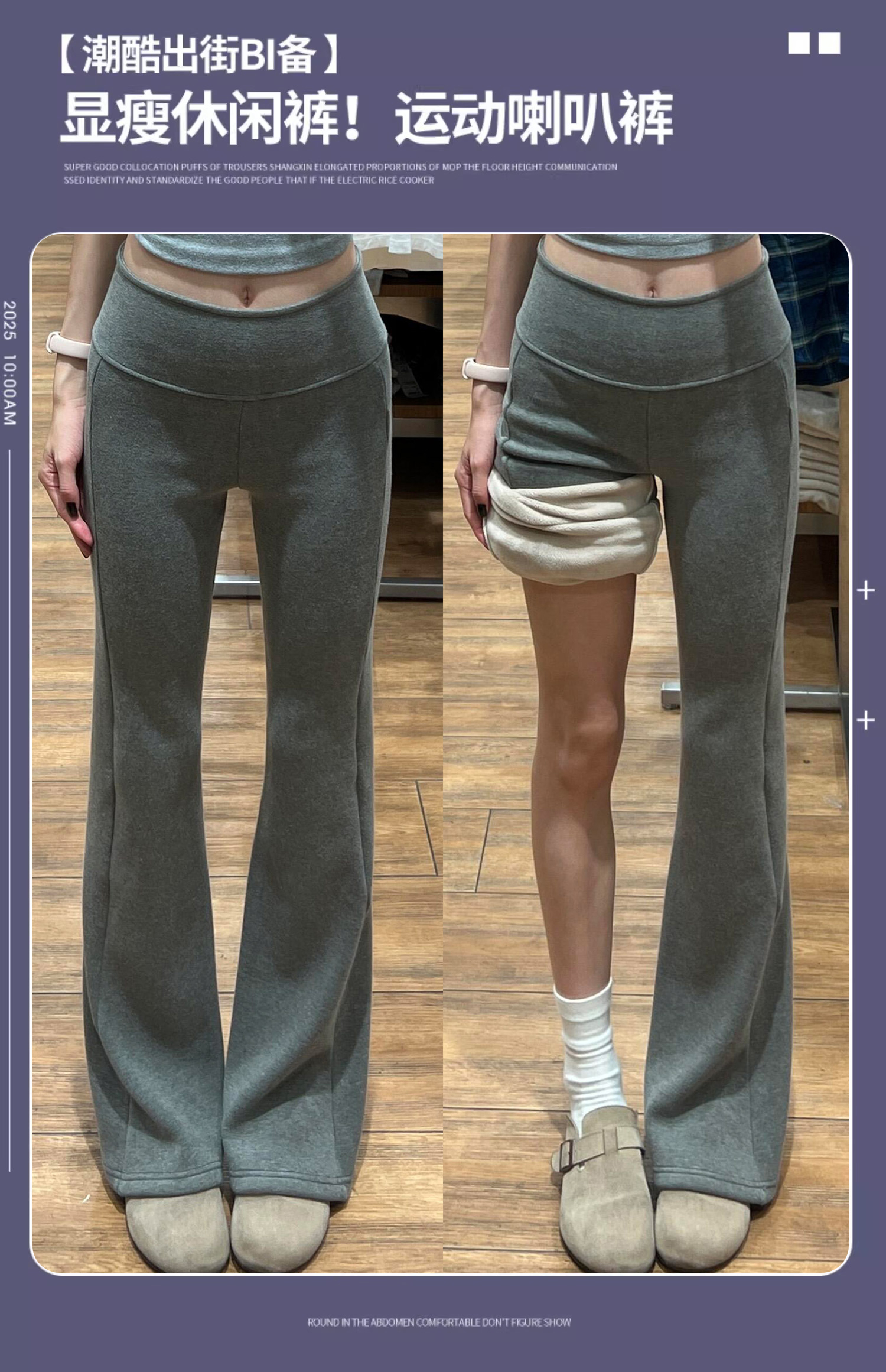Lulu Flared Pants for Women, Autumn and Winter, Fleece-Lined, Low-Waisted, Drapey, Outerwear Leggings, Petite, Sports Yoga Bell-Bottom Sweatpants