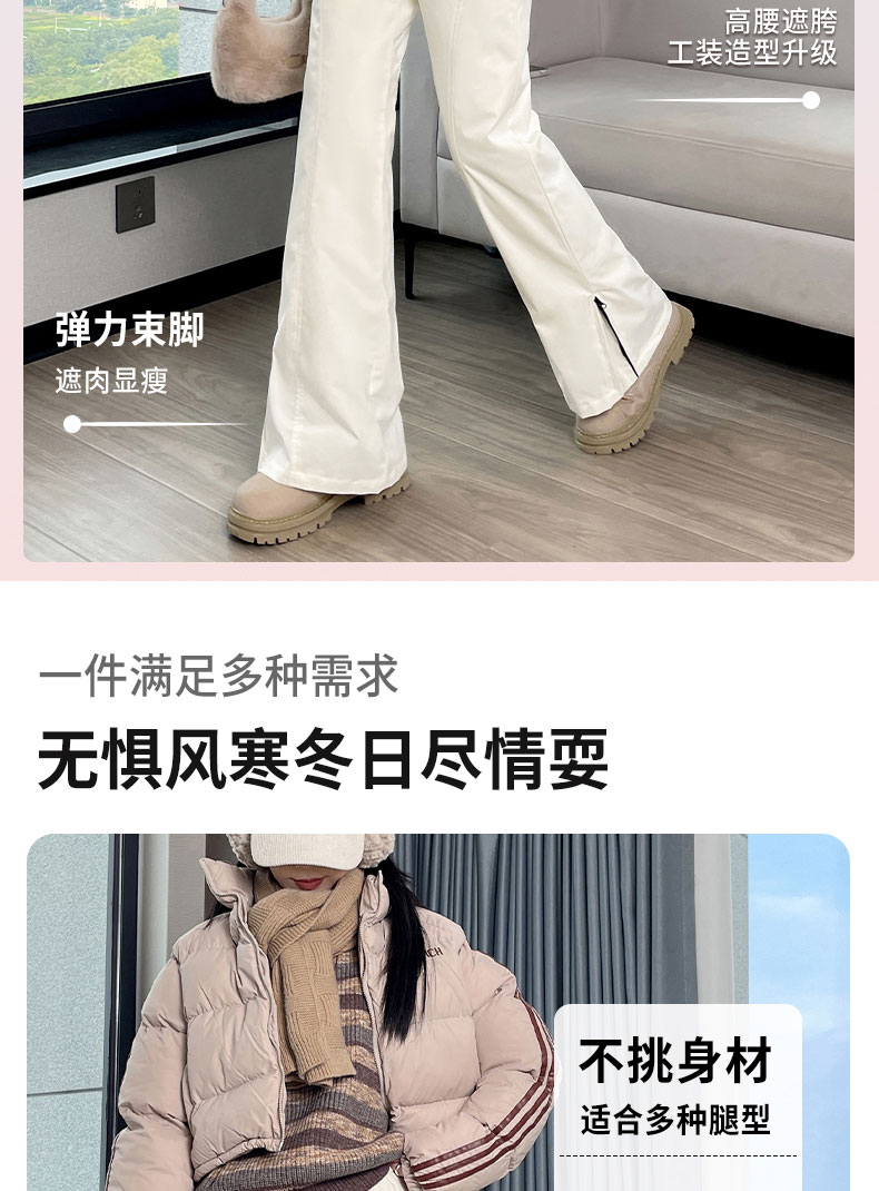 Yalu down Pants for Women, Outerwear, 2025 New Winter Style, Fleece-Lined, Thickened, Slightly Flared, Waterproof, Warm, Casual Pants, Lulu Style