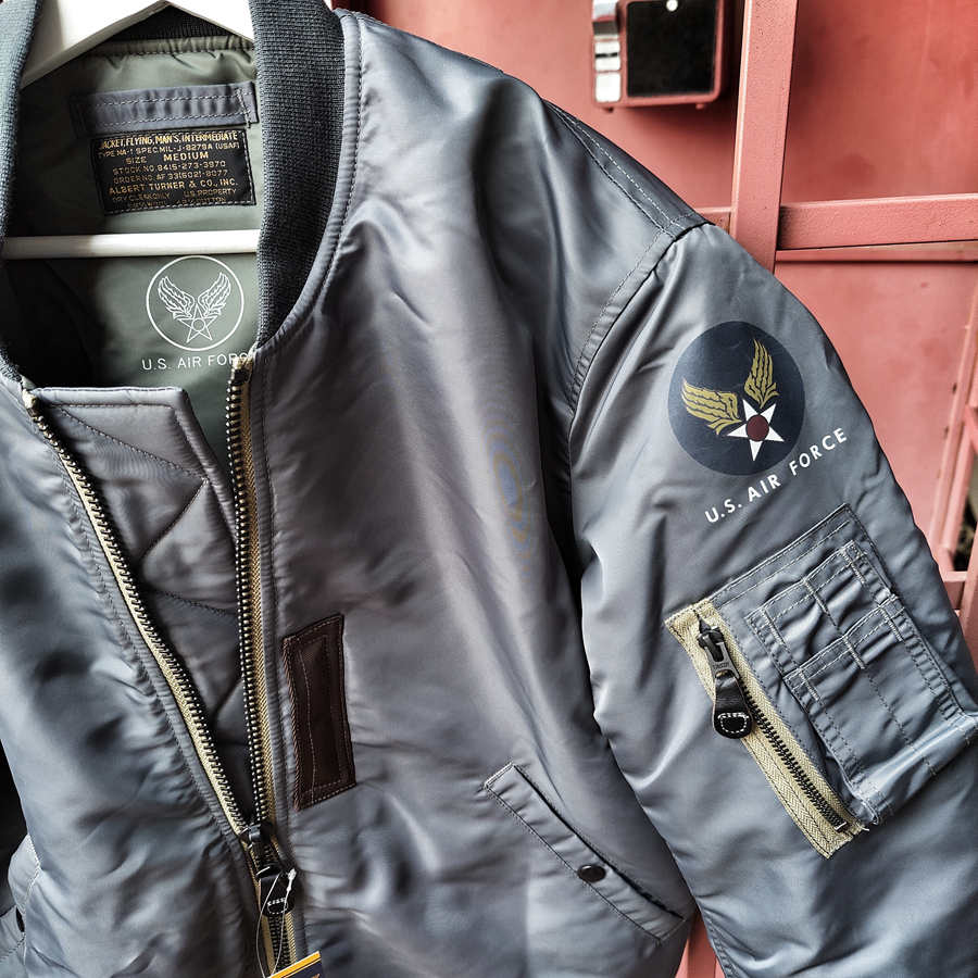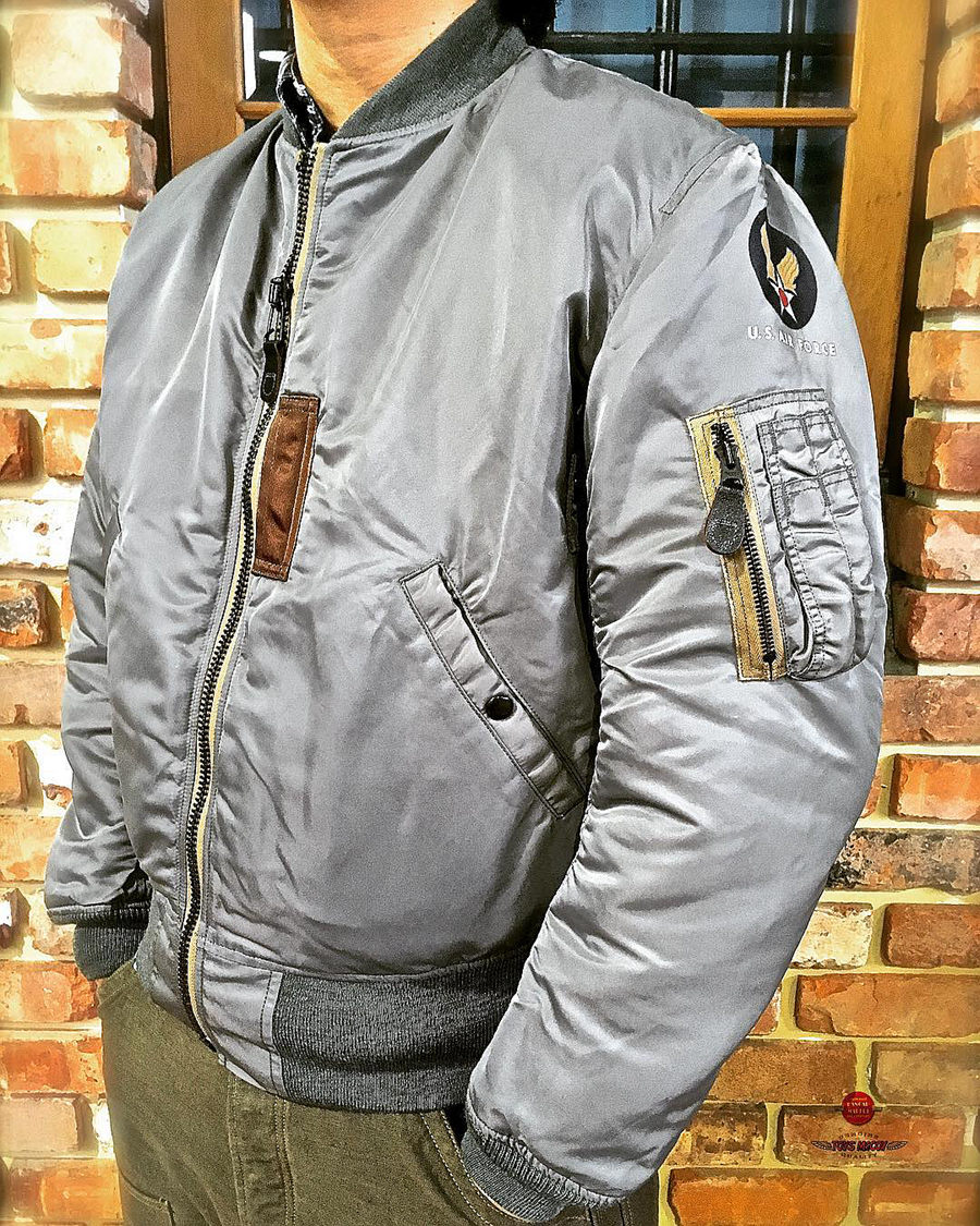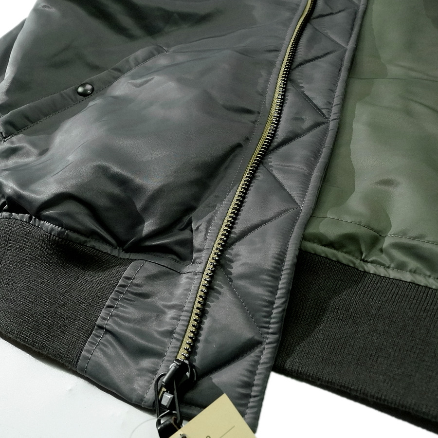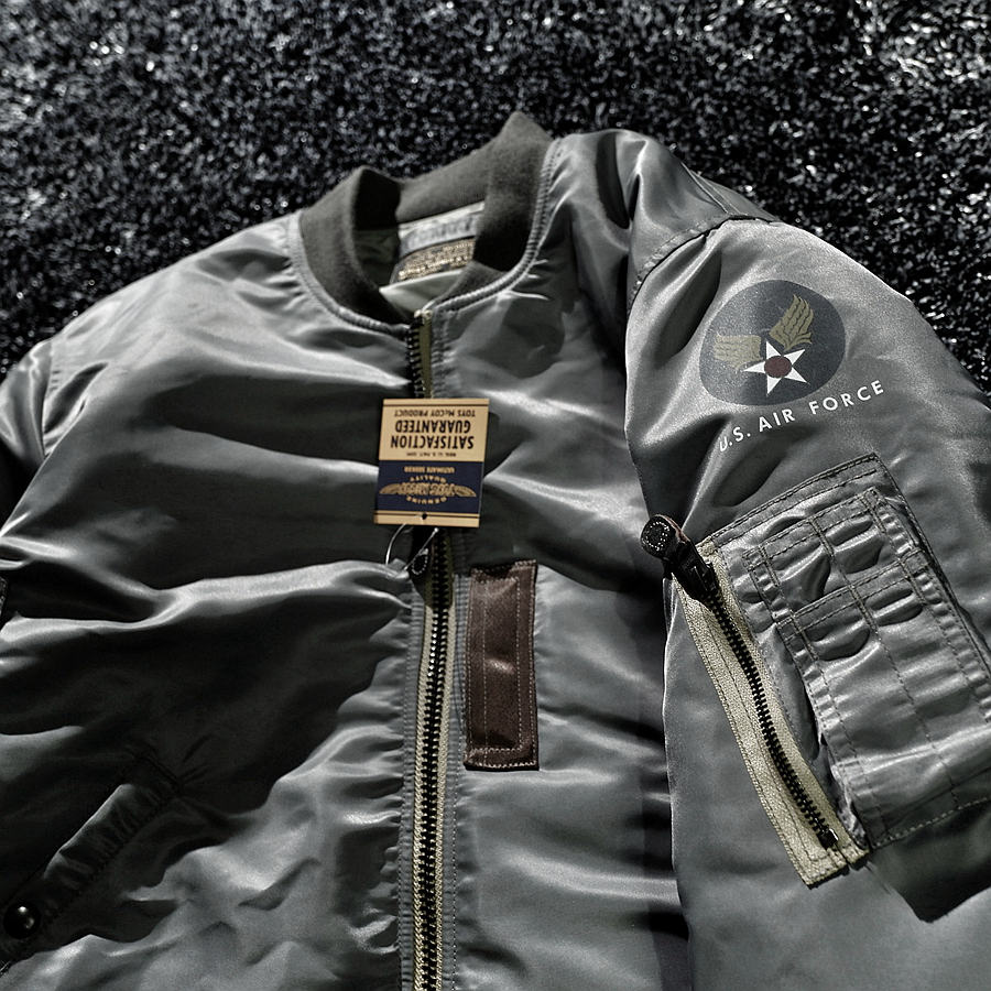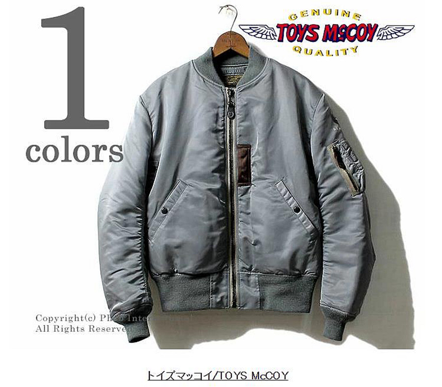 TOYS McCOY初期型MA-1尼龙飞行夹克。前翻盖是角形的,复刻了SPEC MIL-J-8279A。毫无保留地再现着接近灰色的初期MA-1的独特的素材感。衬里实物同样使用着羊毛毡质地。前立棕色颜色的oxygentab,在两侧ICS码环,背面内口袋也被设置。为了在战机中穿着的独特的细节,也再现着穿着长度短身宽,轰的尺寸感。左袖附有空军标志的贴花。对于从90年代开始熟悉了amicaki的人来说很怀念,也是期待复刻的TXYS MxCOY的初期型 MA1,必携的一件。。