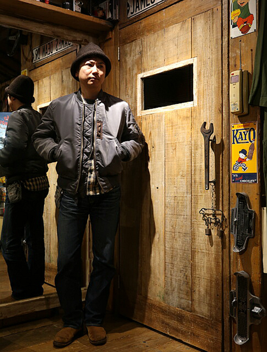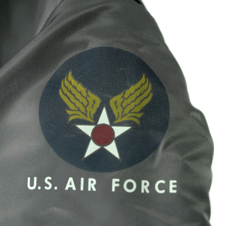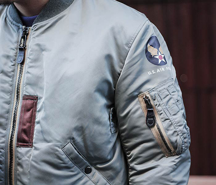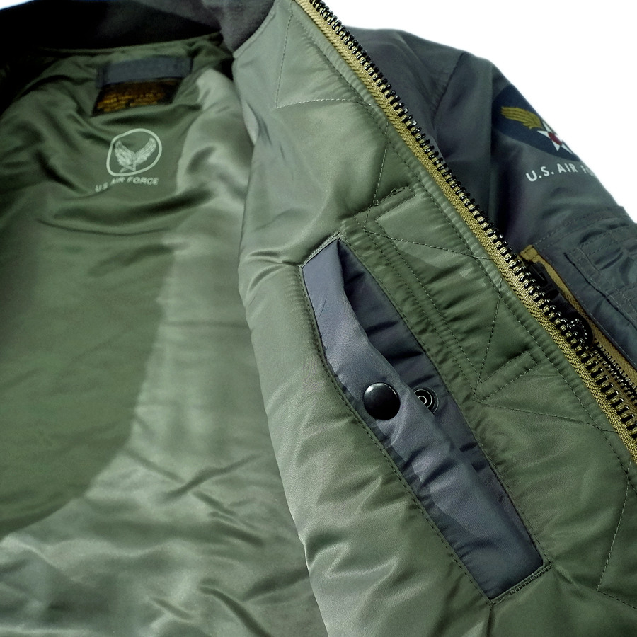 TOYS McCOY初期型MA-1尼龙飞行夹克。前翻盖是角形的,复刻了SPEC MIL-J-8279A。毫无保留地再现着接近灰色的初期MA-1的独特的素材感。衬里实物同样使用着羊毛毡质地。前立棕色颜色的oxygentab,在两侧ICS码环,背面内口袋也被设置。为了在战机中穿着的独特的细节,也再现着穿着长度短身宽,轰的尺寸感。左袖附有空军标志的贴花。对于从90年代开始熟悉了amicaki的人来说很怀念,也是期待复刻的TXYS MxCOY的初期型 MA1,必携的一件。。
