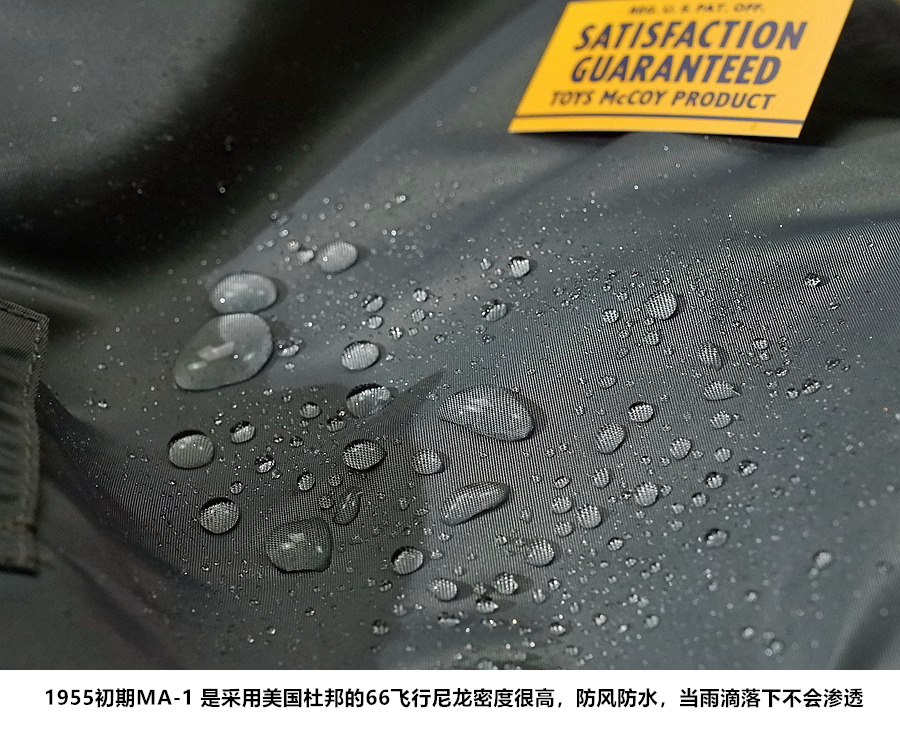 材质:TOYS McCOY1955初期MA-1特殊定制双纱加密尼龙,三防面料,阻燃,防水,防油,填充物为混纺羊毛(60%毛 40%聚酯)属于厚实的冬季夹克,北方过冬没问题