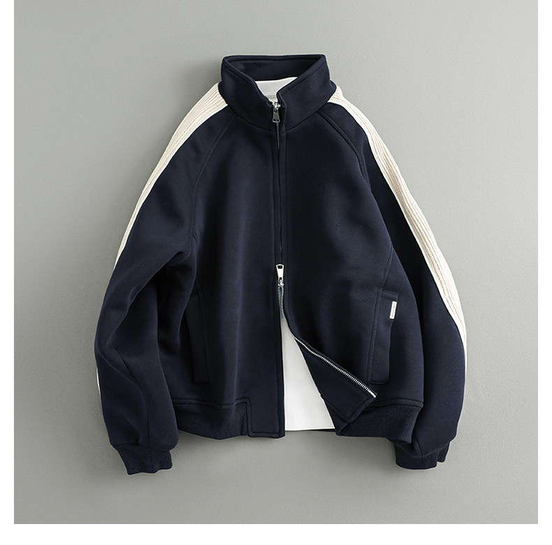 Spring Japanese Casual Trendy Brand Simple Sports Versatile Loose Patchwork Color-Block Stand Collar Zipper Jacket for Men