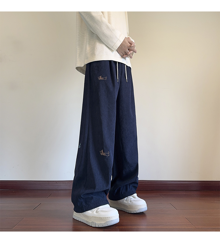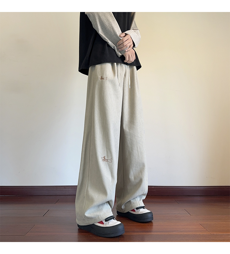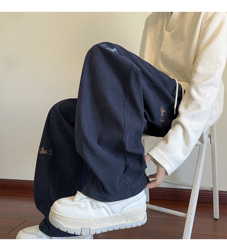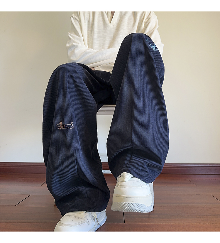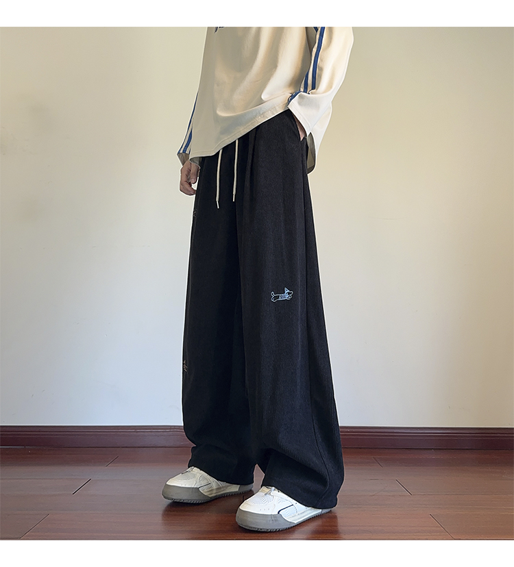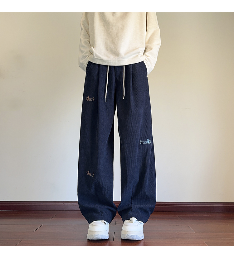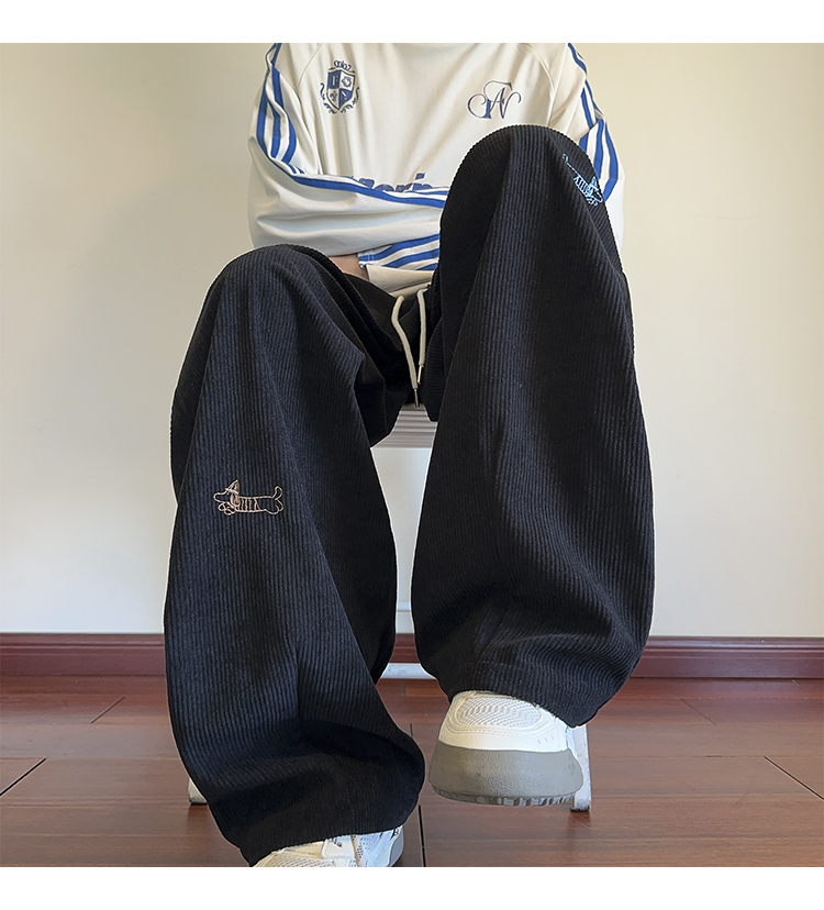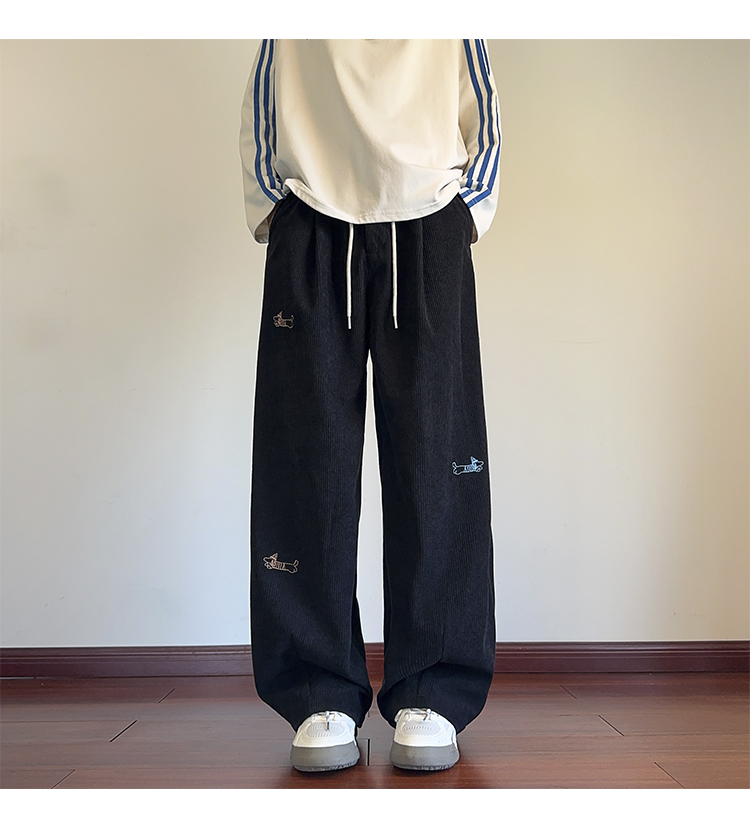 Geniolamode Dachshund Embroidered Corduroy Sweatpants Men's New Autumn Casual Loose Sports Pants