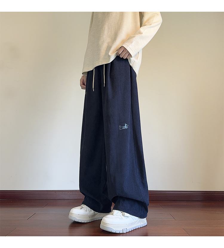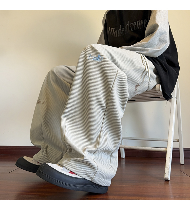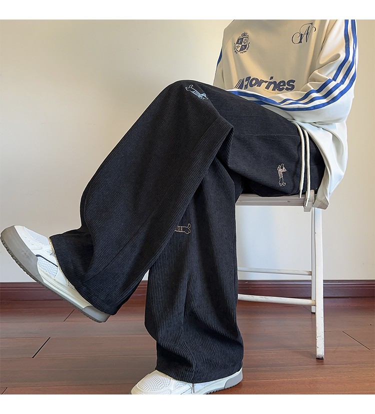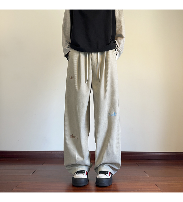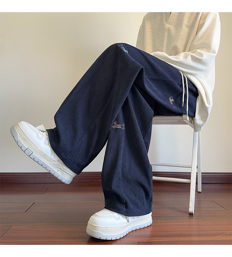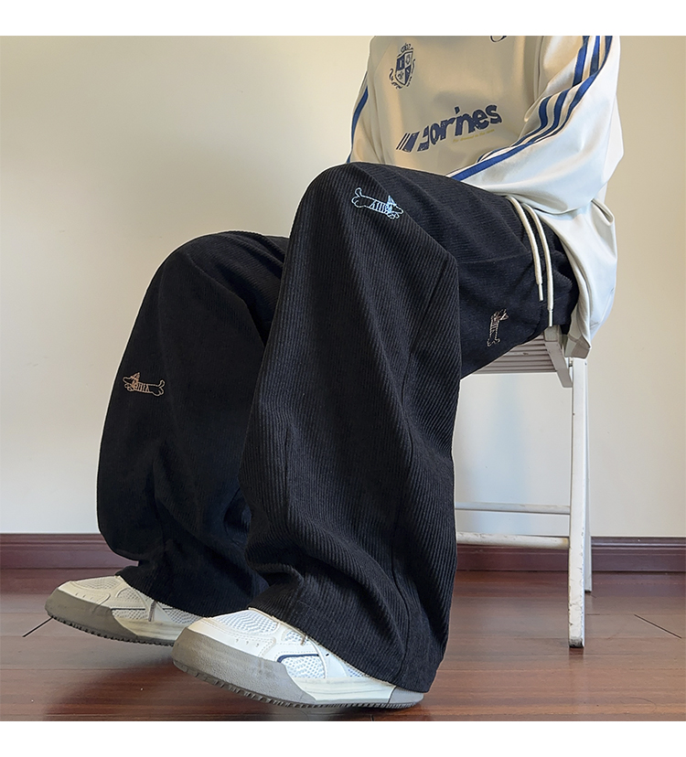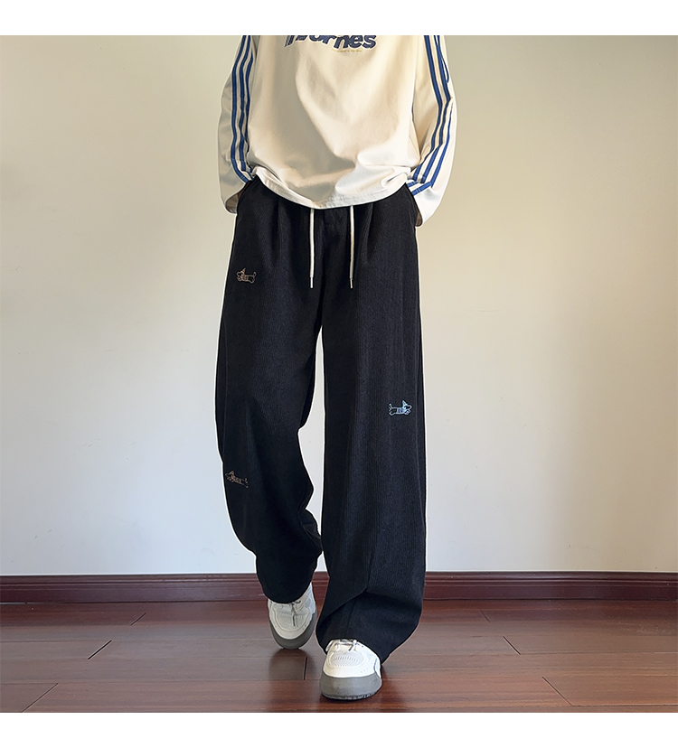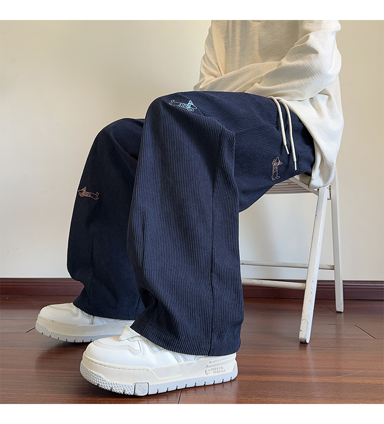 Geniolamode Dachshund Embroidered Corduroy Sweatpants Men's New Autumn Casual Loose Sports Pants