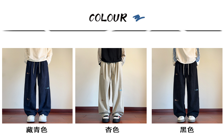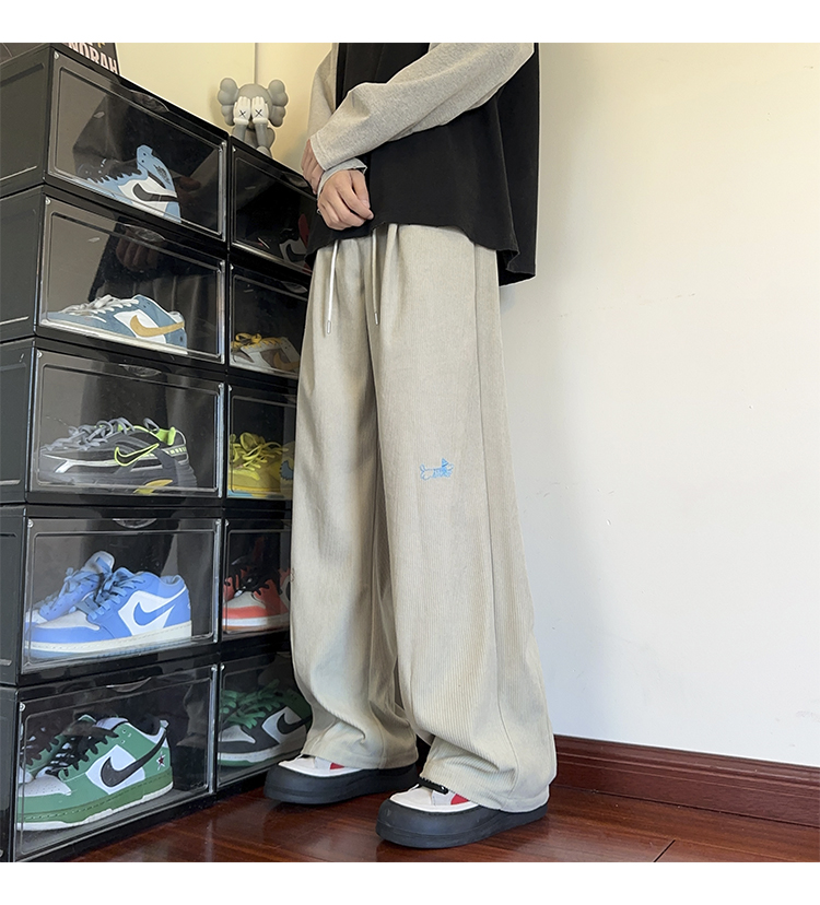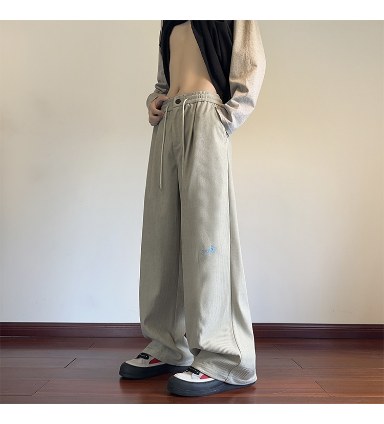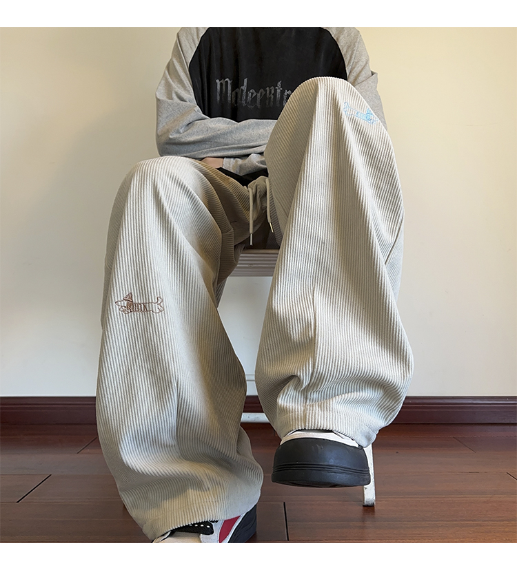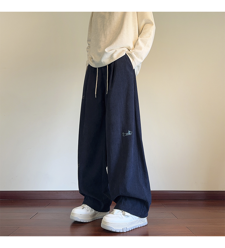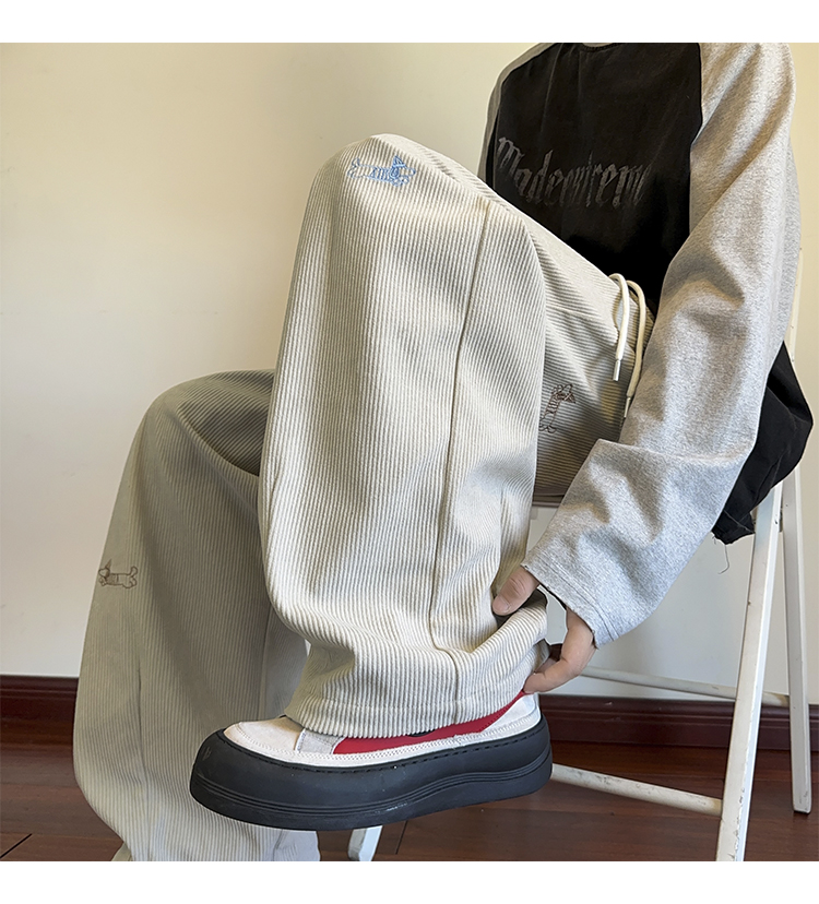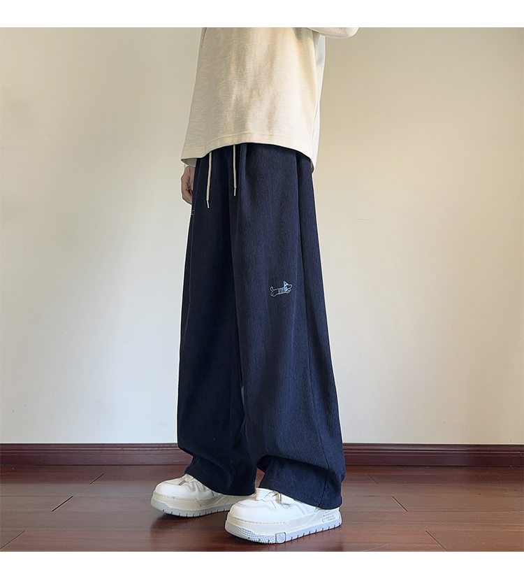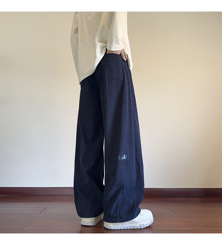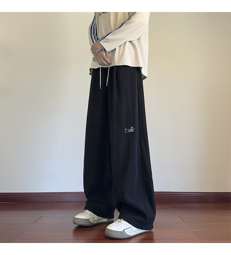 Geniolamode Dachshund Embroidered Corduroy Sweatpants Men's New Autumn Casual Loose Sports Pants