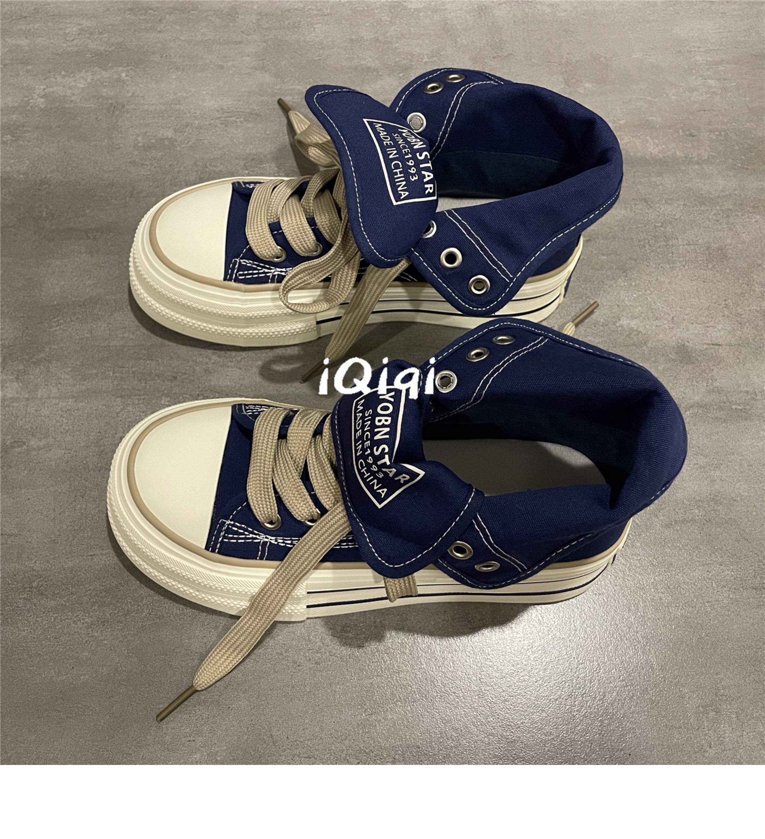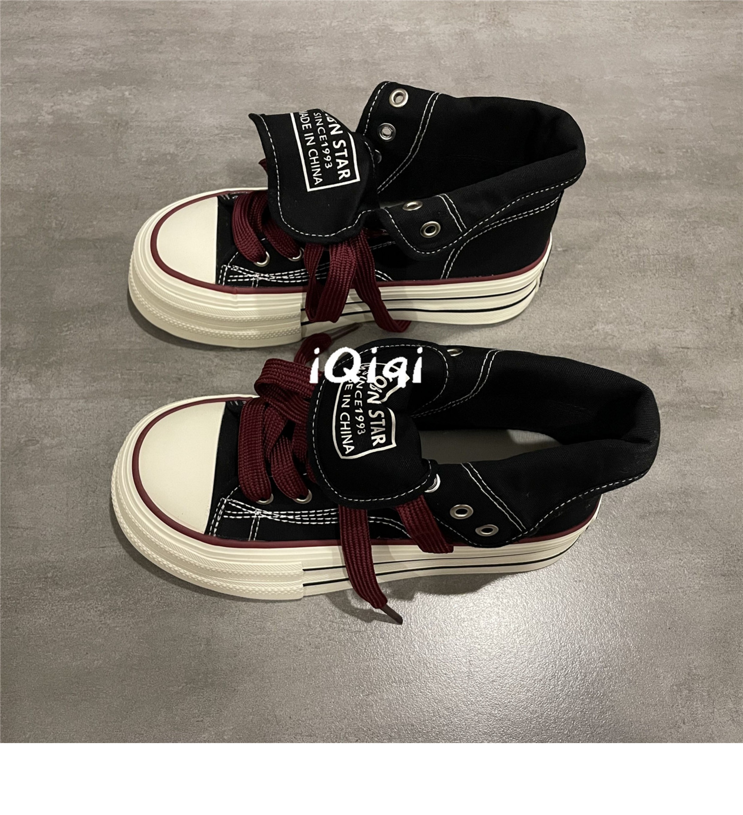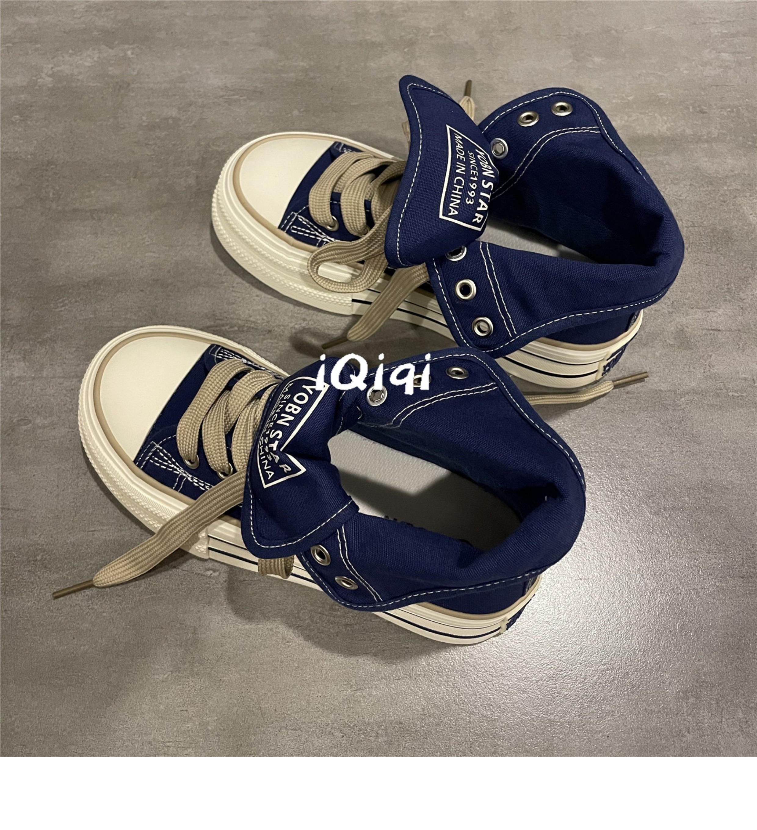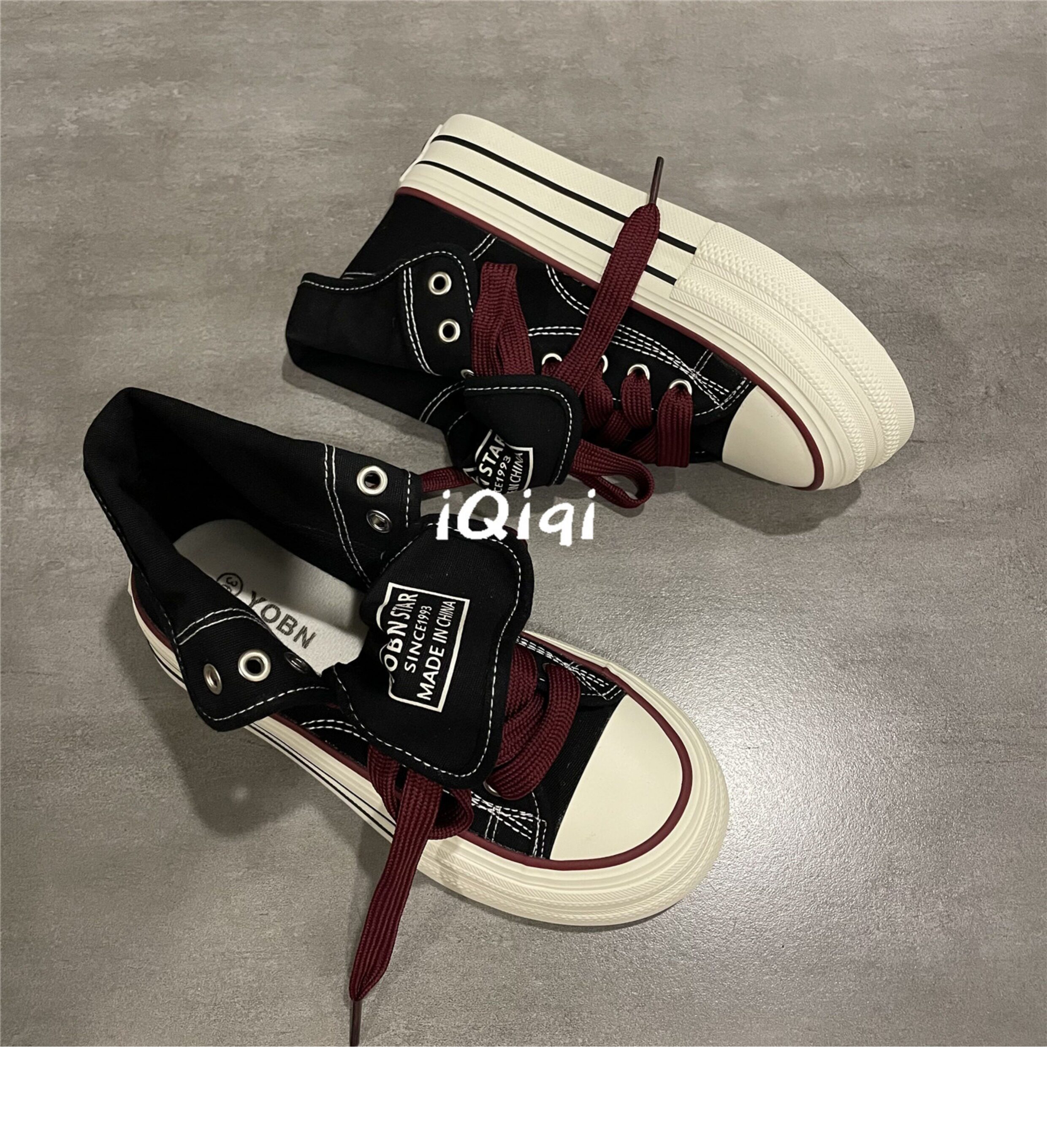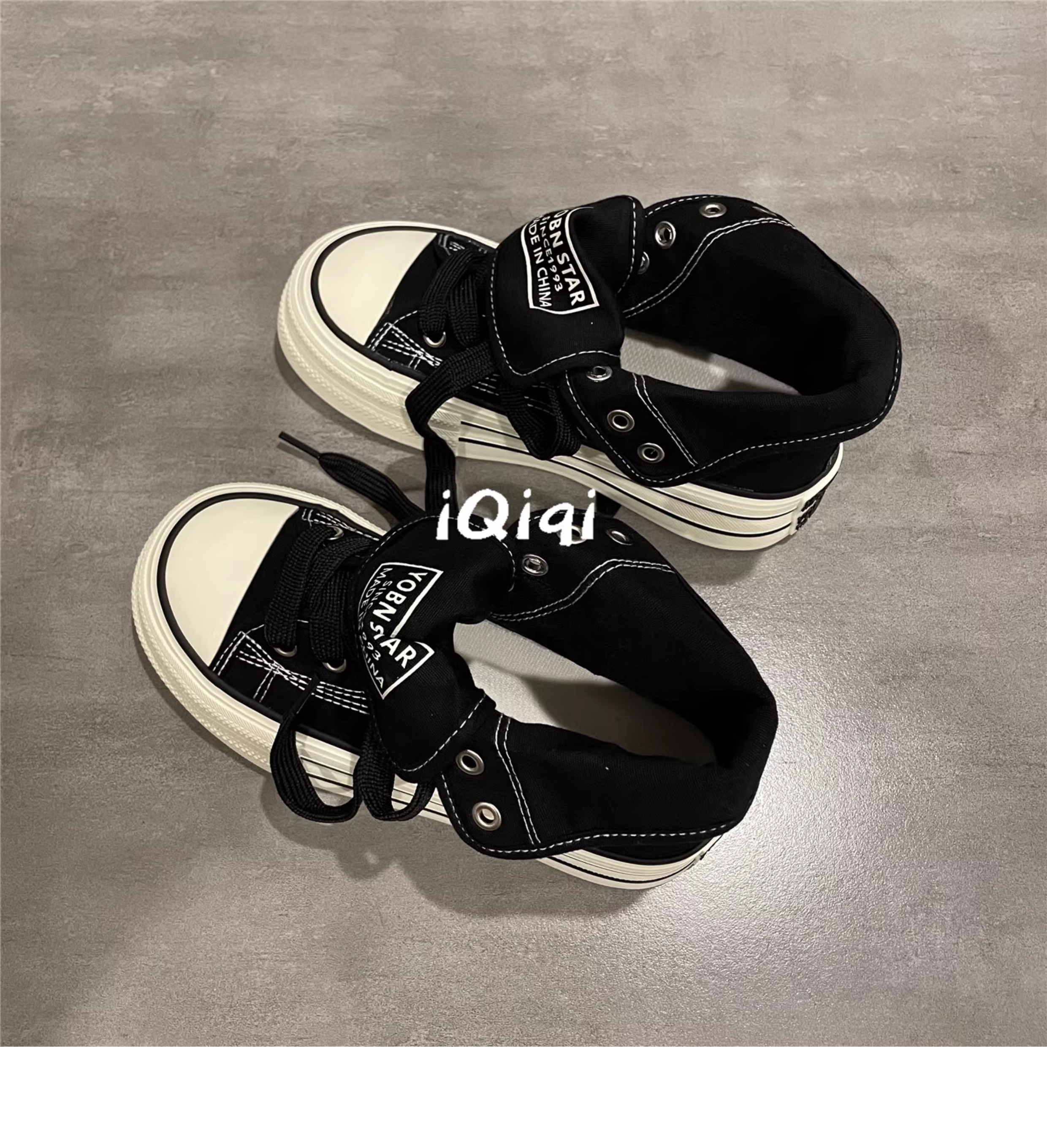 Qiqi Zhurenjia Original Design High-Top Canvas Shoes for Women, Autumn College Style Versatile Popular Shoes for Women ins Style