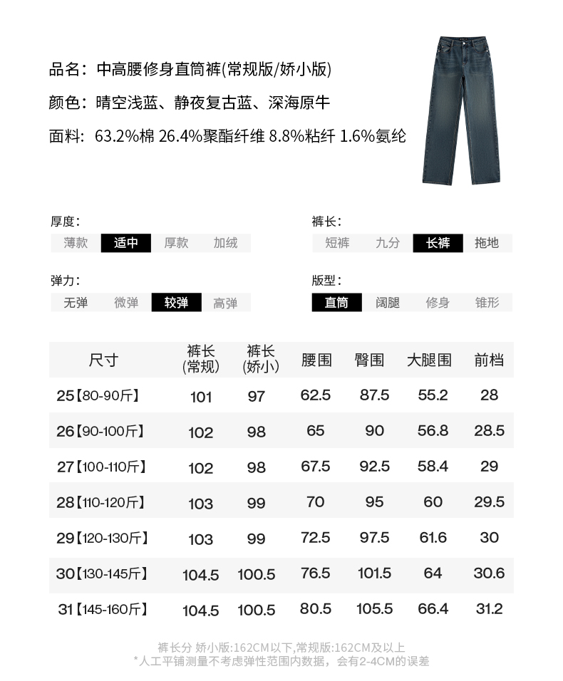 Chuyu 2025 Winter New arrival Mid-Low Waist Narrow Edition Straight-leg Denim/Mid-High Waist silm Straight-leg Denim