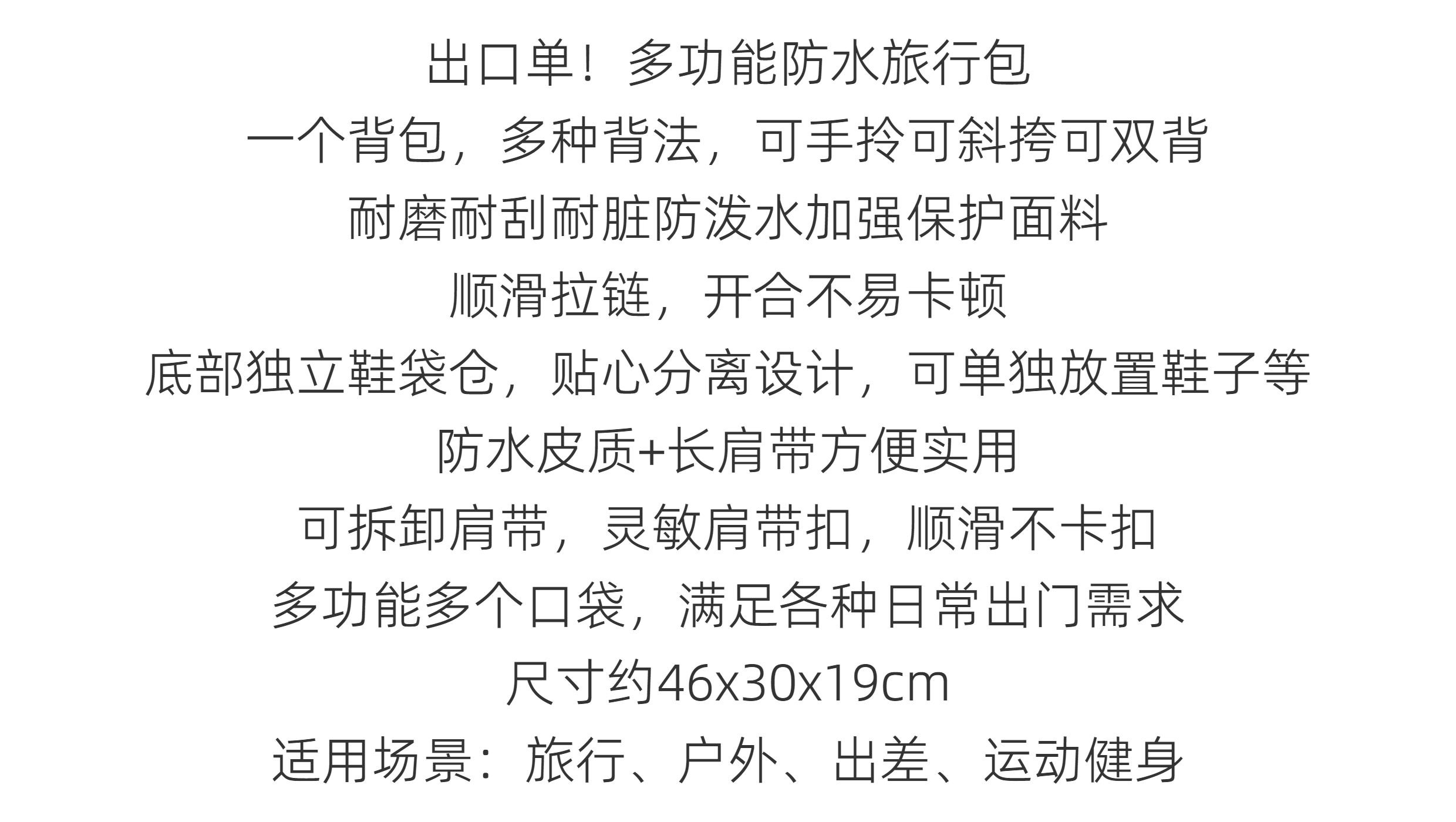 Export Order! Outdoor Multifunctional Large-Capacity Sports Waterproof Travel Bag Fitness Tote Backpack
