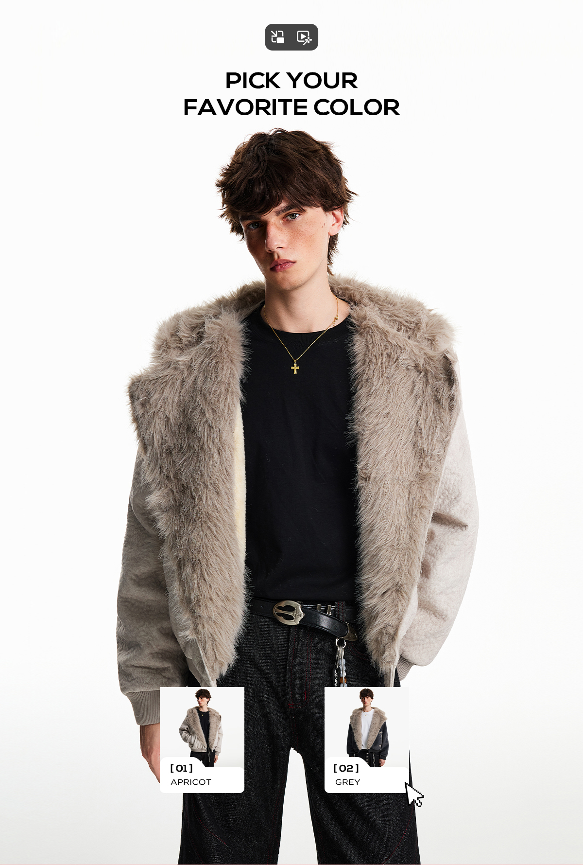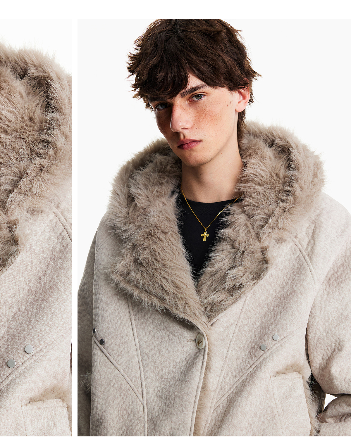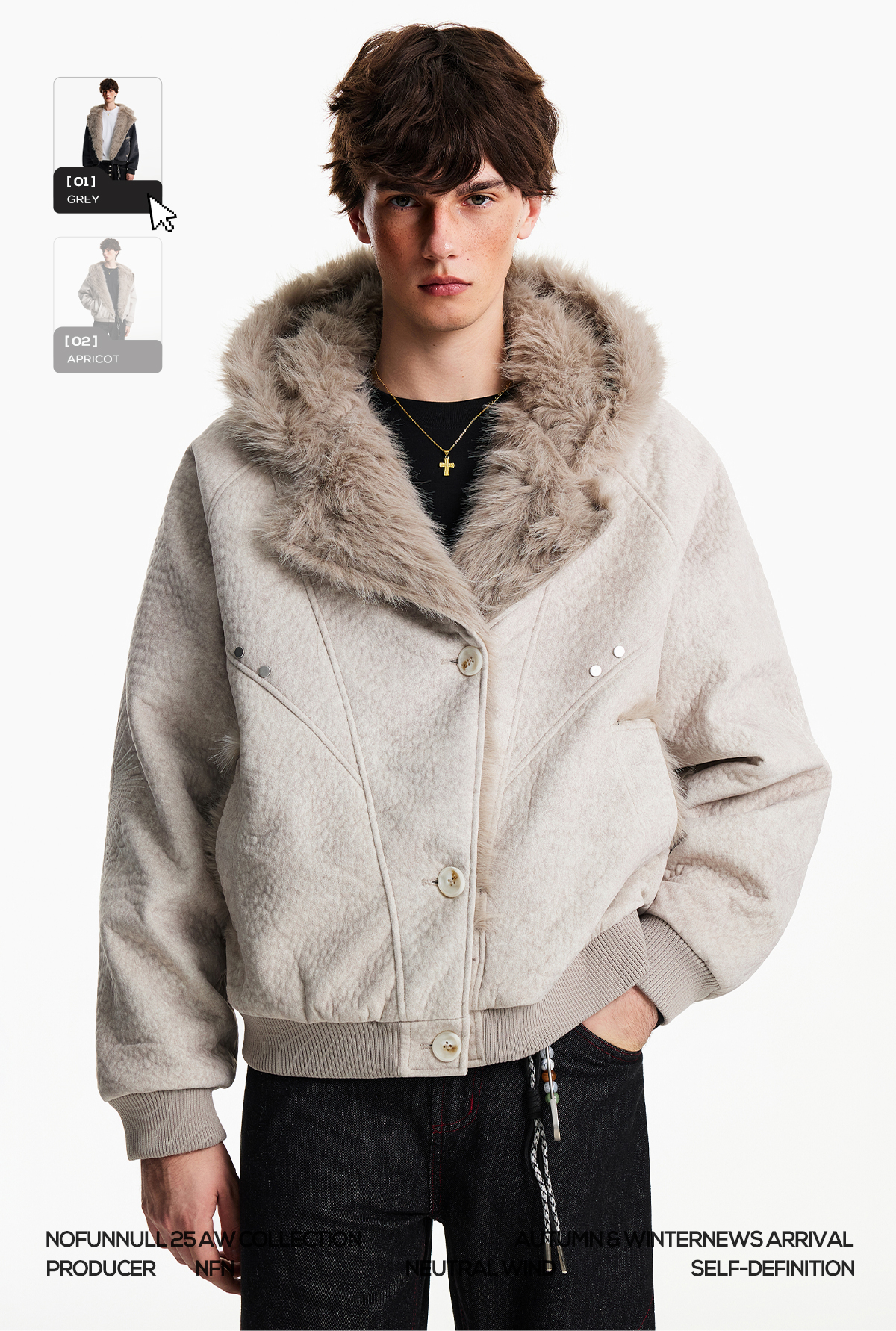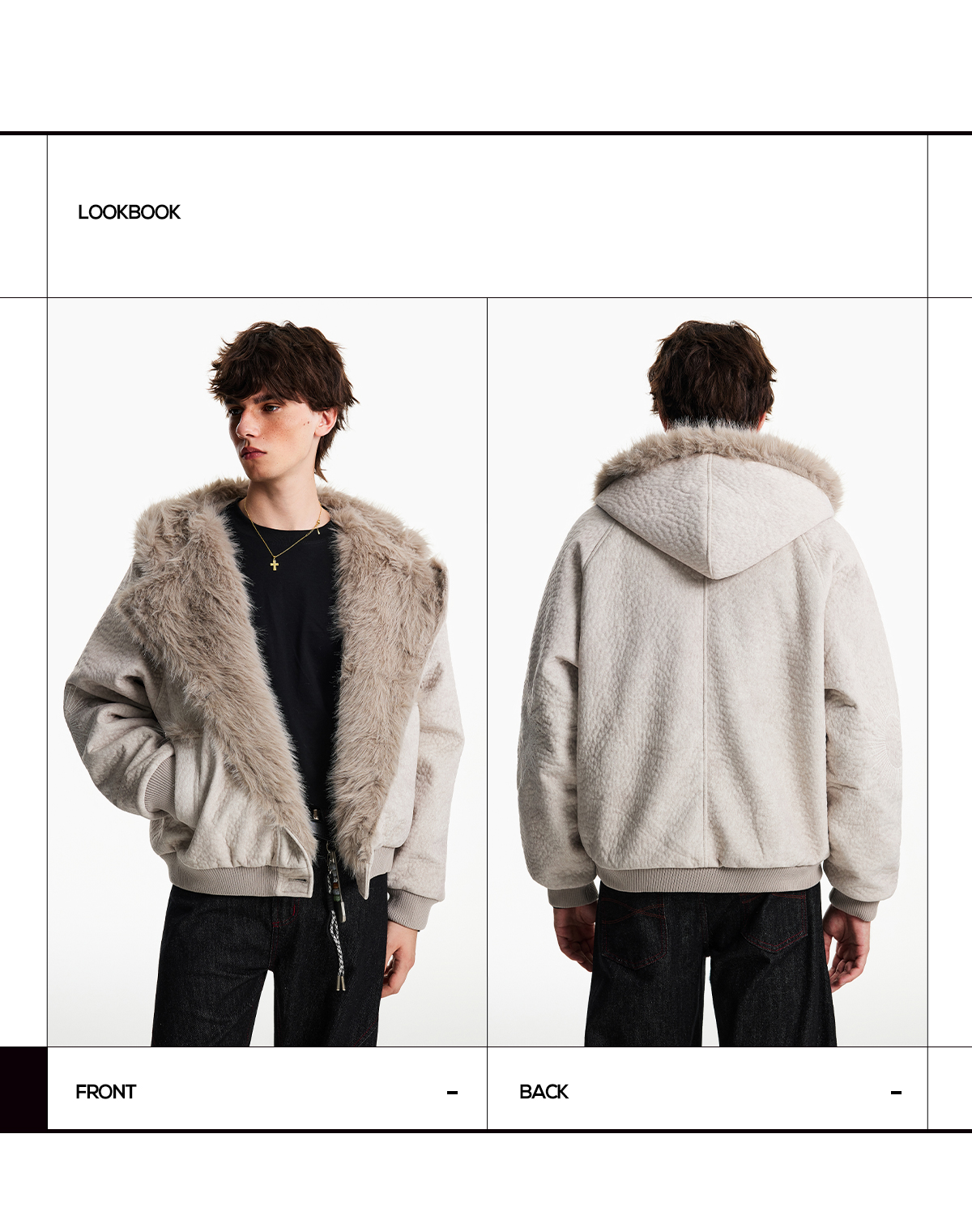 700g imitation rabbit hair Heavy weight cloud velvet short wide mountain carving cotton-padded jacket men's Fall and winter Fleece-lined thickened Embroider hooded Outwear