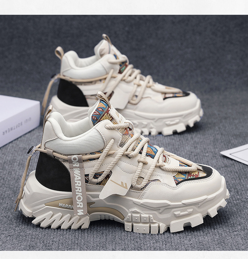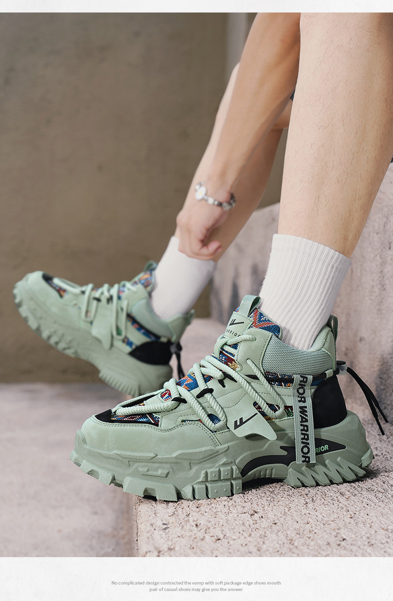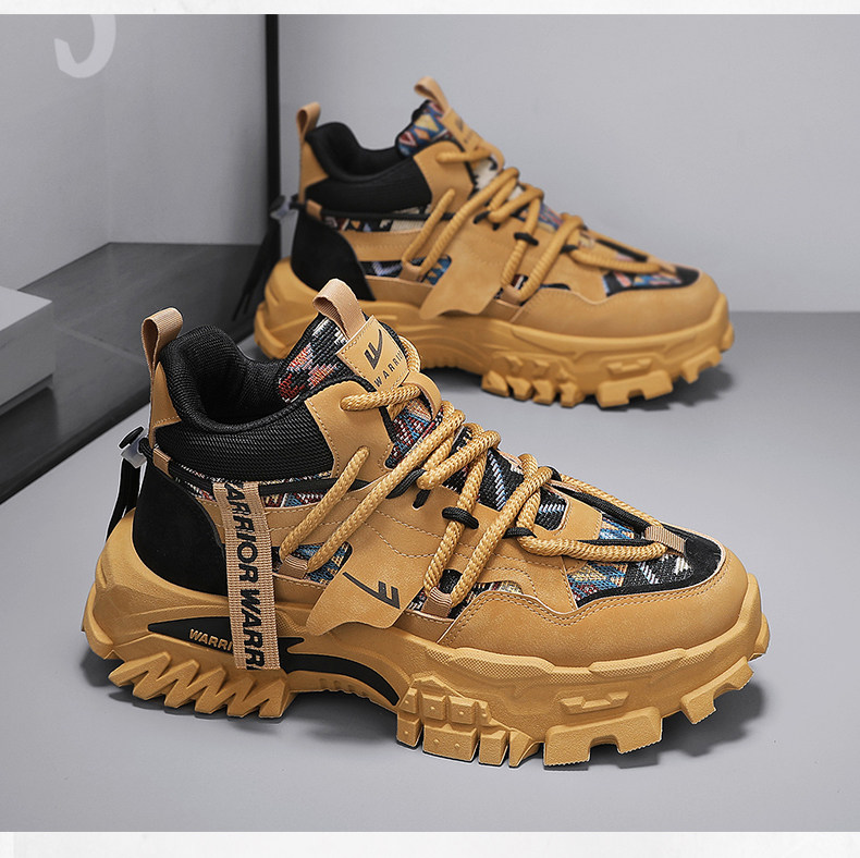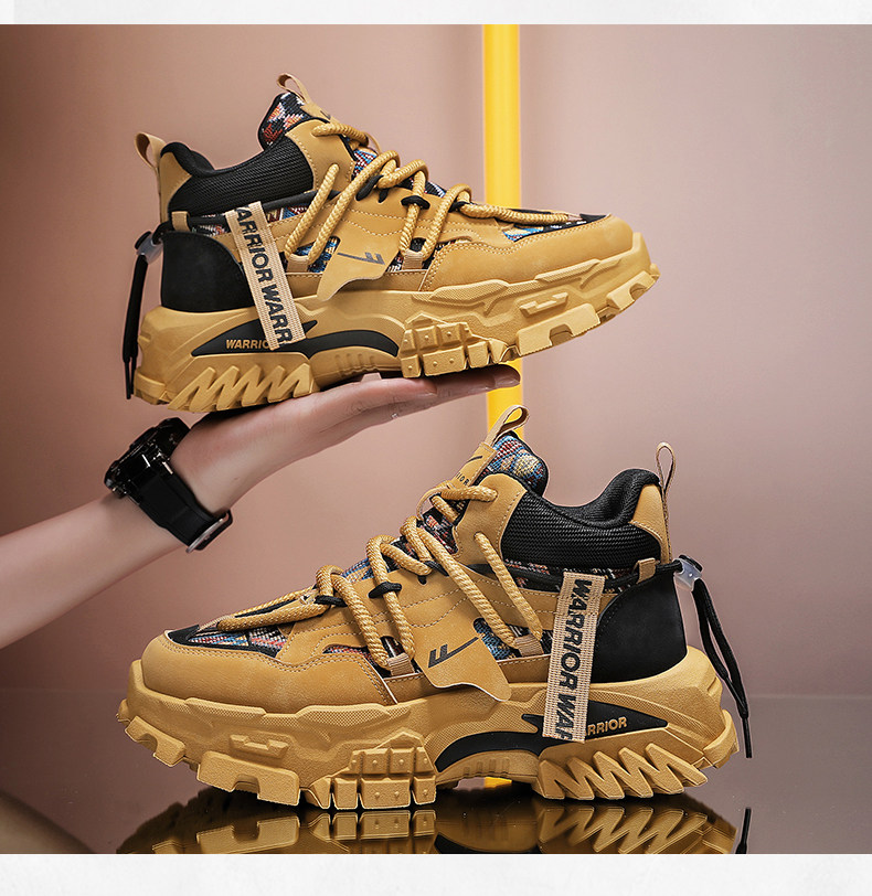 Pull-Back High-Top Men's Shoes, Winter Fleece-Lined, Warm, Non-Slip, Wear-Resistant, Hiking Dad Shoes, Thick-Soled Height-Increasing Martin Boots