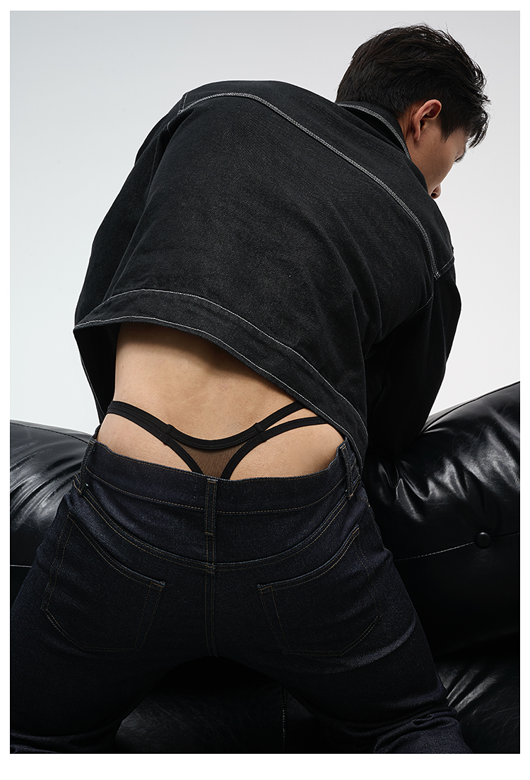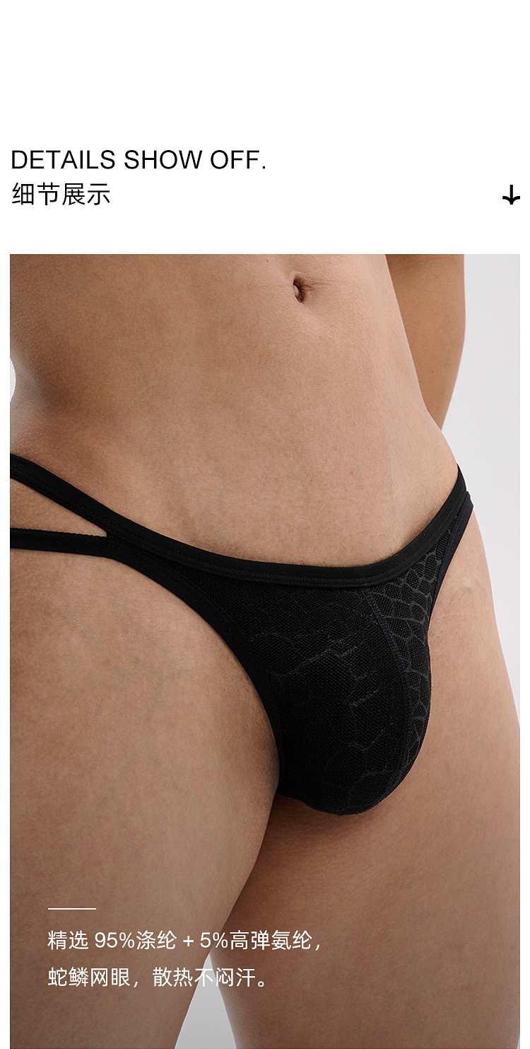 Upro Yopu Snake Scale Pattern Low-Rise Triangle Thong Double-Waist Mesh Men's Underwear