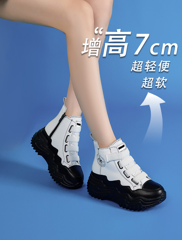 High-Top Dad Sneakers for Women, Spring 2026 New Model, Lightweight, Ultra-Light, Thick-Soled, Sports, White, for Petite Women, with Internal Height Increase