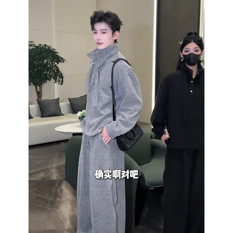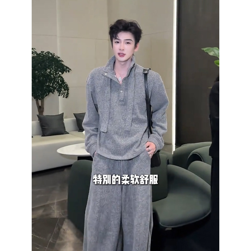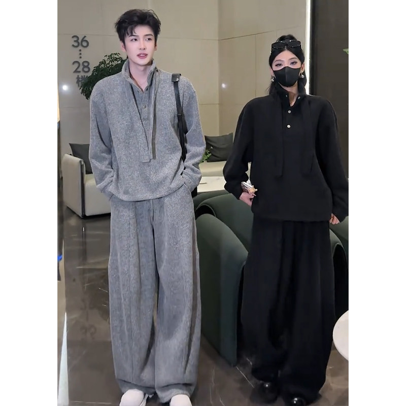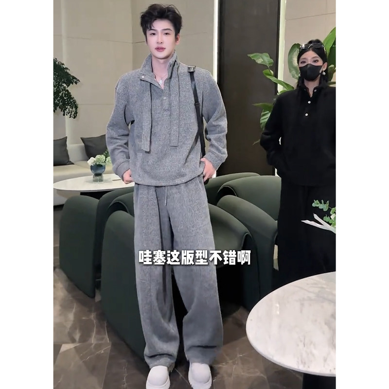Designed with a Relaxed Feel, Men's Sweatshirt Set for Autumn, Loose and Simple Two-Piece Outfit, Complete Set for Ootd Styling