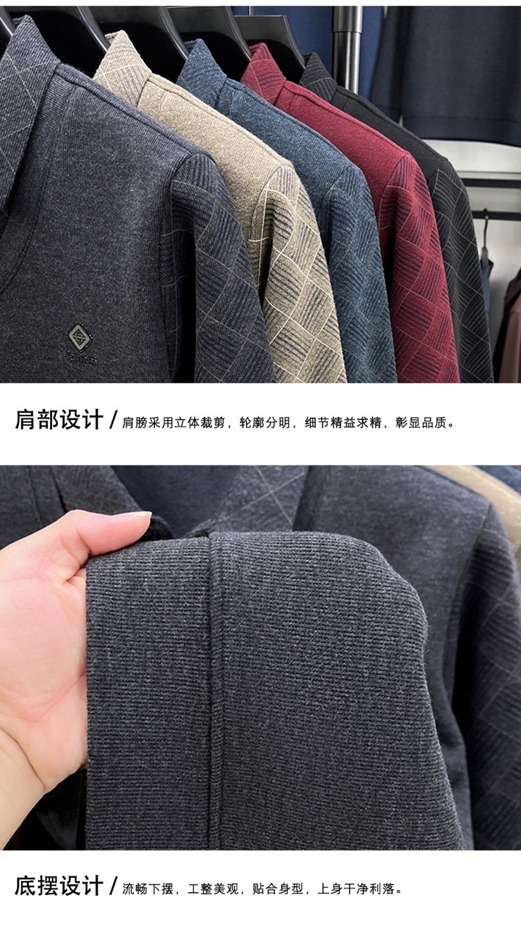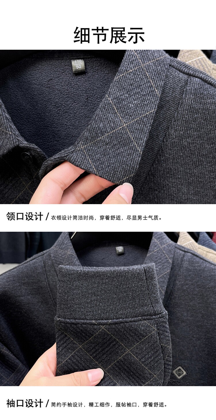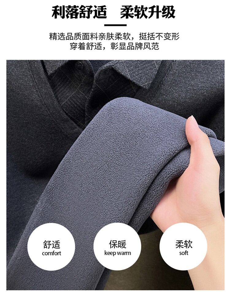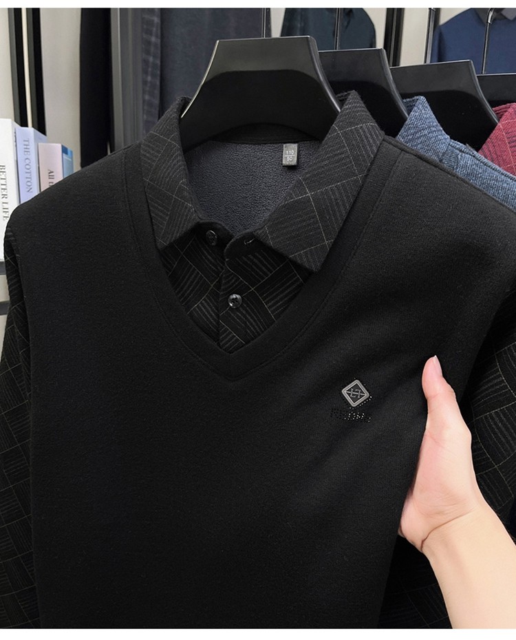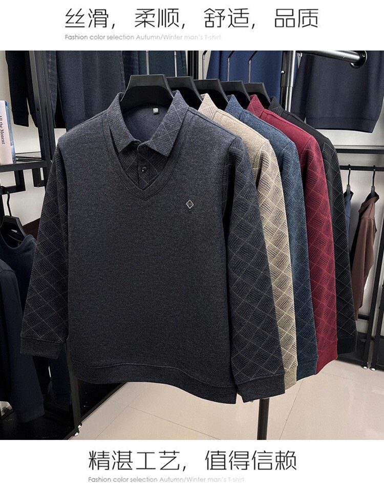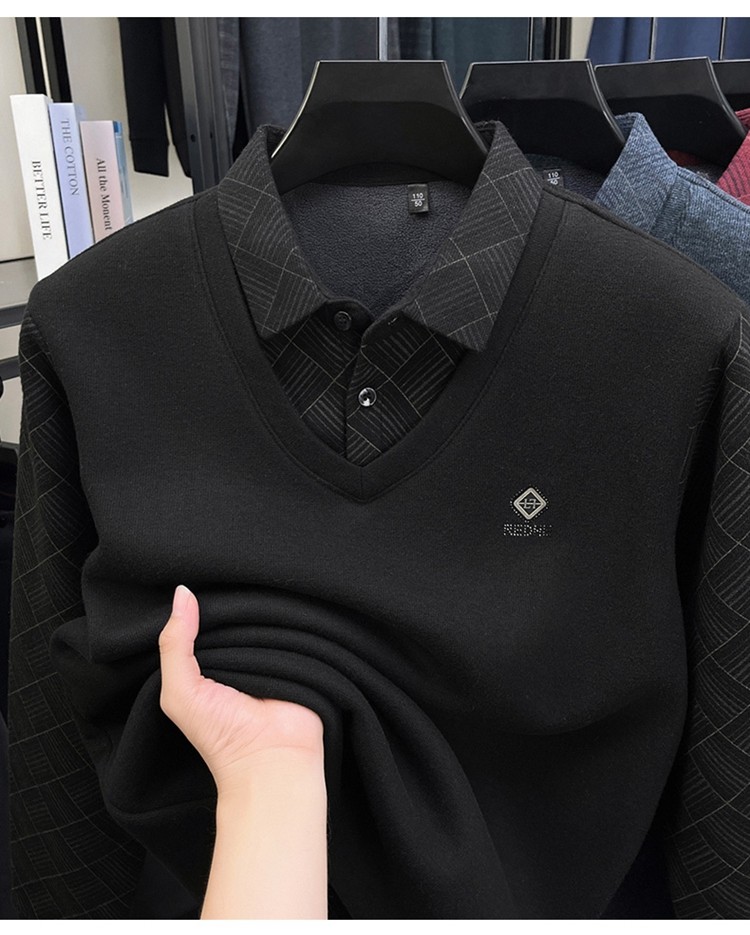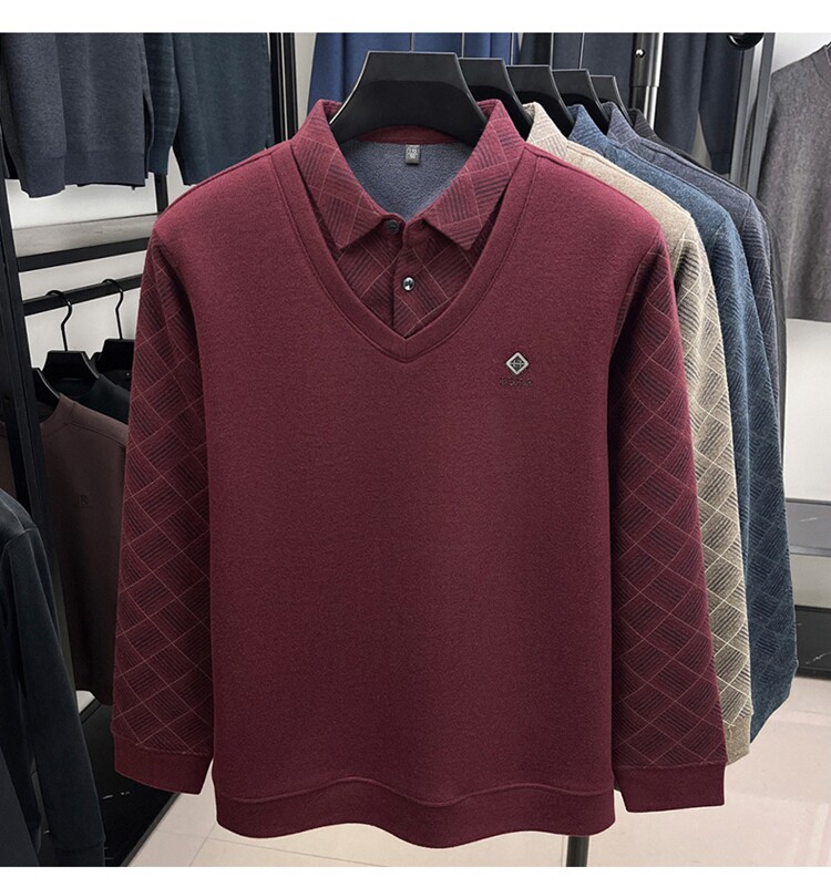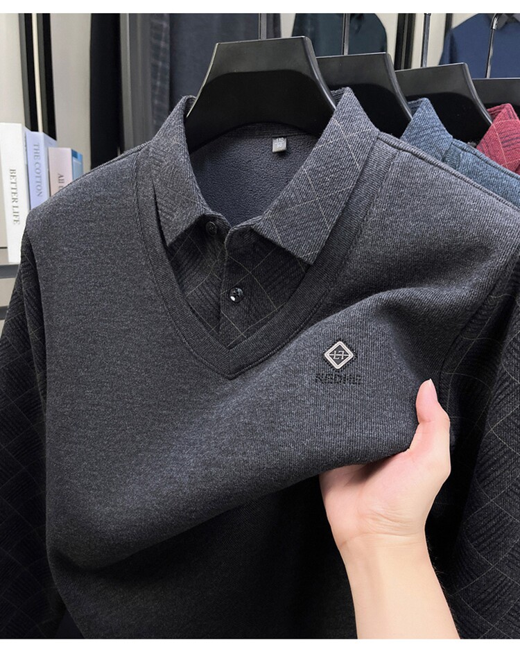 Hengyuanxiang Middle-Aged Men's Wool Sweater, Dad's Style, Fleece-Lined, Thickened, Warm, Faux Two-Piece Shirt Collar Base Layer Sweater