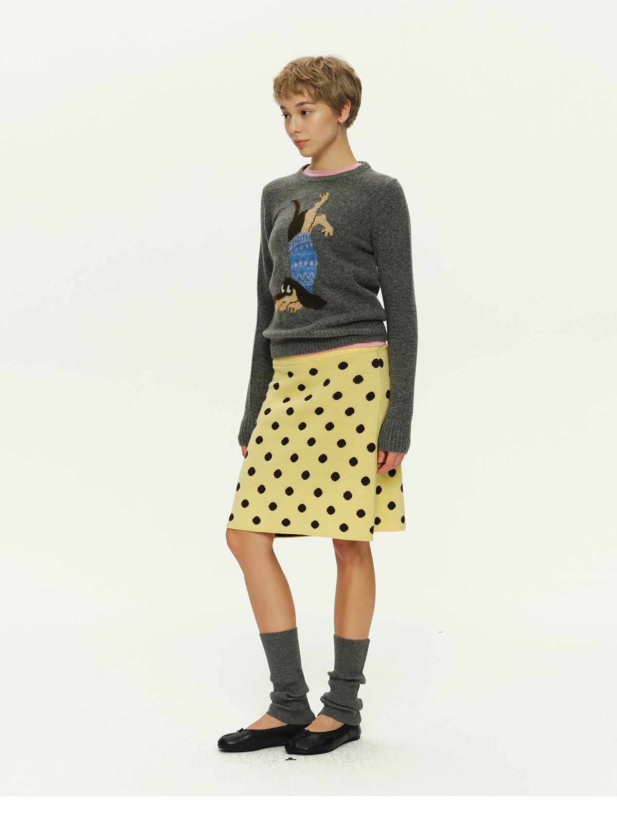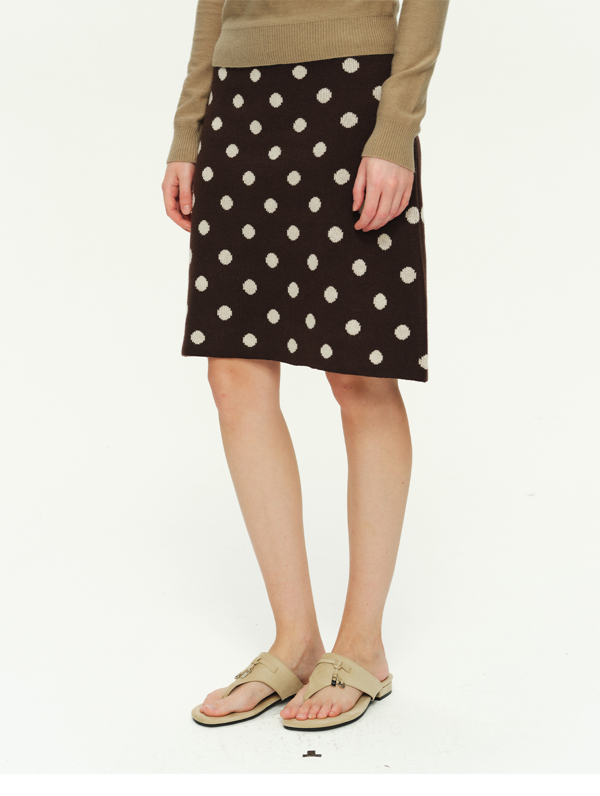 Reaimness* Polka Dot Woolen Skirt, Hand-Embroidered Jacquard Skirt, Women's Knitted Skirt