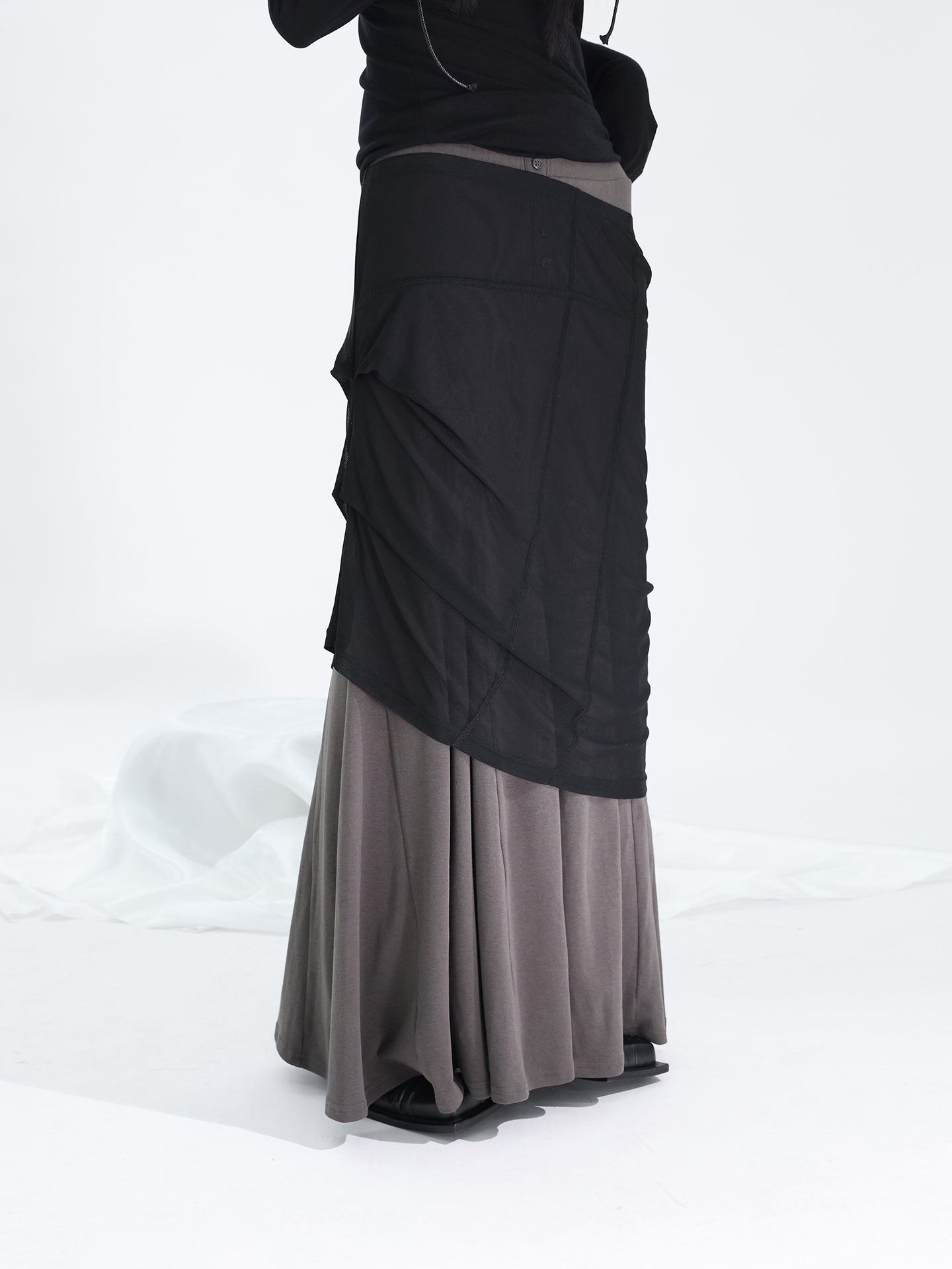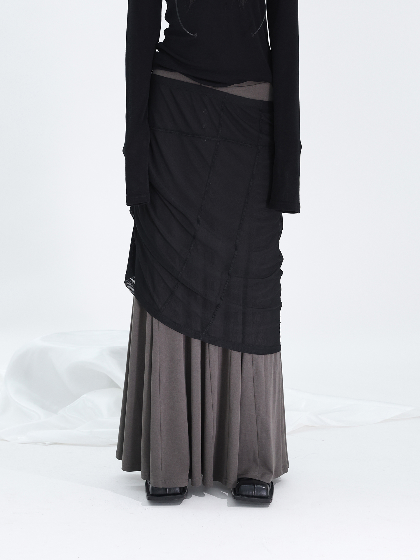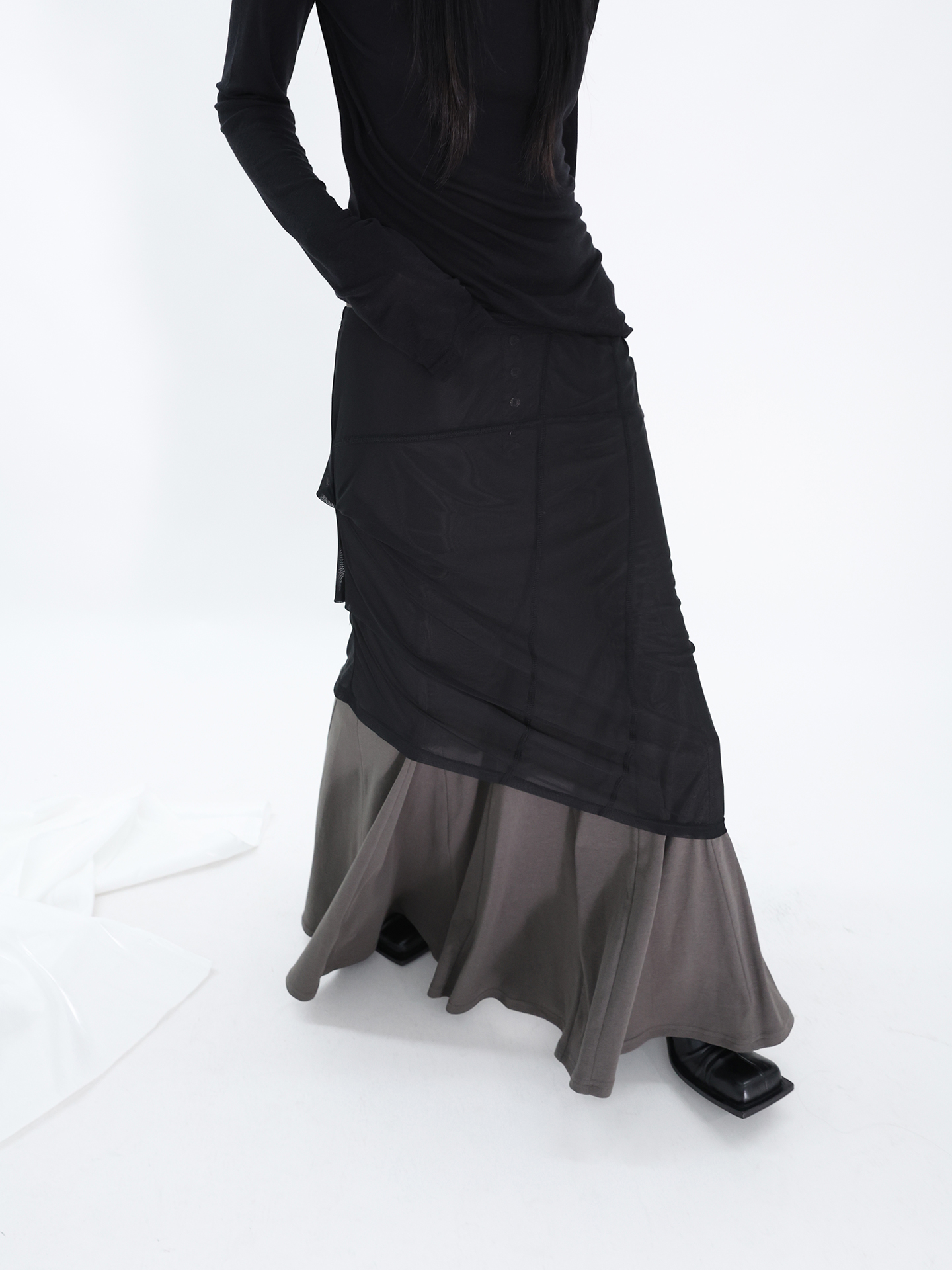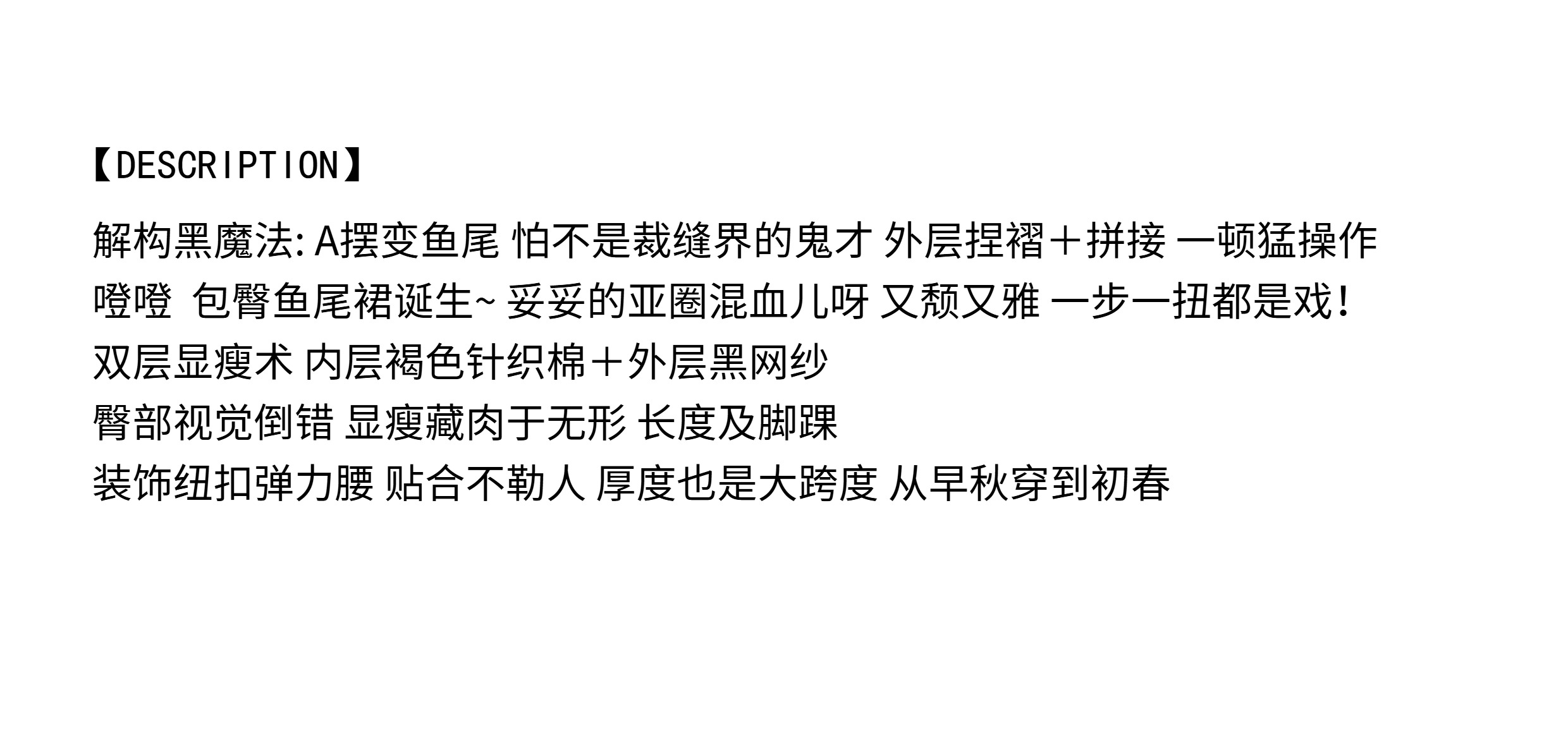 Meiya Fuzzykon Original Design Black-Brown Subculture Mesh Cotton Stretchy Hip-Hugging Fishtail Double-Layer Skirt