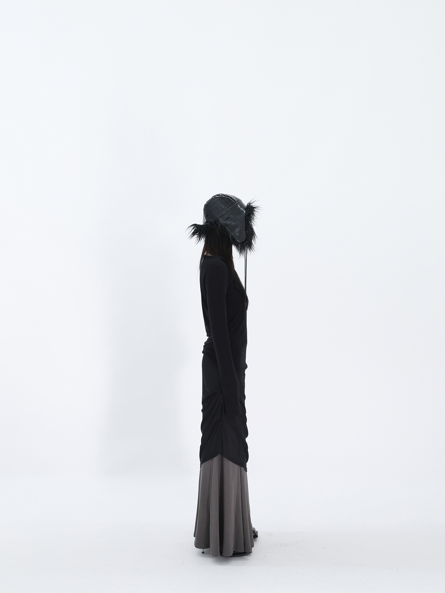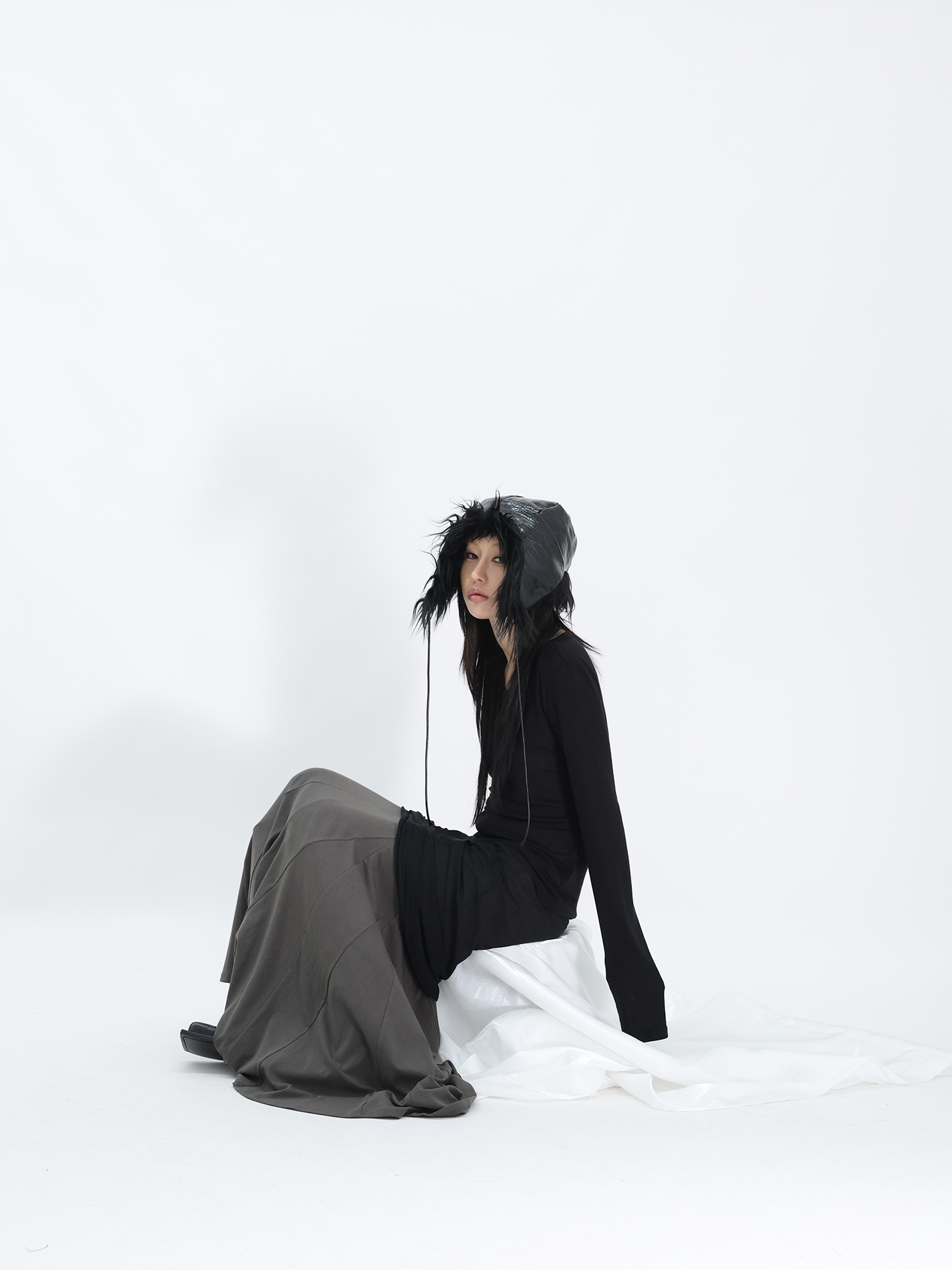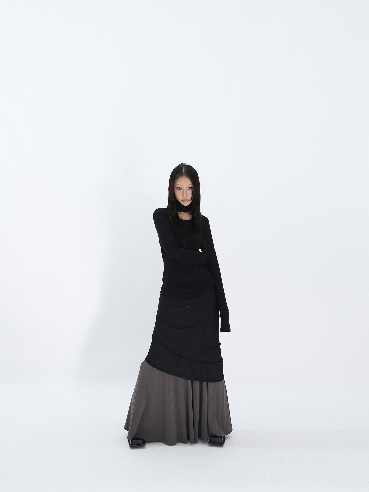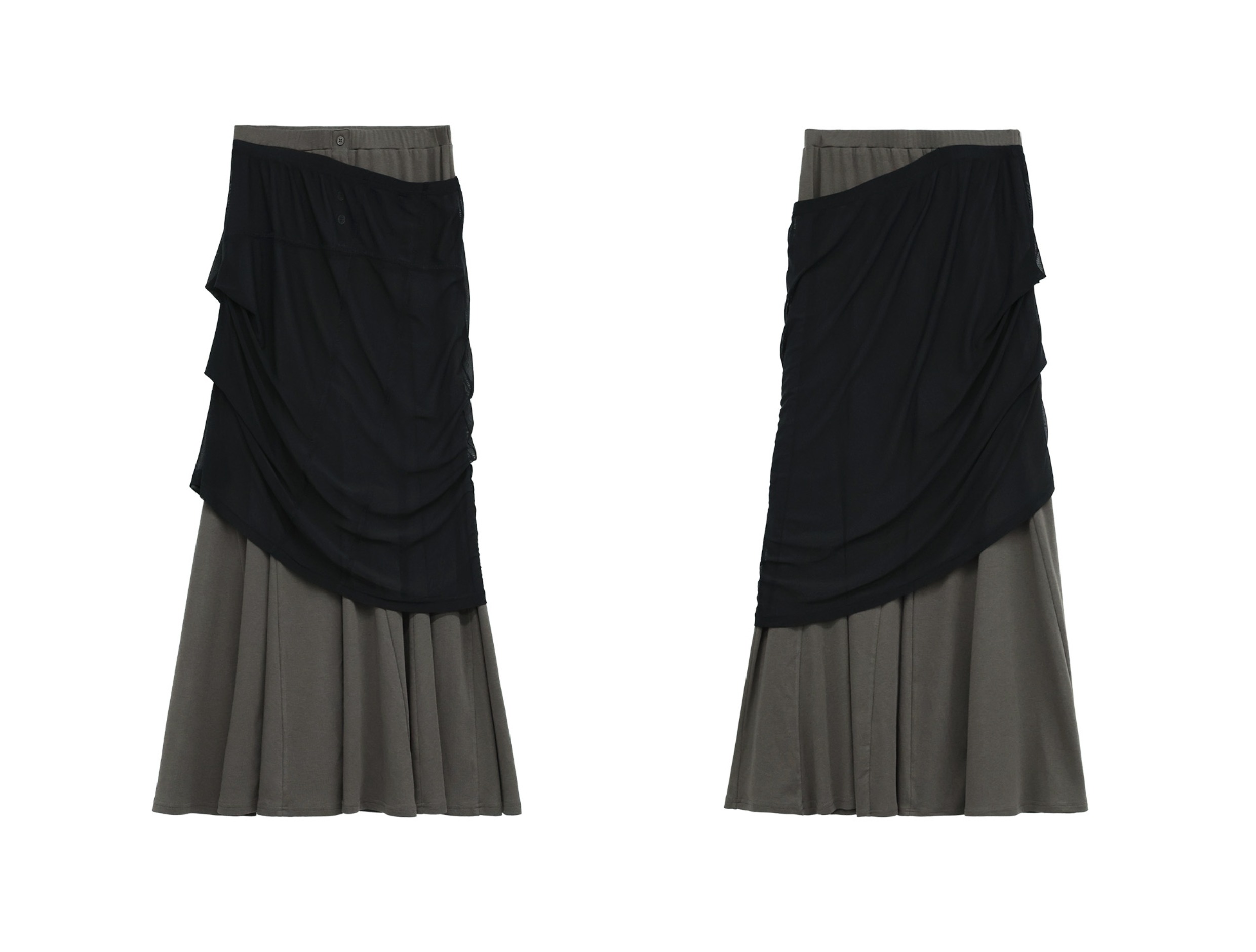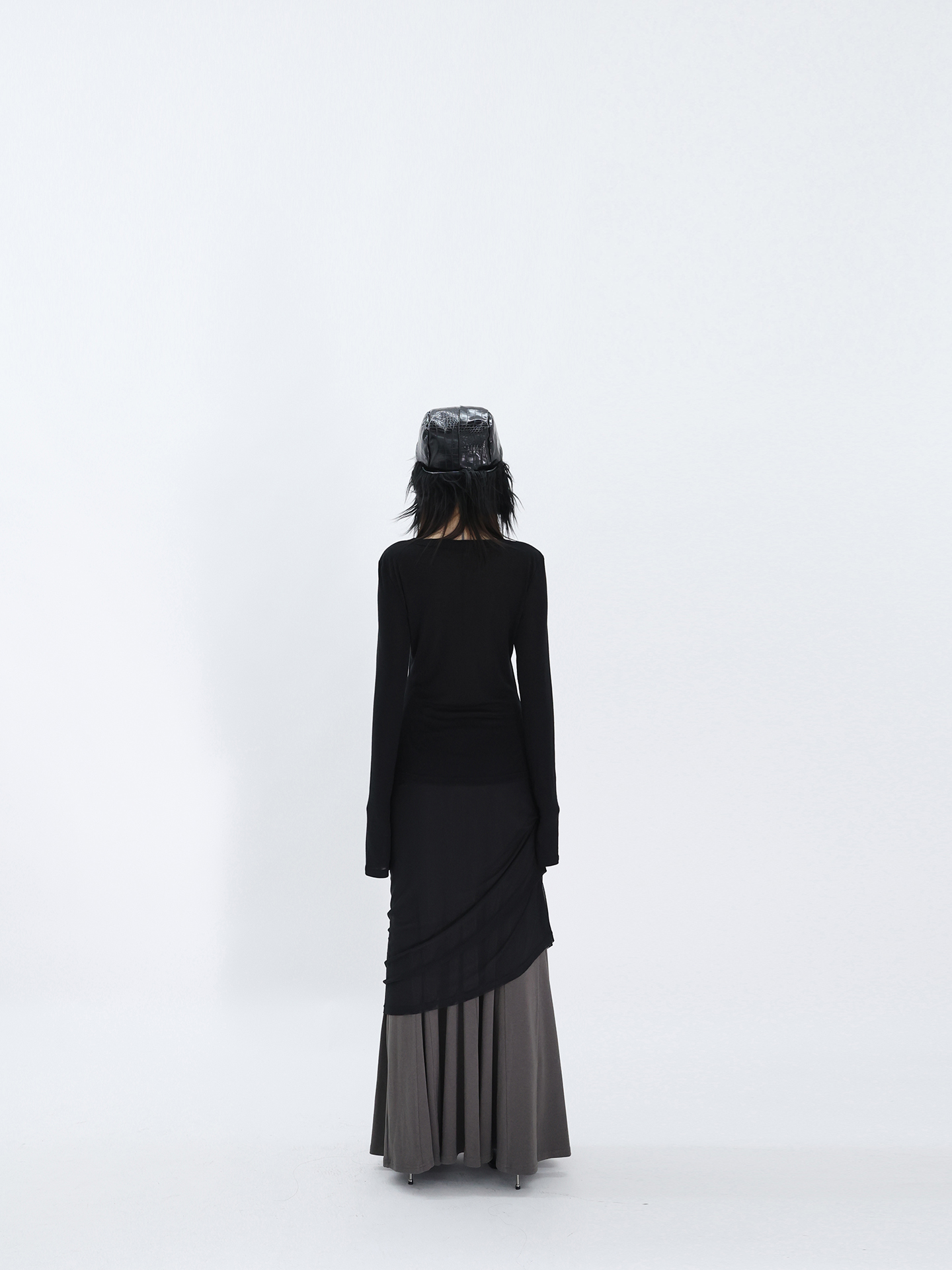 Meiya Fuzzykon Original Design Black-Brown Subculture Mesh Cotton Stretchy Hip-Hugging Fishtail Double-Layer Skirt