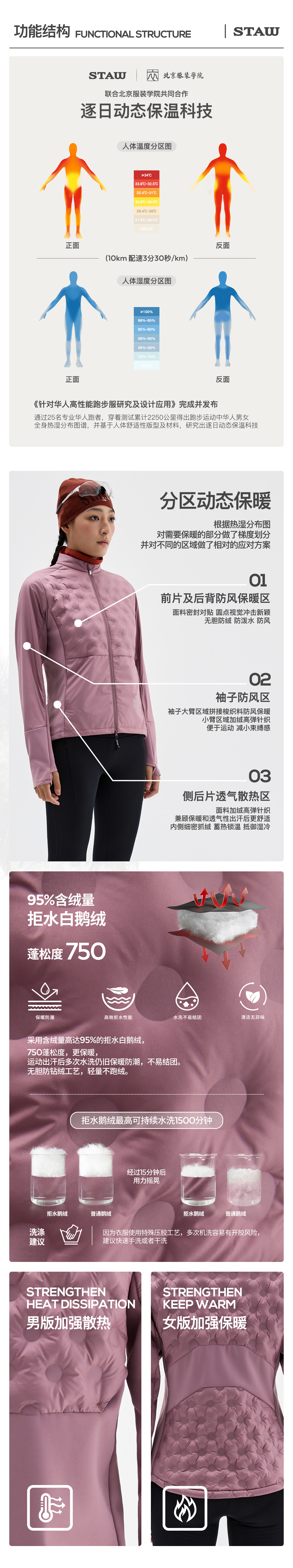 Staw Shituo's "Heating Effect" 95 Water-Repellent Goose down Running Jacket Sports Training Warm 750 Fill Power down Jacket for Men