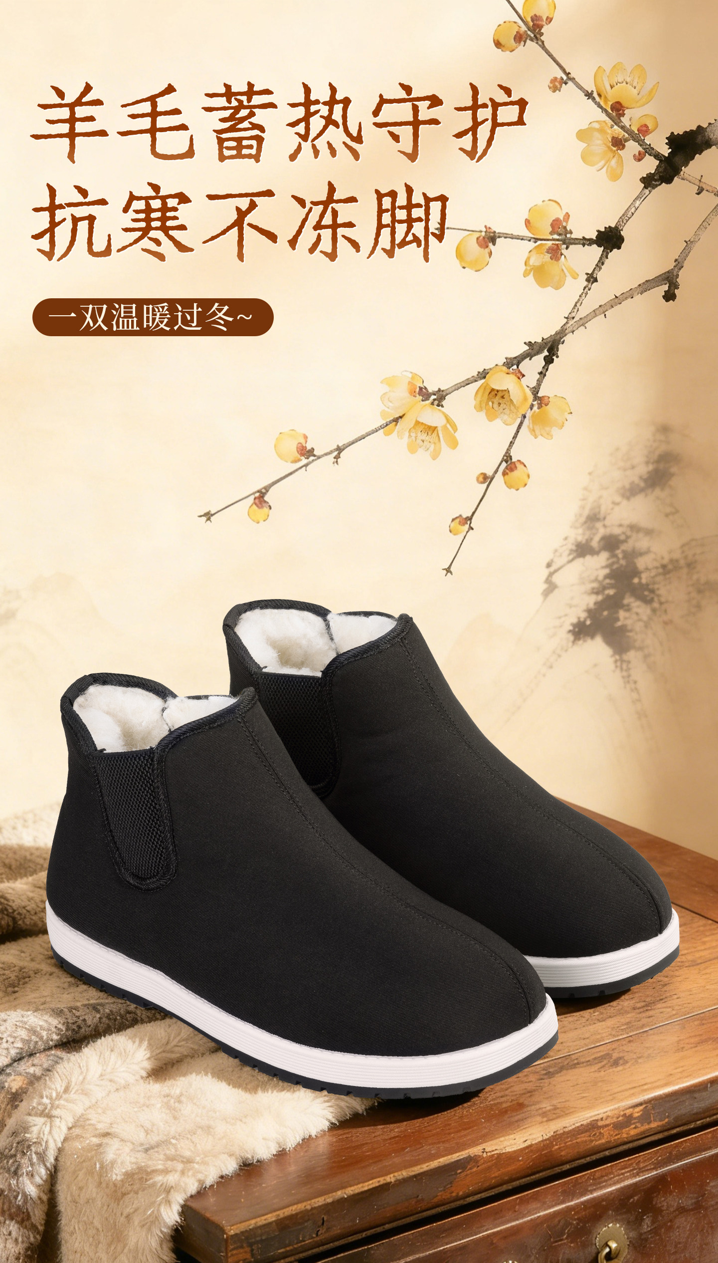 Old Beijing Cloth Shoes for Men, Winter Official Flagship Store, Fleece-Lined, Warm, Non-Slip, 2025 New Model, Thickened Cotton Shoes for the Elderly