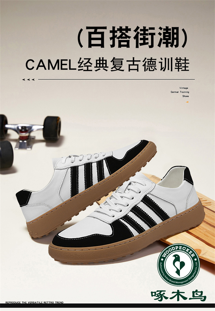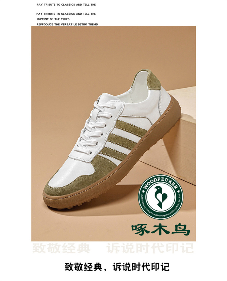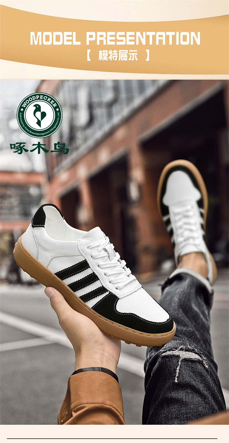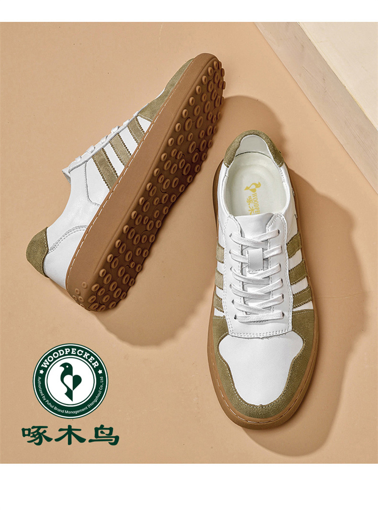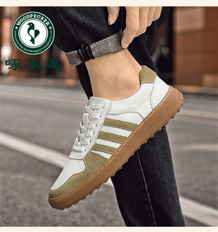 Woodpecker Men's Shoes Leather Breathable Desun White Shoes 2025 Autumn New arrival Non Slip Thick Sole Men Casual Shoes