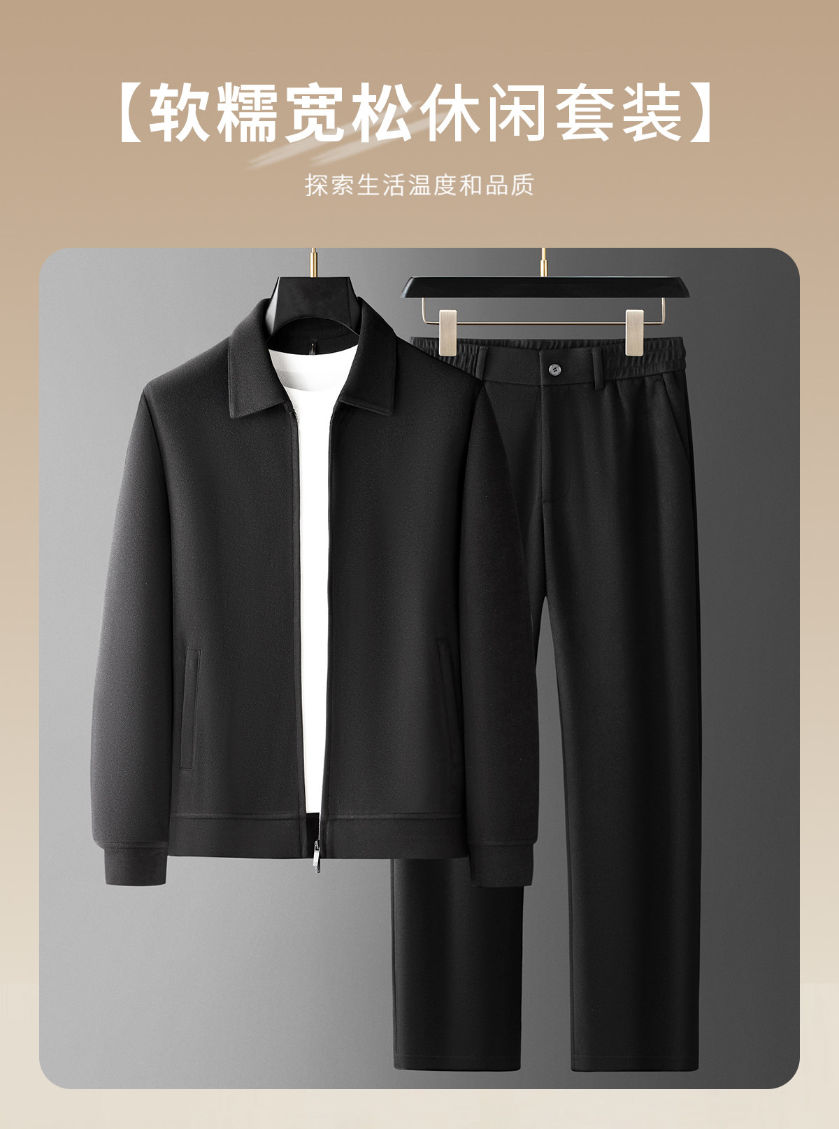 High-End Wool Modal Casual Suit for Men, Autumn and Winter Style, Loose Lapel Executive Jacket, Business Commuting Two-Piece Set