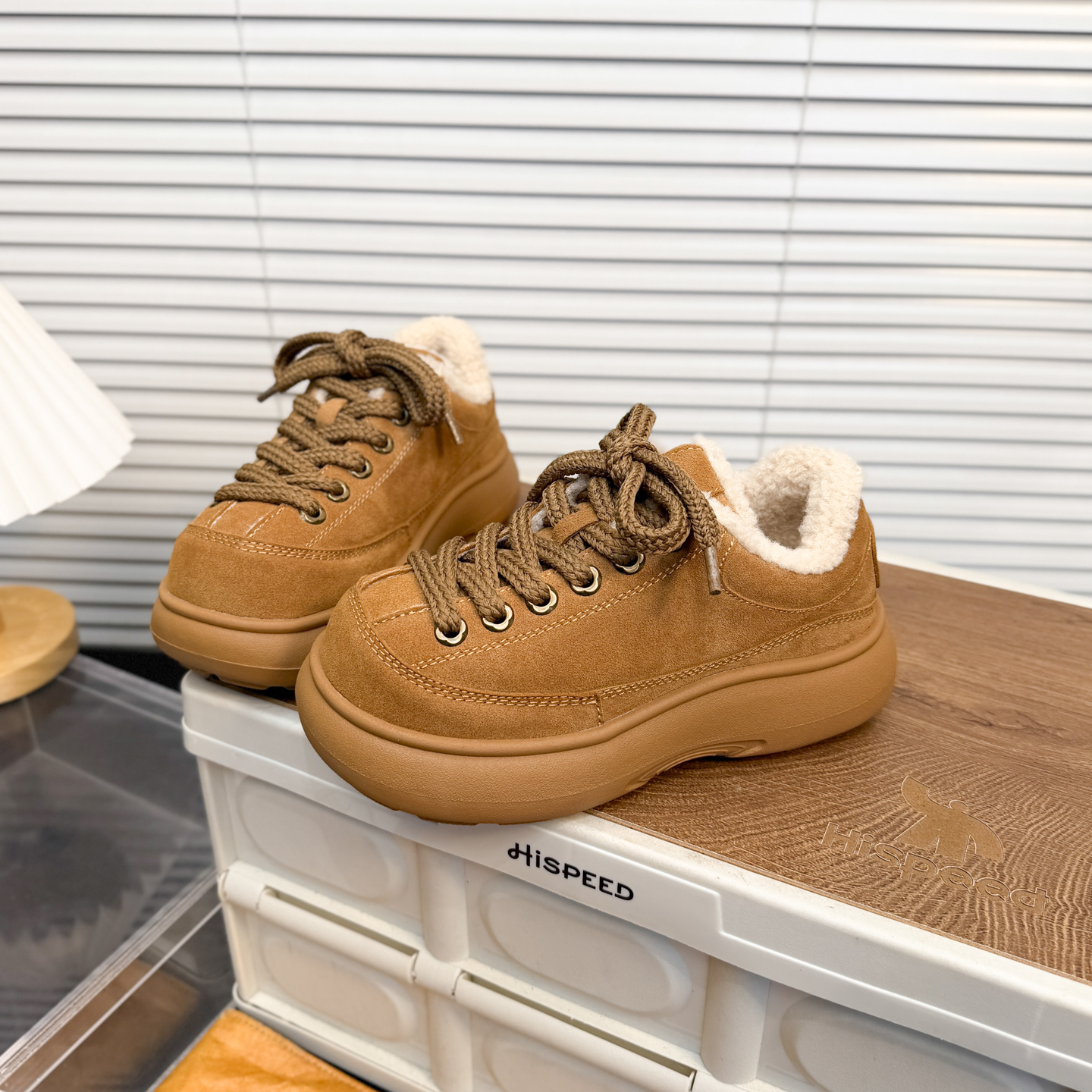 Hong Kong Style Retro Chunky Loafers for Women 2025 Autumn and Winter Fleece-Lined Cotton Shoes for Petite Individuals with Thick Soles and Height-Increasing Casual Shoes