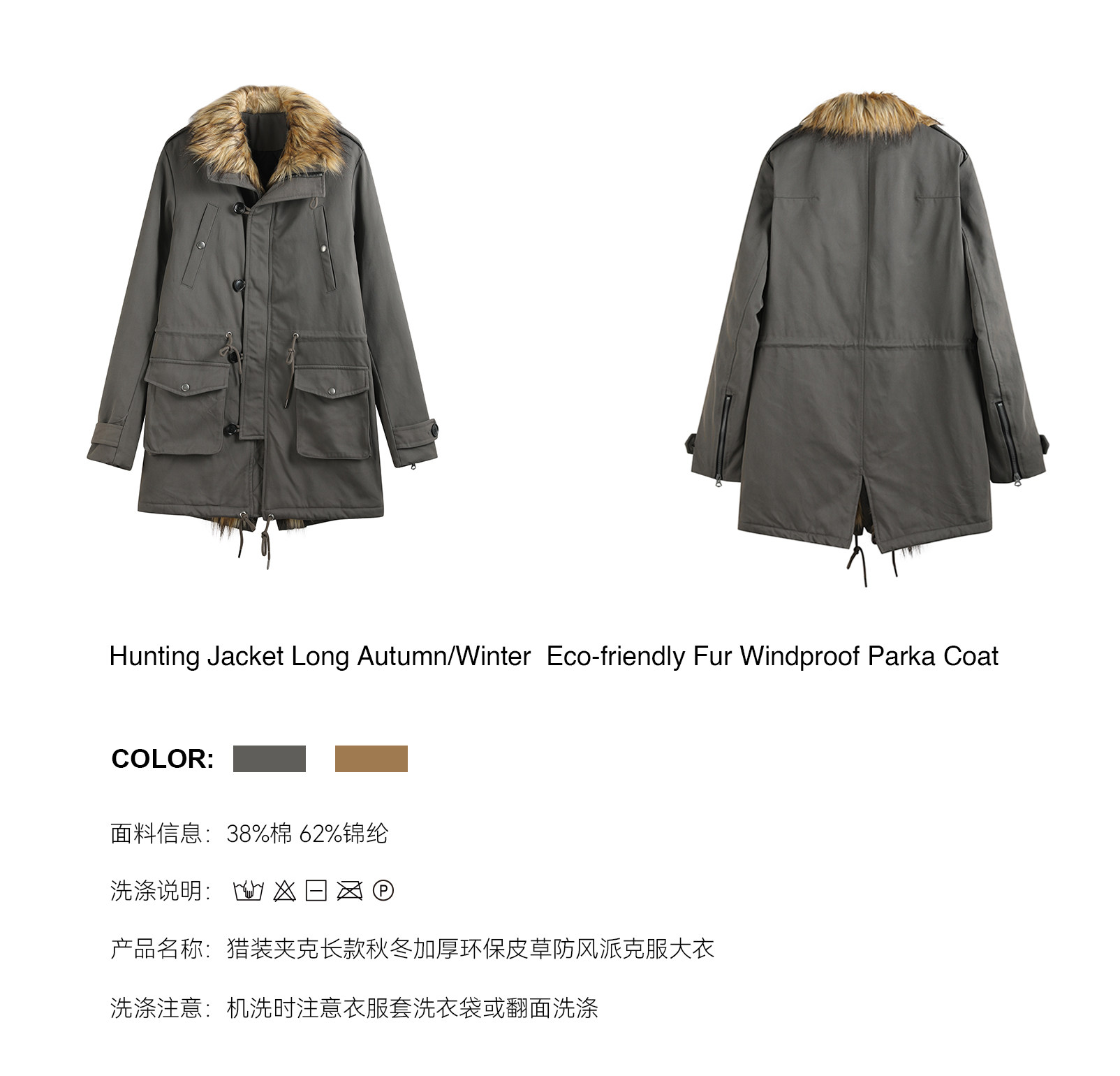 No E Mosen(Noe) Hunting Jacket Long Style Autumn and Winter Thickened Eco-Friendly Fur Windproof Parka Coat