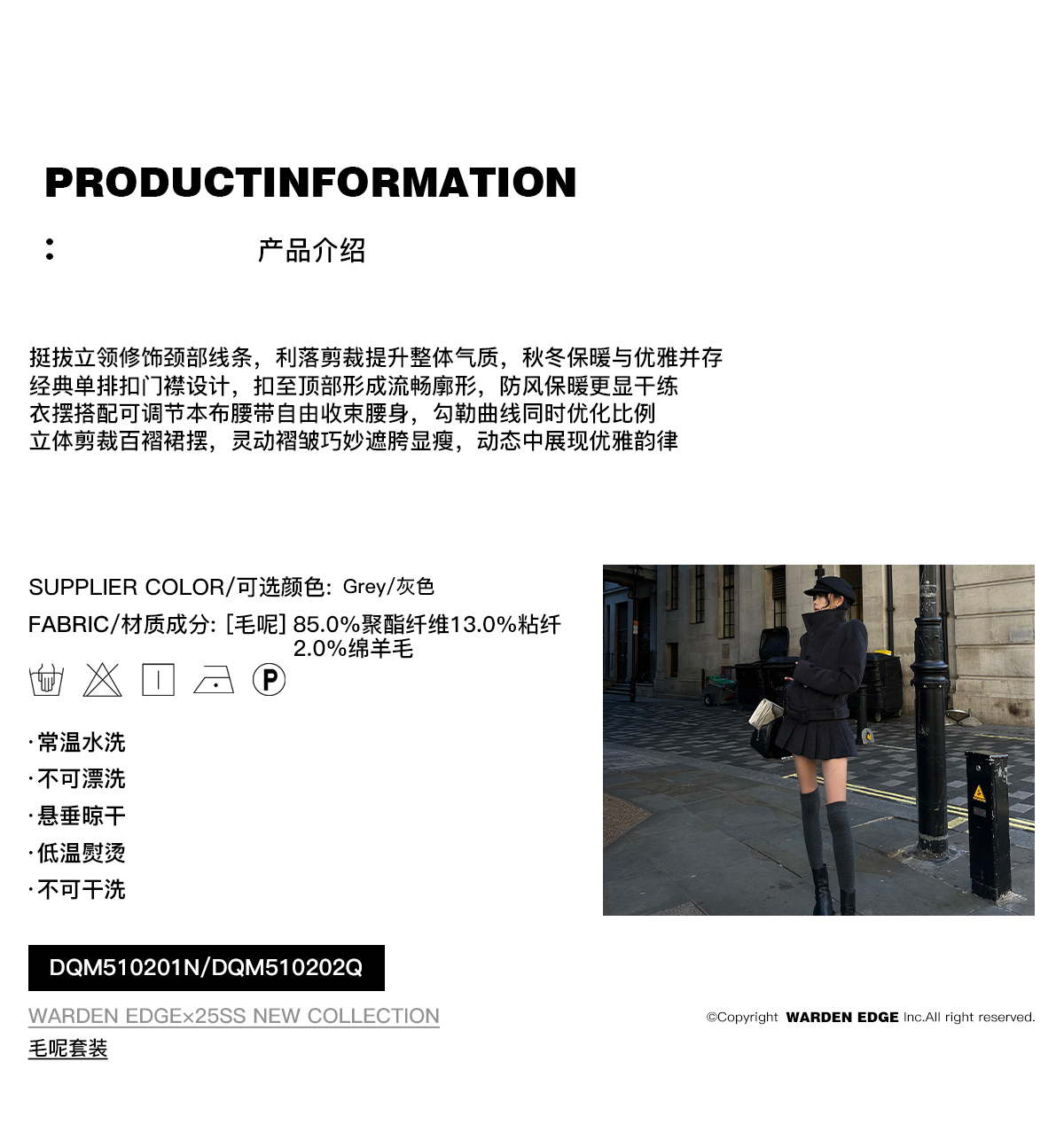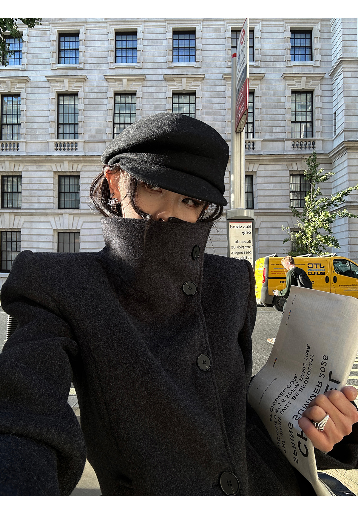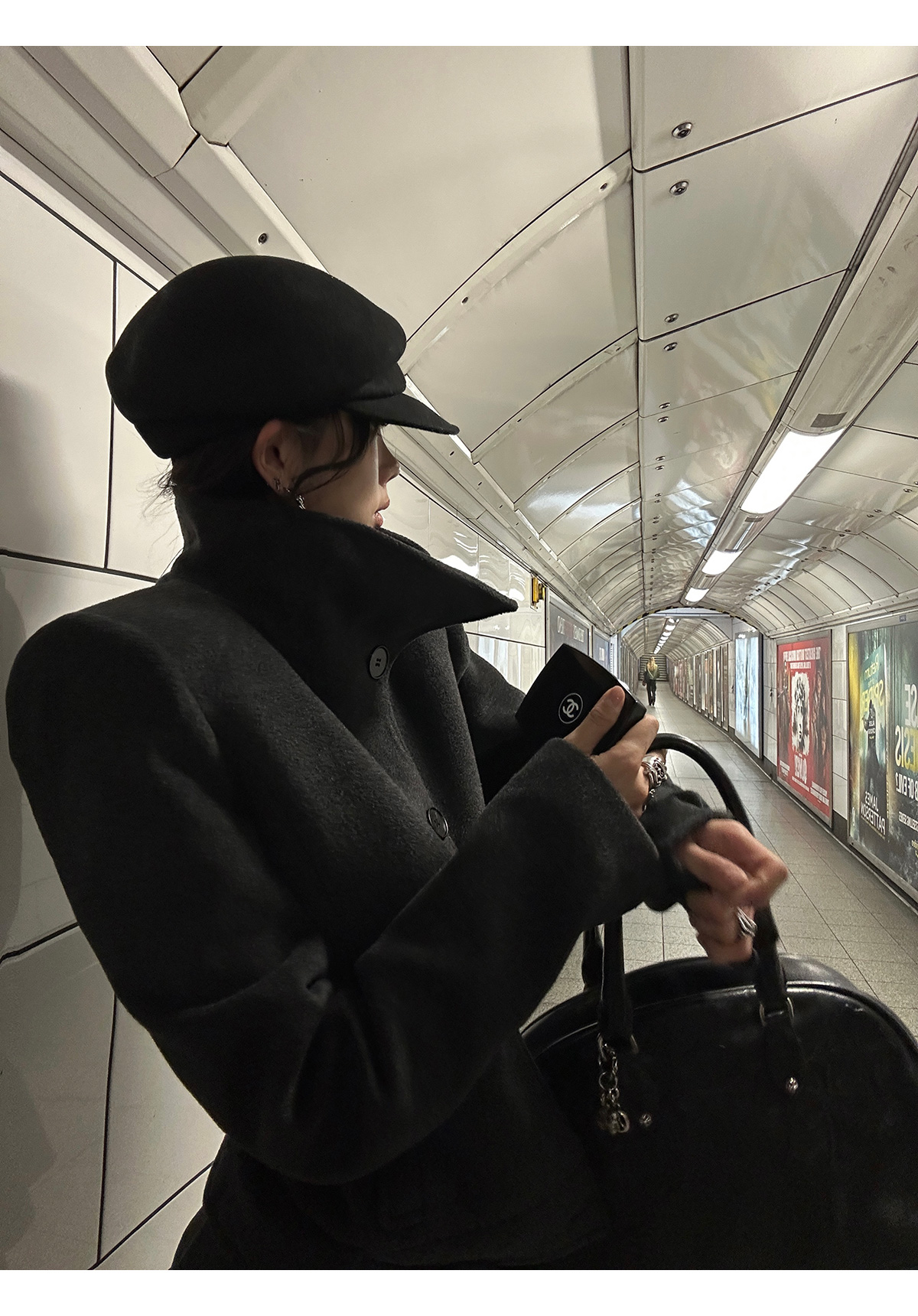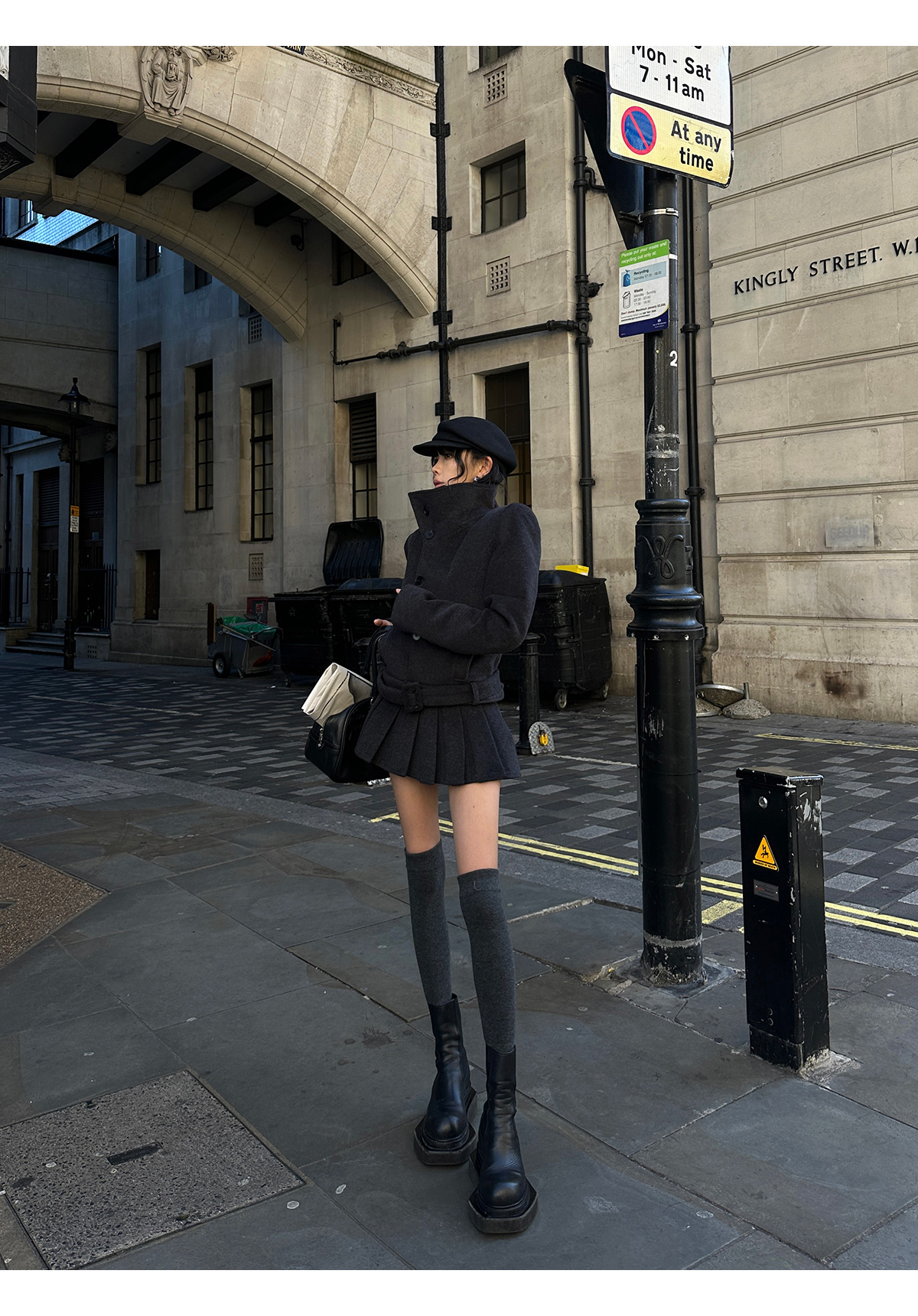 Hanhaotian Warden Edge Gray Turtleneck Woolen Coat for Women, Winter Slim Fit Thickened Short Coat for Petite Figures
