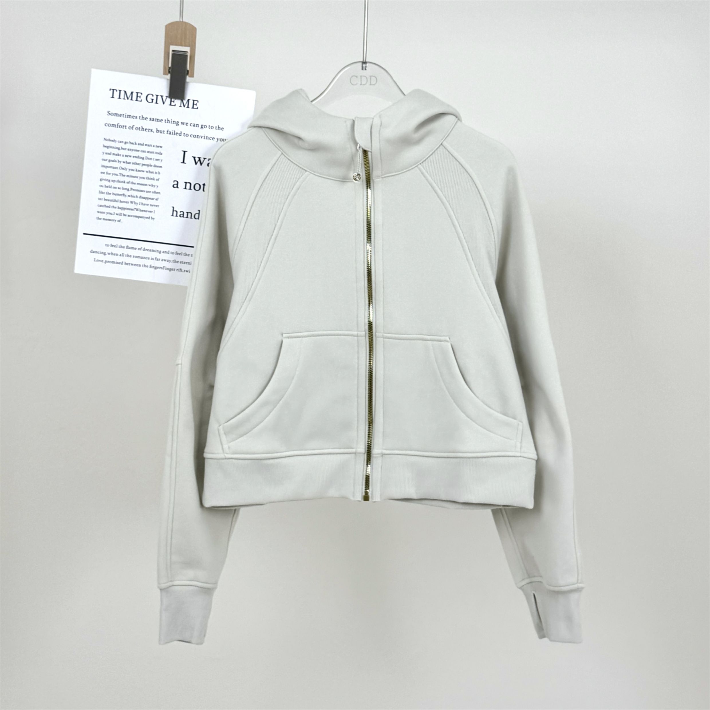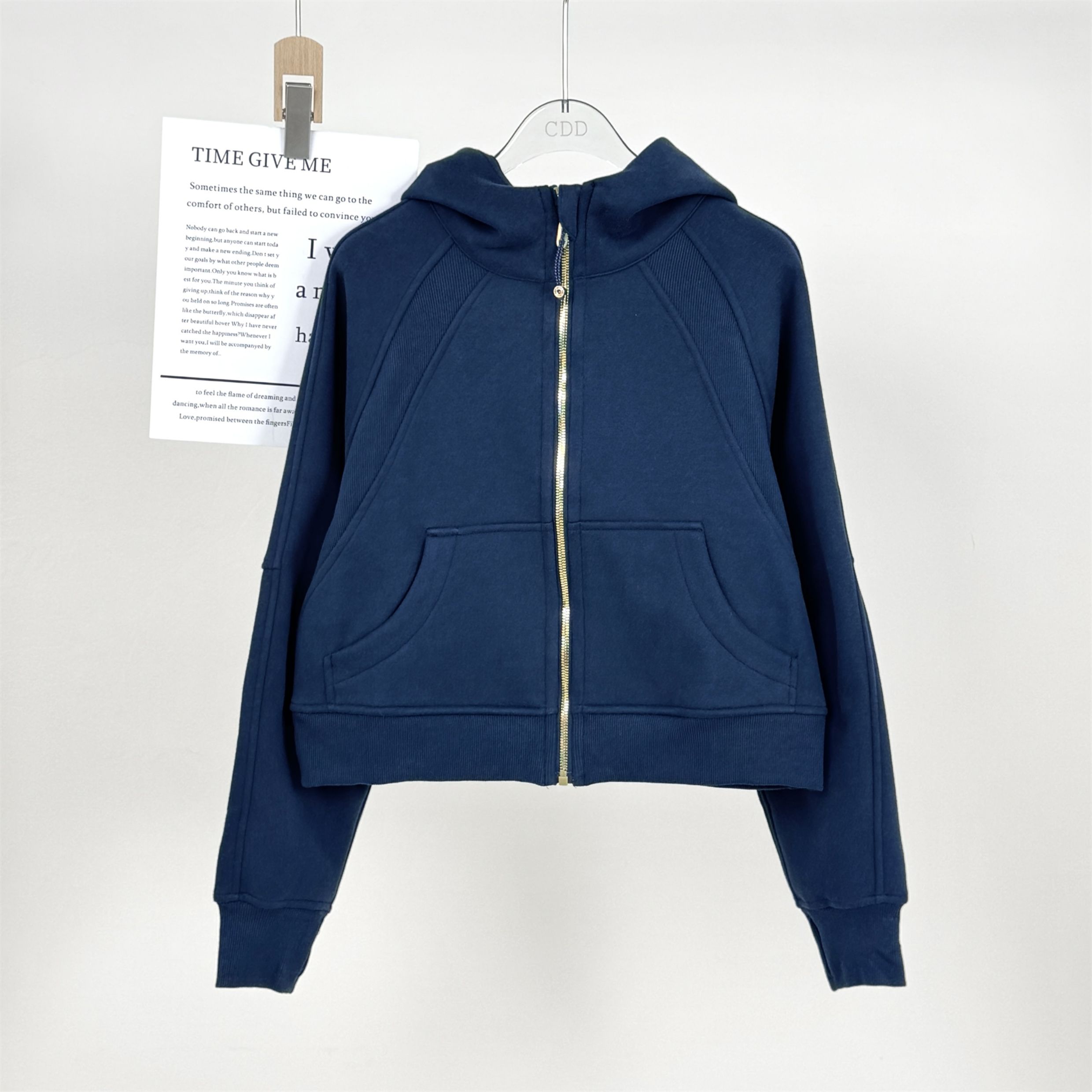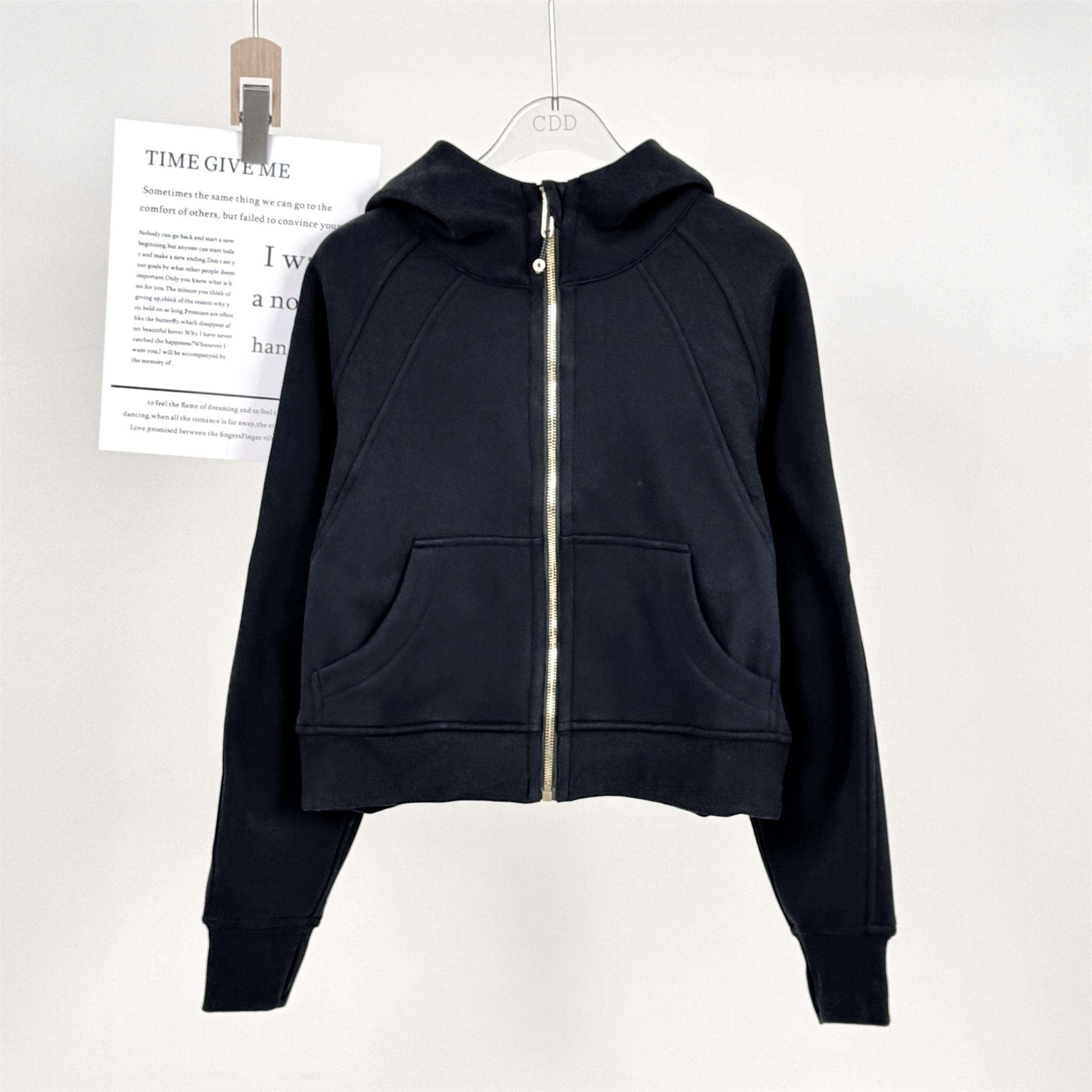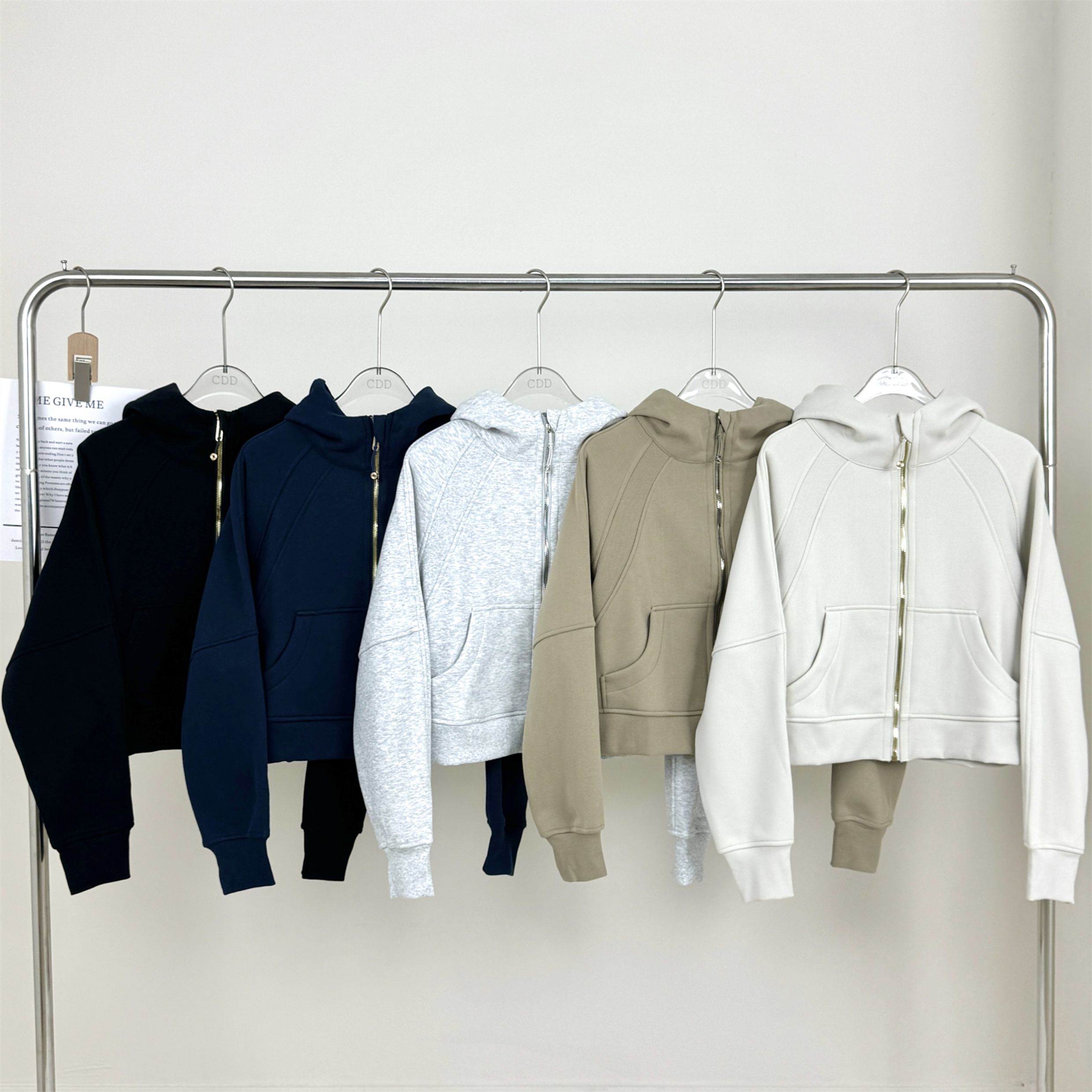 Fall and winter Fleece-lined SCB hooded Cardigan Sweatshirt women Heattech gold zipper Outwear Loose Casual sports Long sleeves Tops