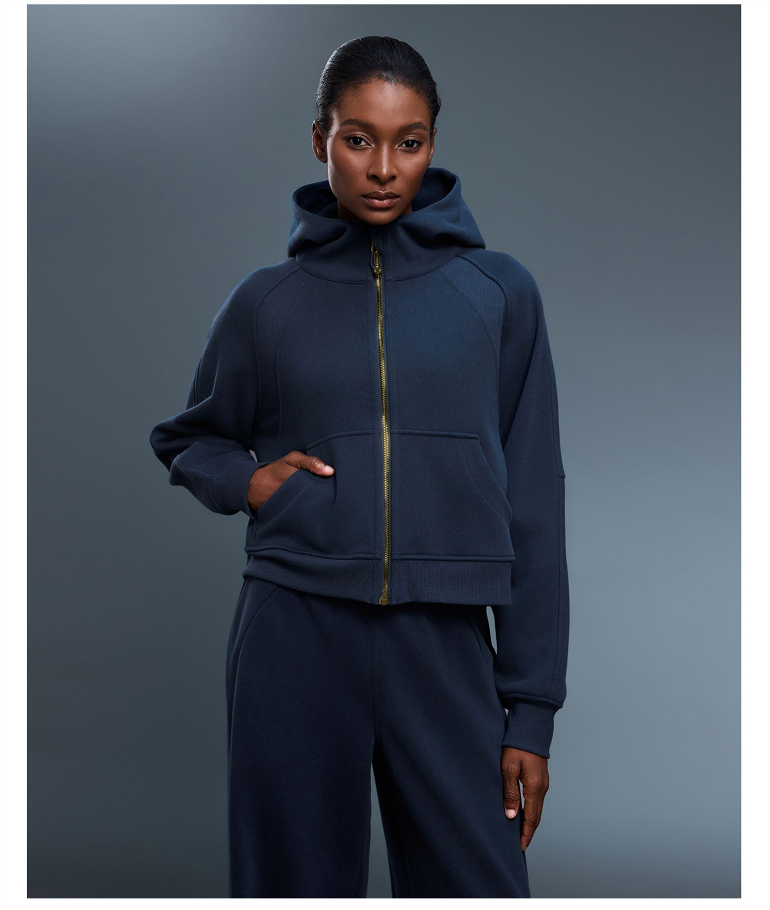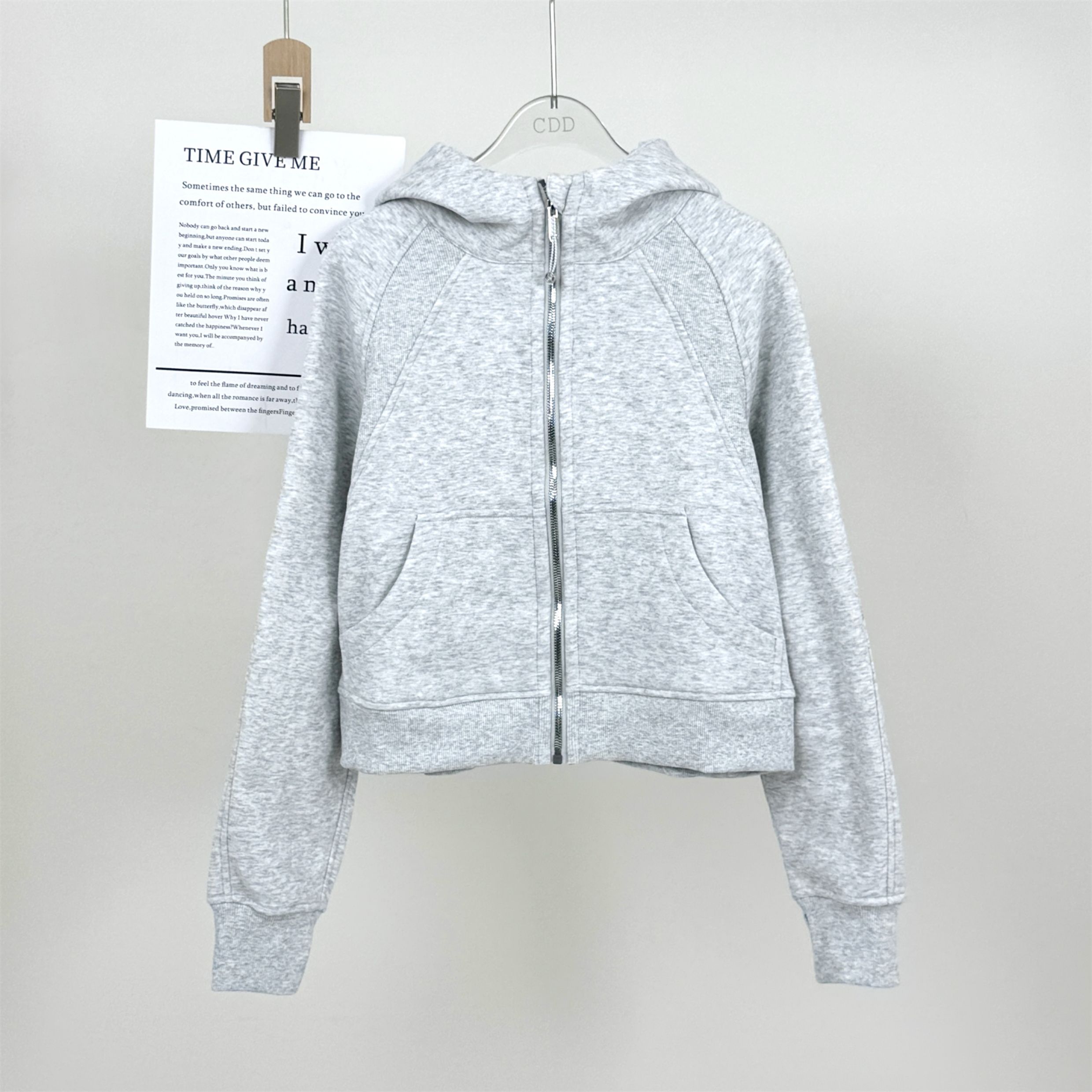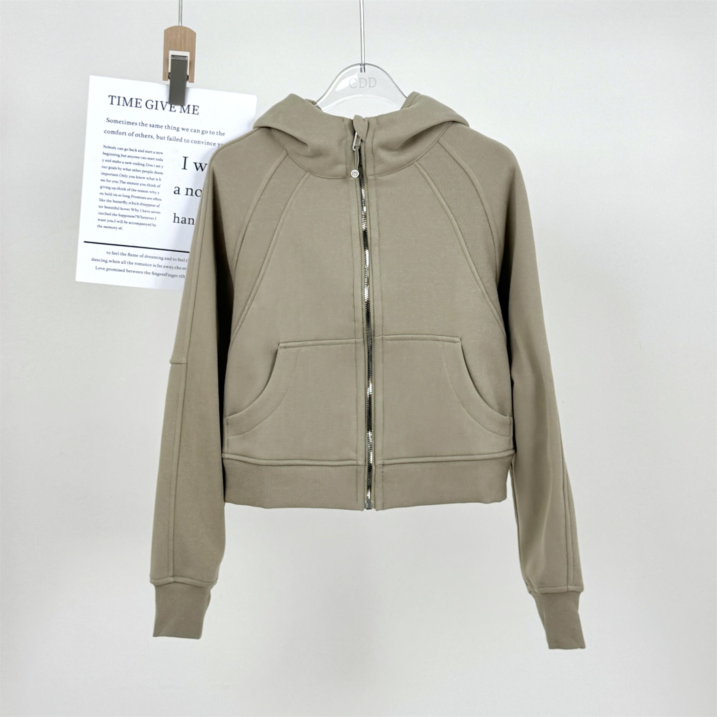 Fall and winter Fleece-lined SCB hooded Cardigan Sweatshirt women Heattech gold zipper Outwear Loose Casual sports Long sleeves Tops