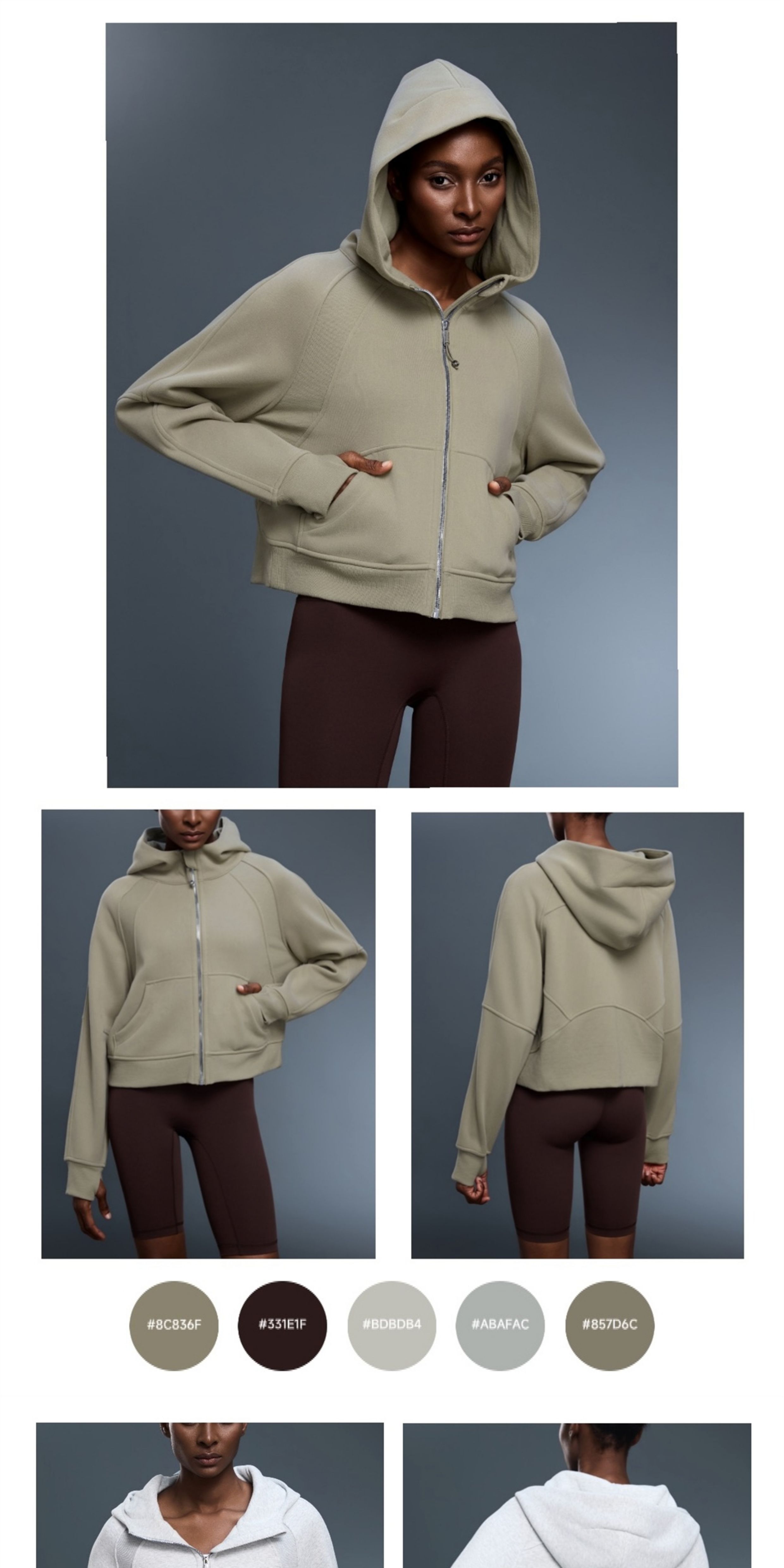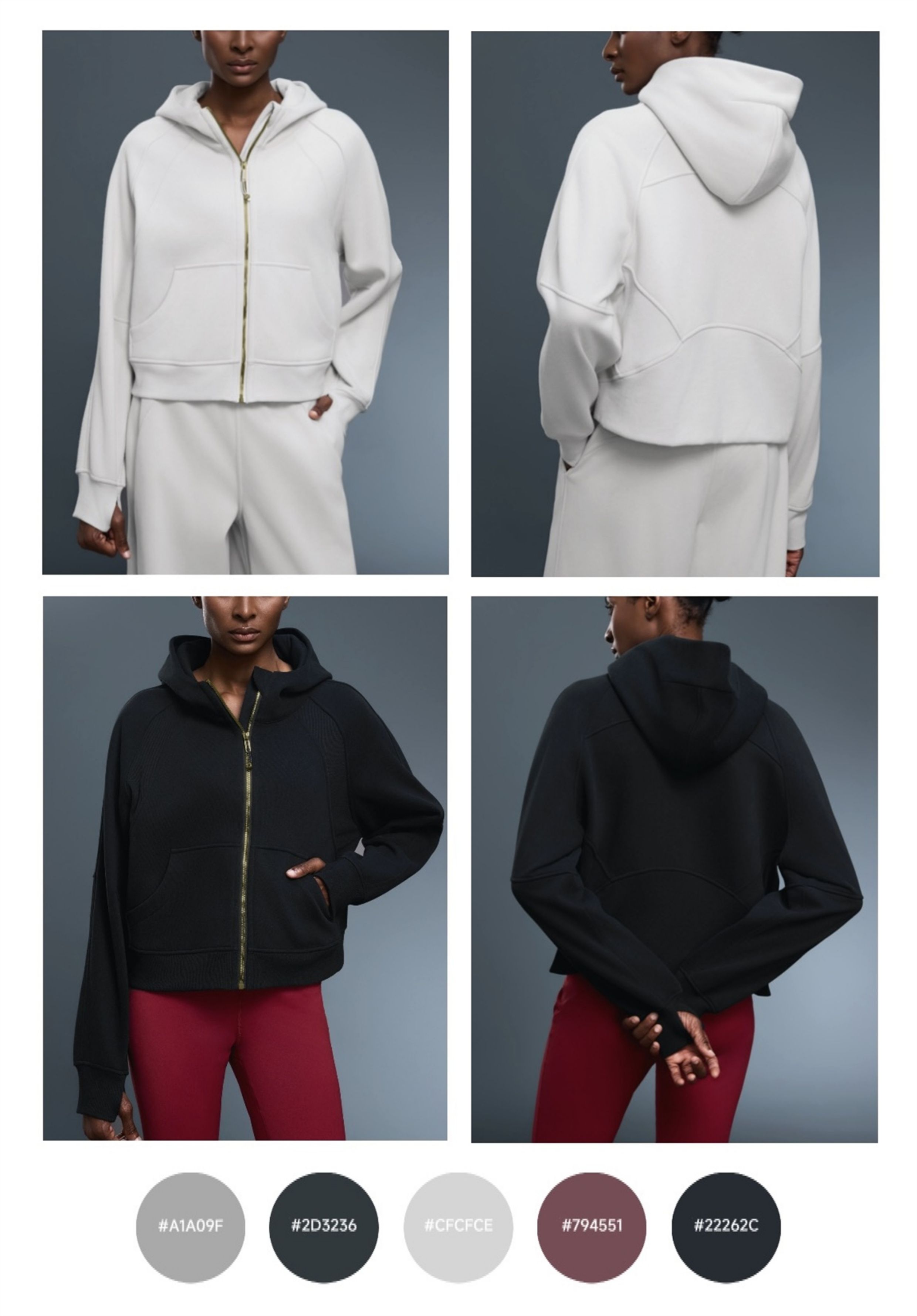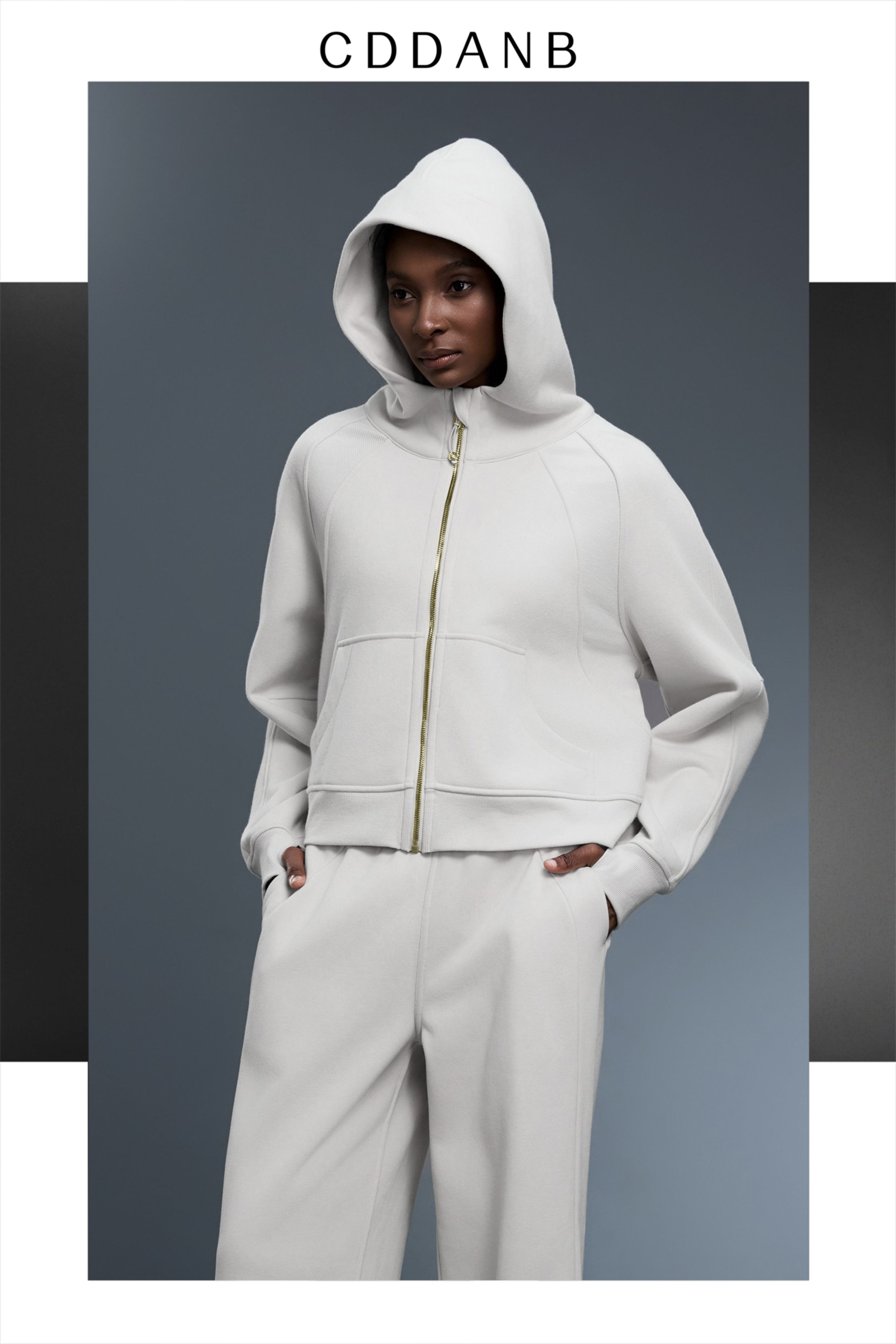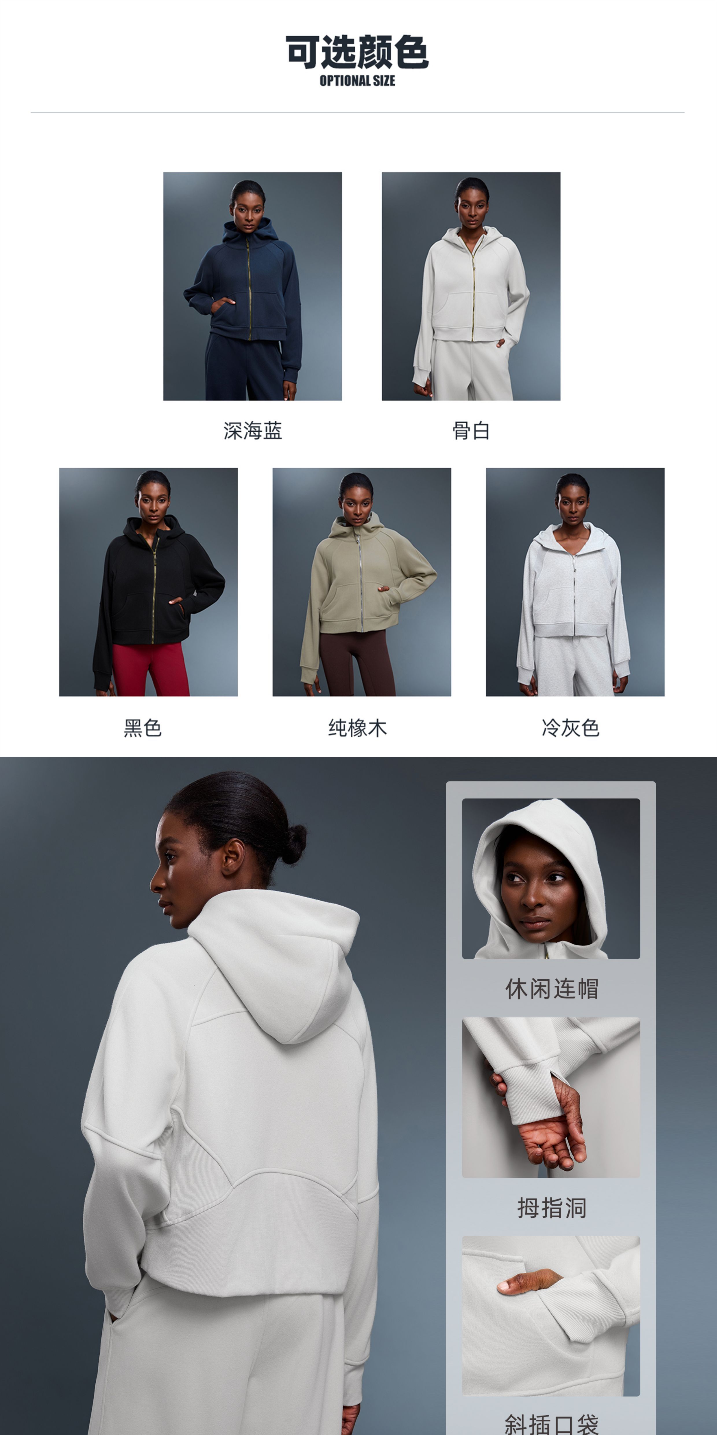 Fall and winter Fleece-lined SCB hooded Cardigan Sweatshirt women Heattech gold zipper Outwear Loose Casual sports Long sleeves Tops