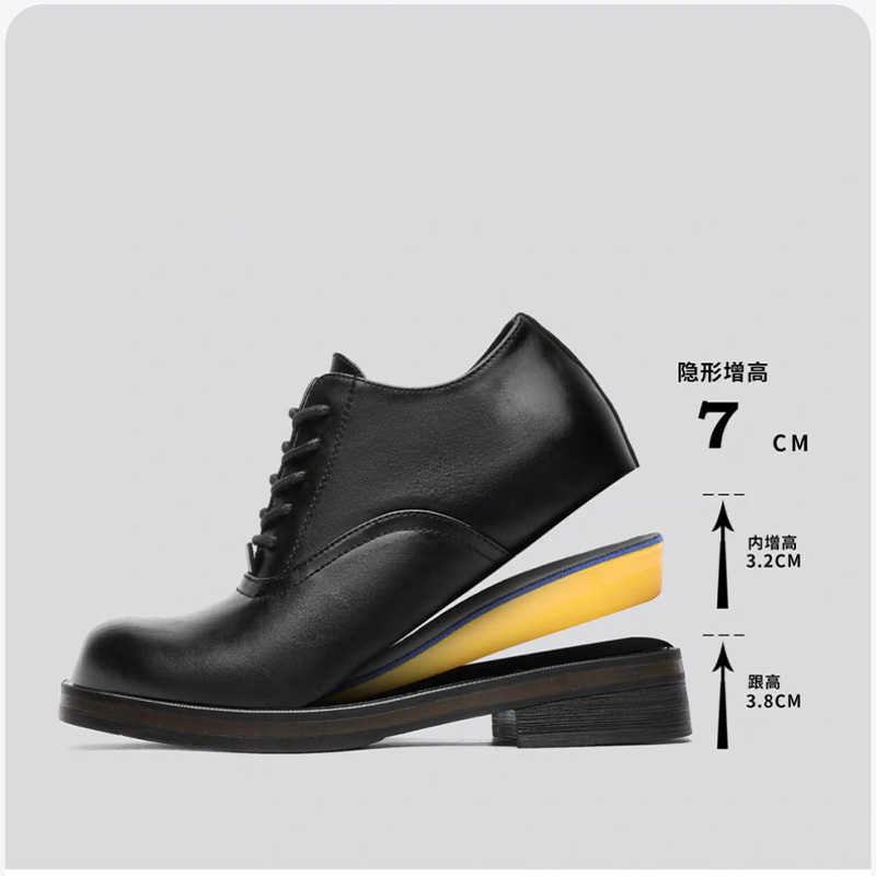Cleanfit Leather Shoes, Niche High-End Square-Toe Casual Men's Shoes, Versatile for Weddings and Commuting, Round-Toe Thick-Soled Derby Shoes