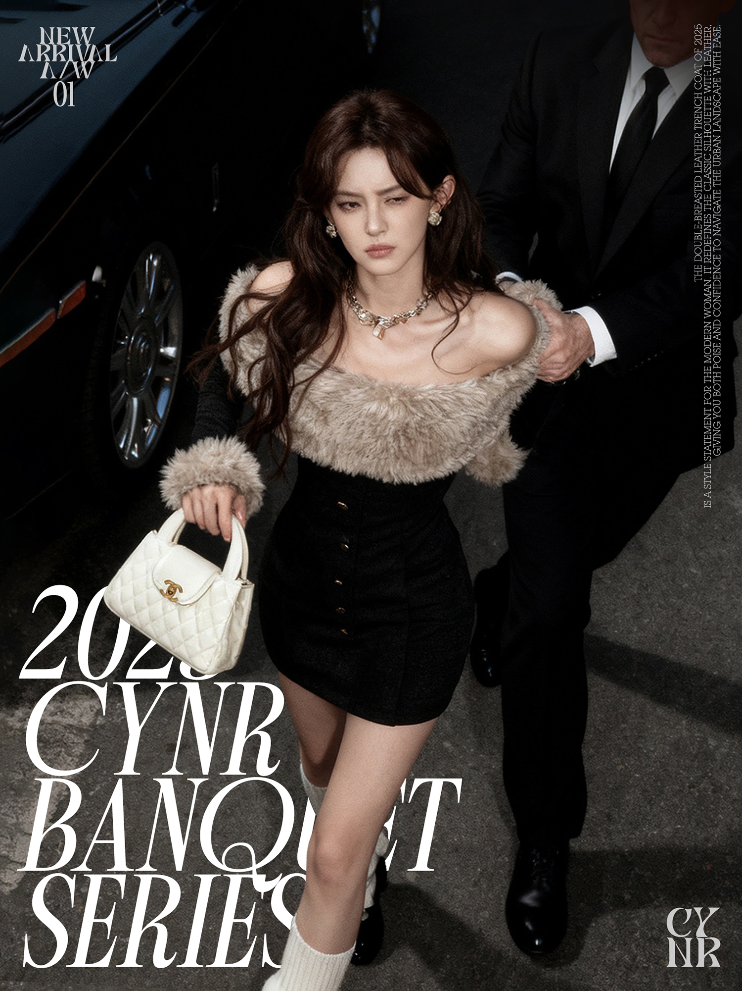 Cynr Original Design Rich Girl Sexy Fur Collar Off-Shoulder Dress Slim Fit Bodycon Knit Mini Skirt