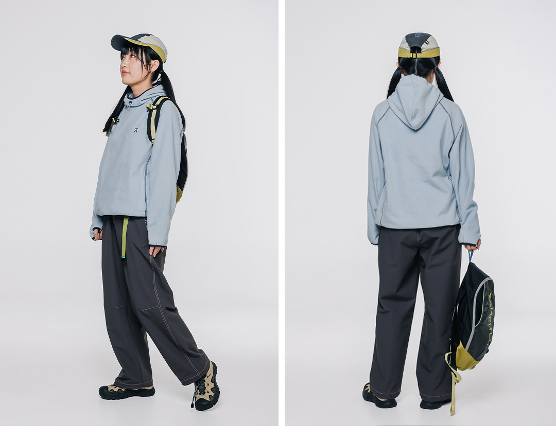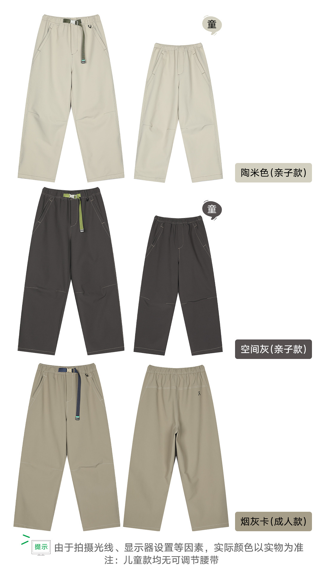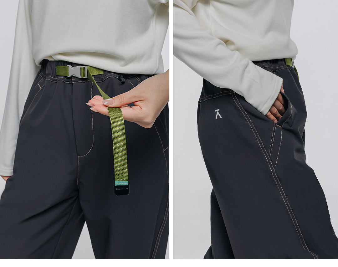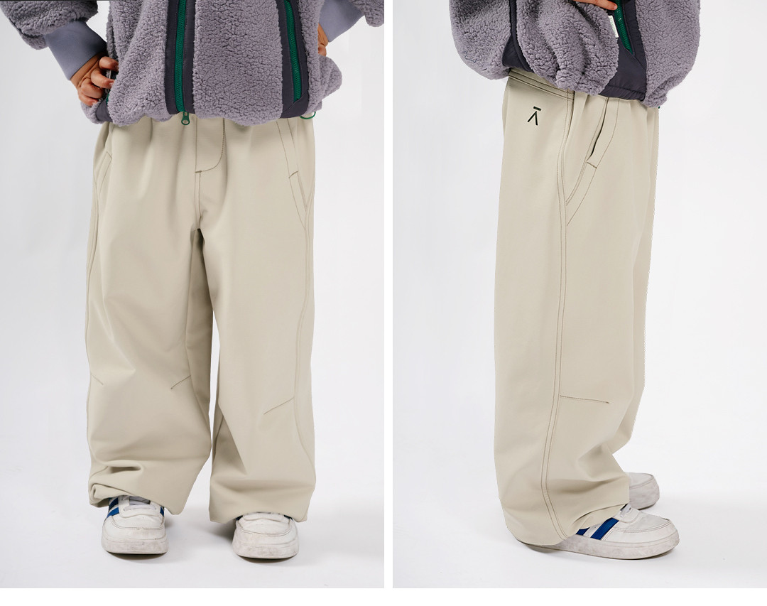Acmeitem Outdoor Parent-Child Water-Repellent Straight-Leg Pants with Visible Stitching, Fleece-Lined Loose Pants for Men and Women
