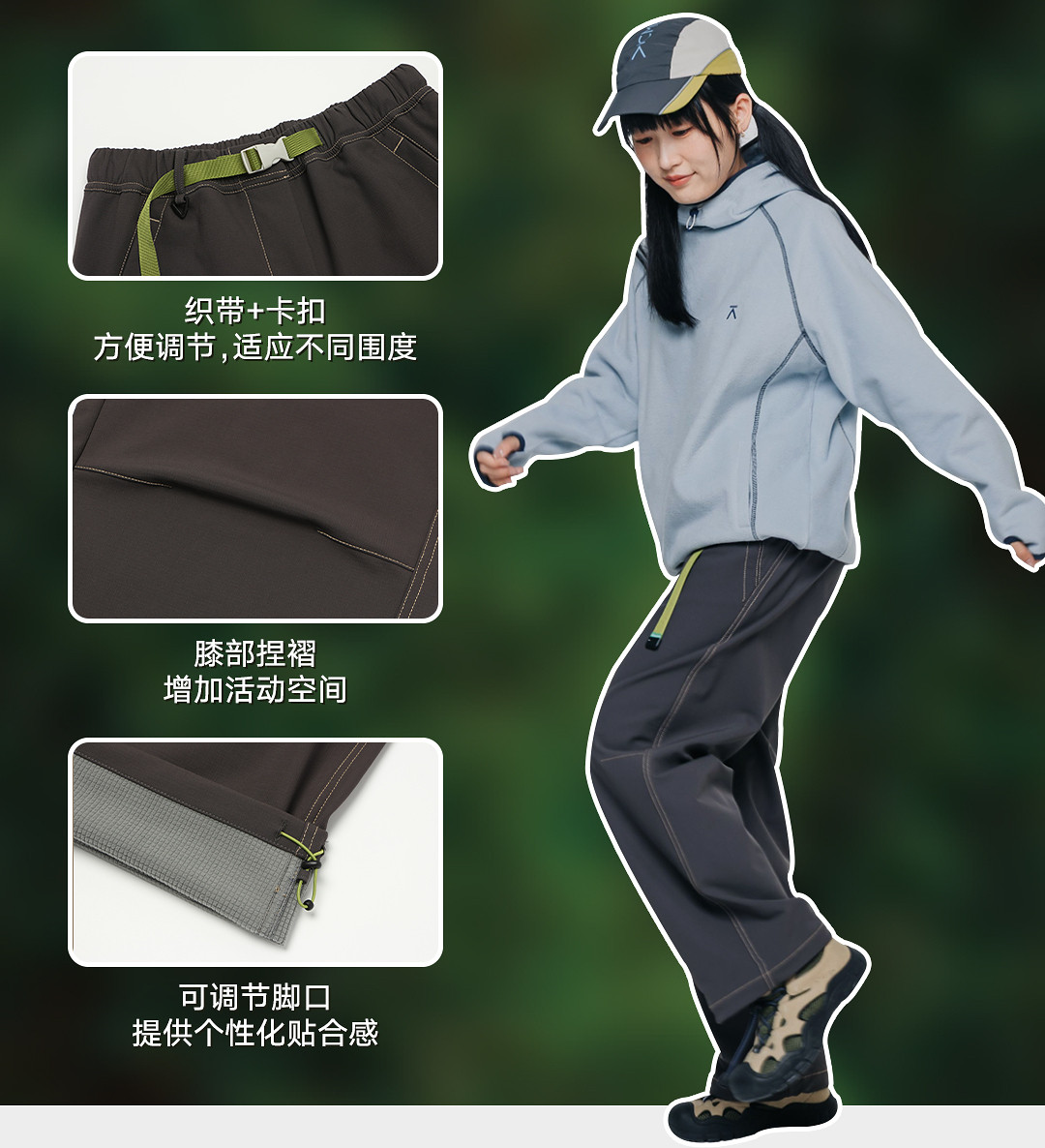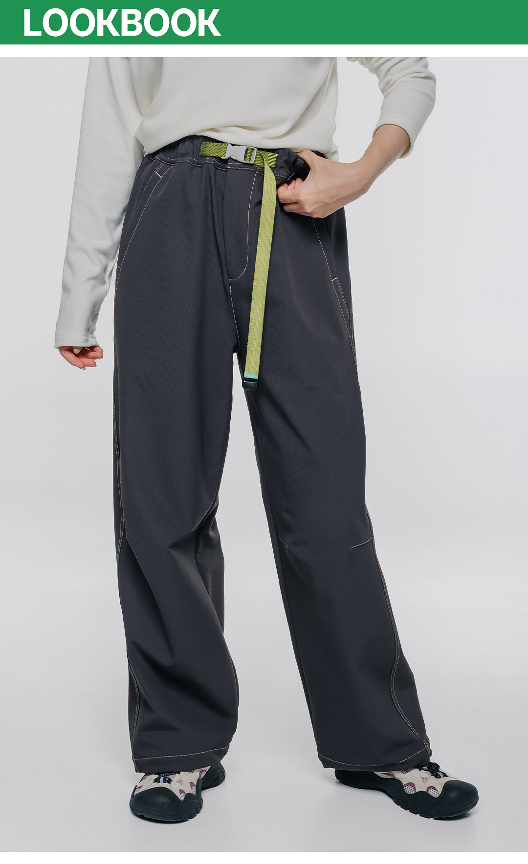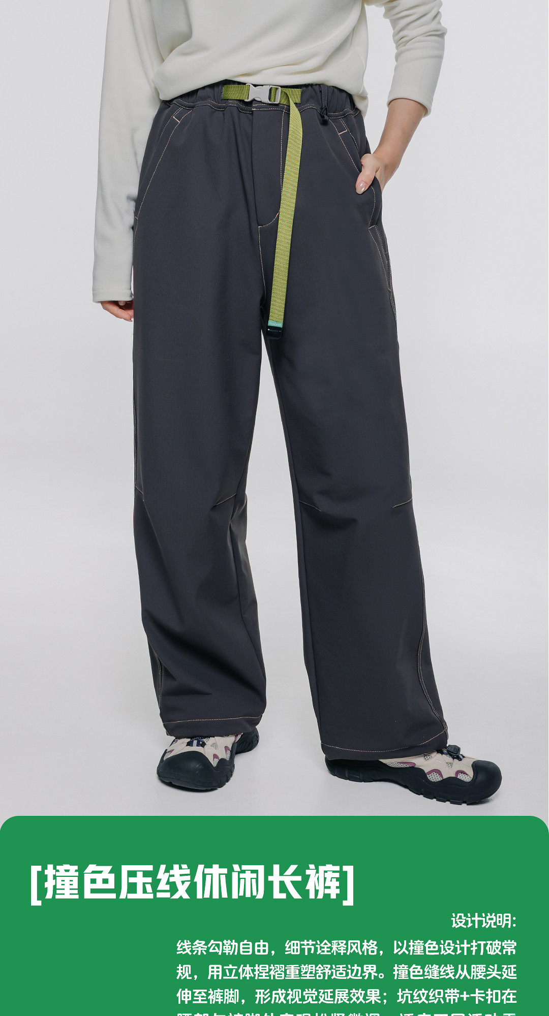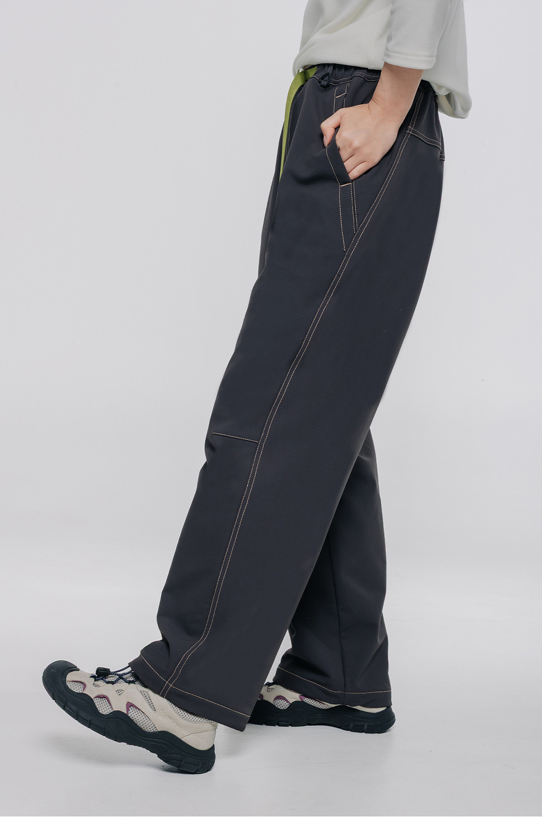 Acmeitem Outdoor Parent-Child Water-Repellent Straight-Leg Pants with Visible Stitching, Fleece-Lined Loose Pants for Men and Women