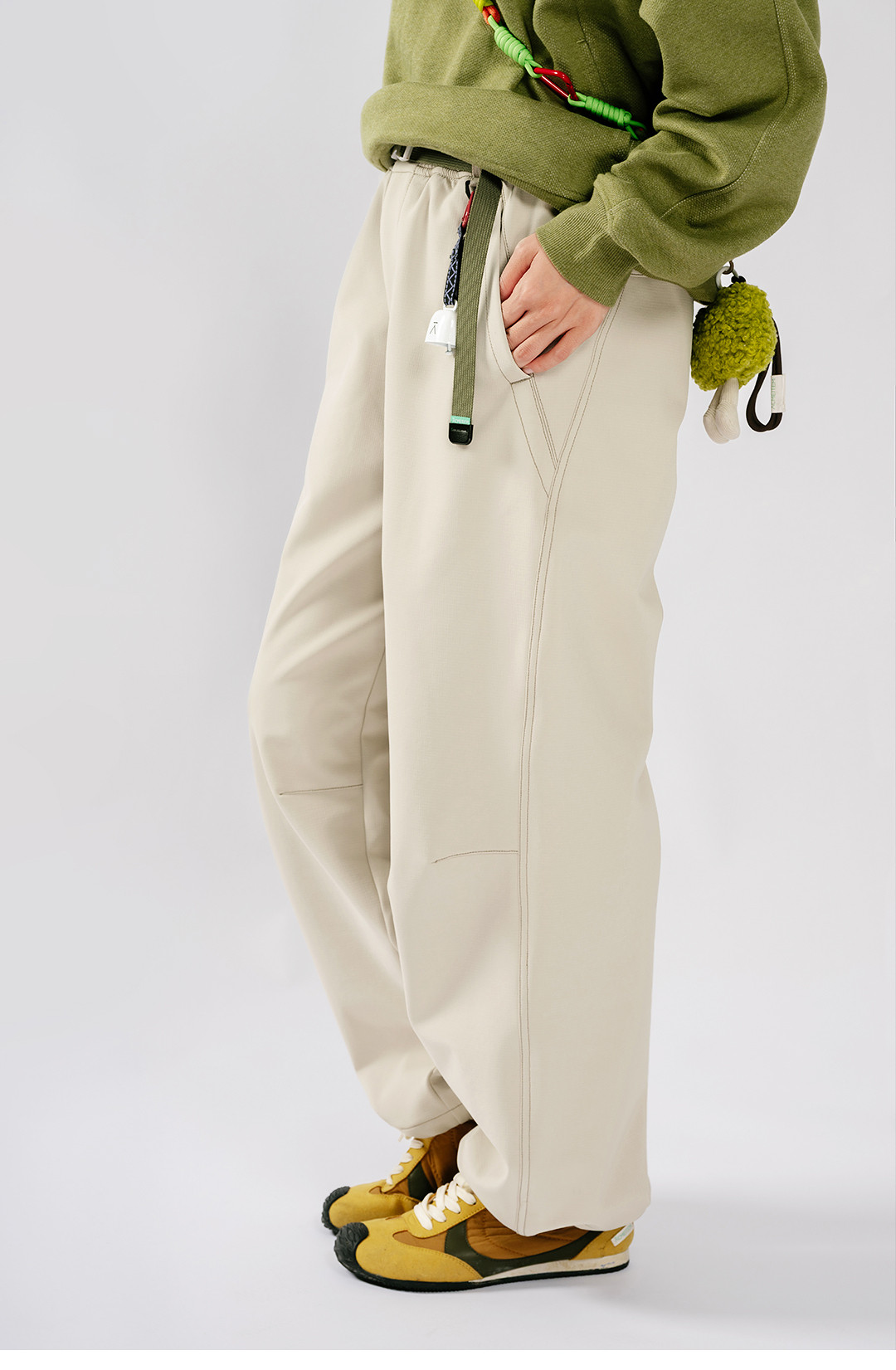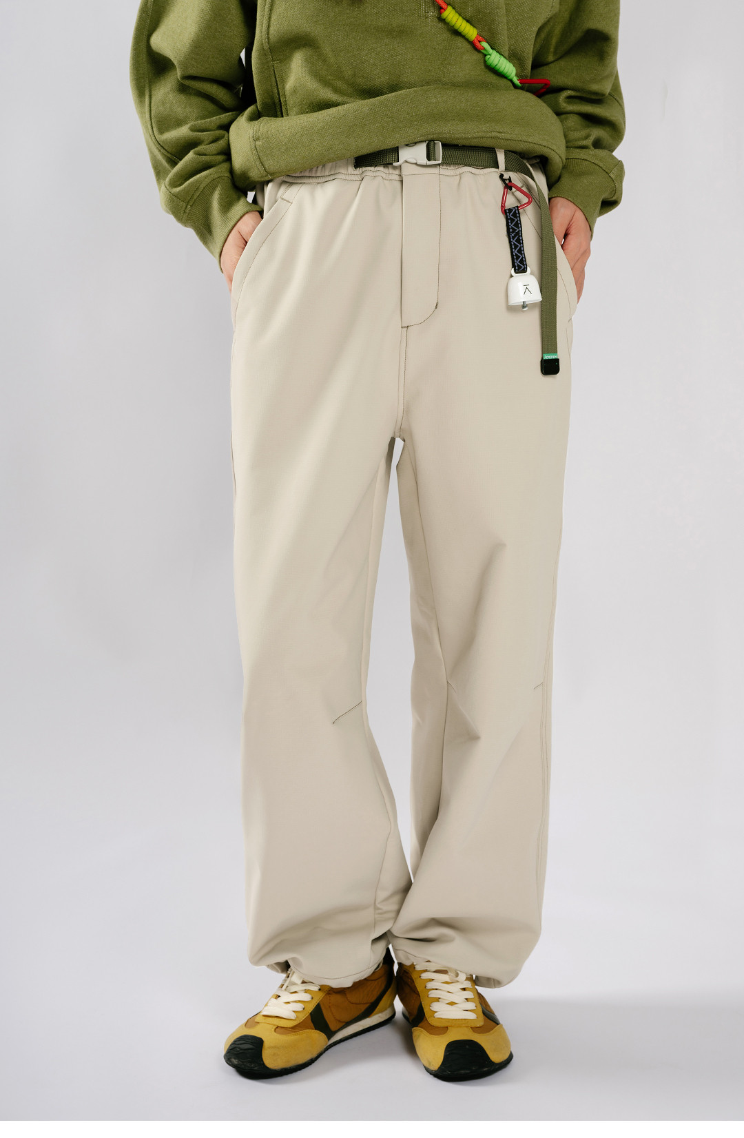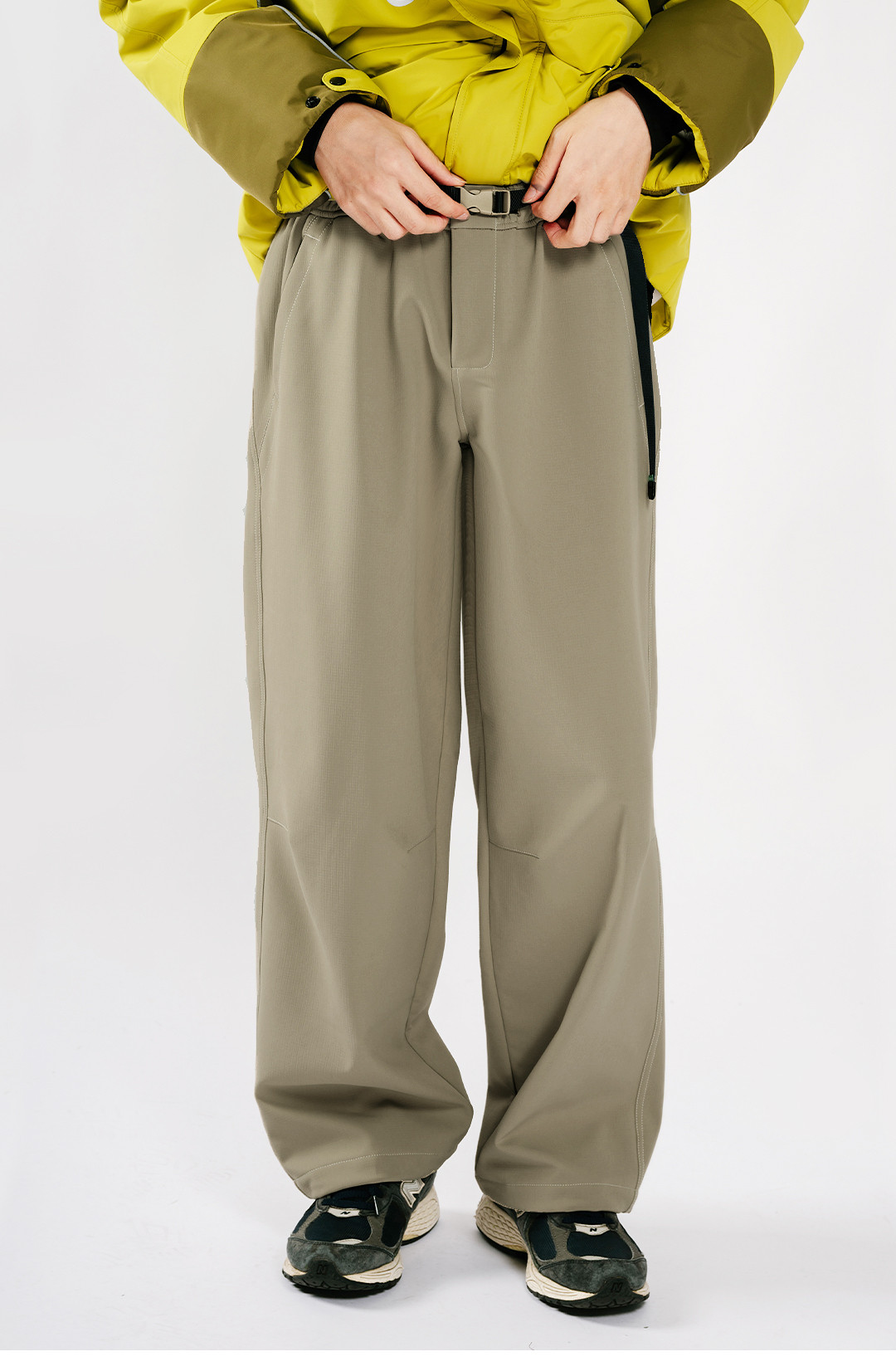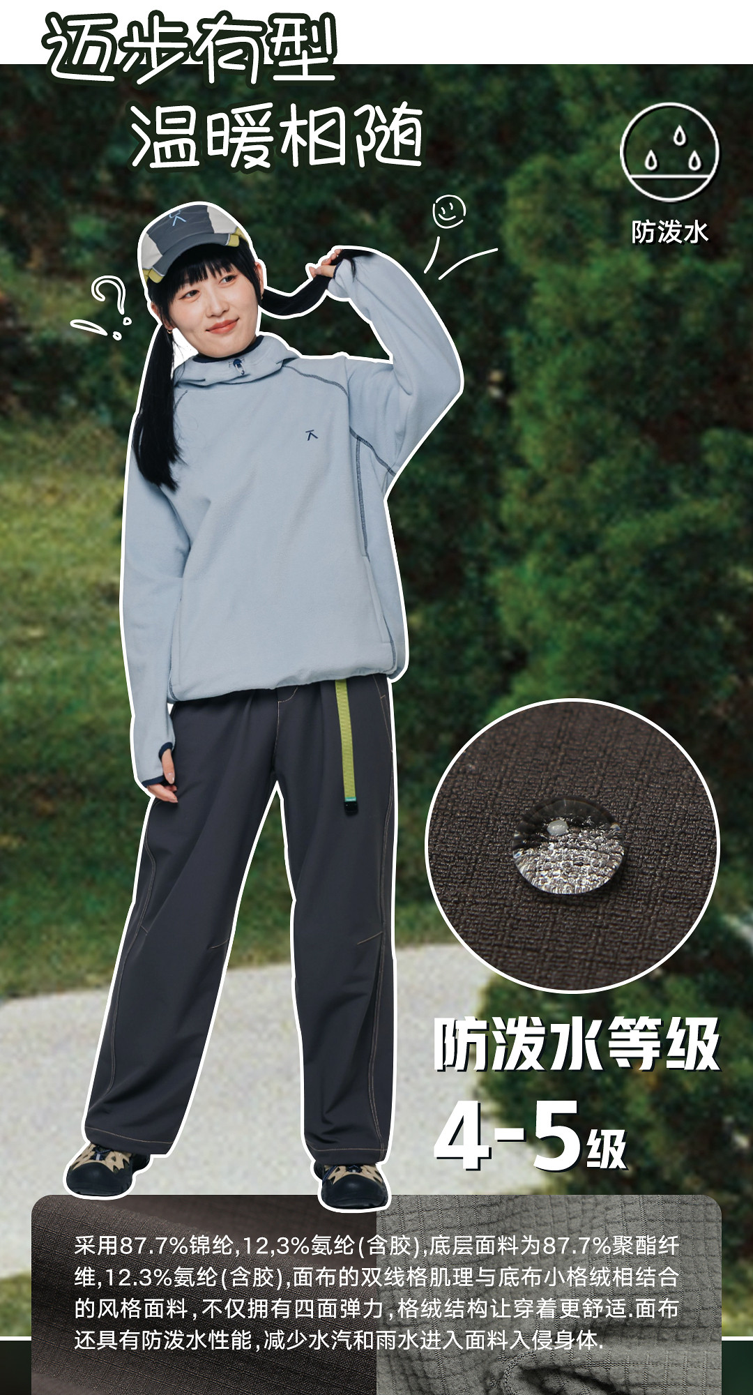 Acmeitem Outdoor Parent-Child Water-Repellent Straight-Leg Pants with Visible Stitching, Fleece-Lined Loose Pants for Men and Women