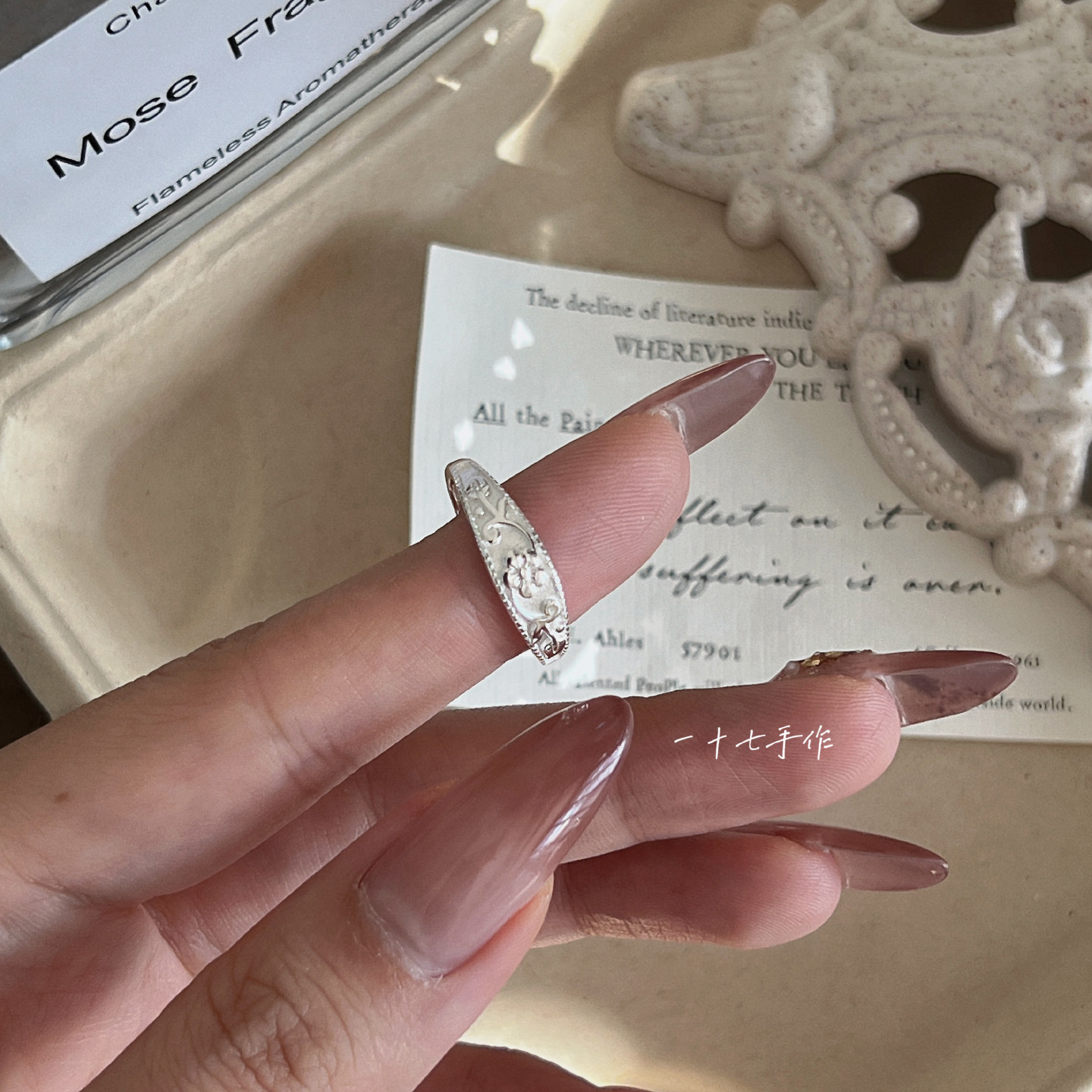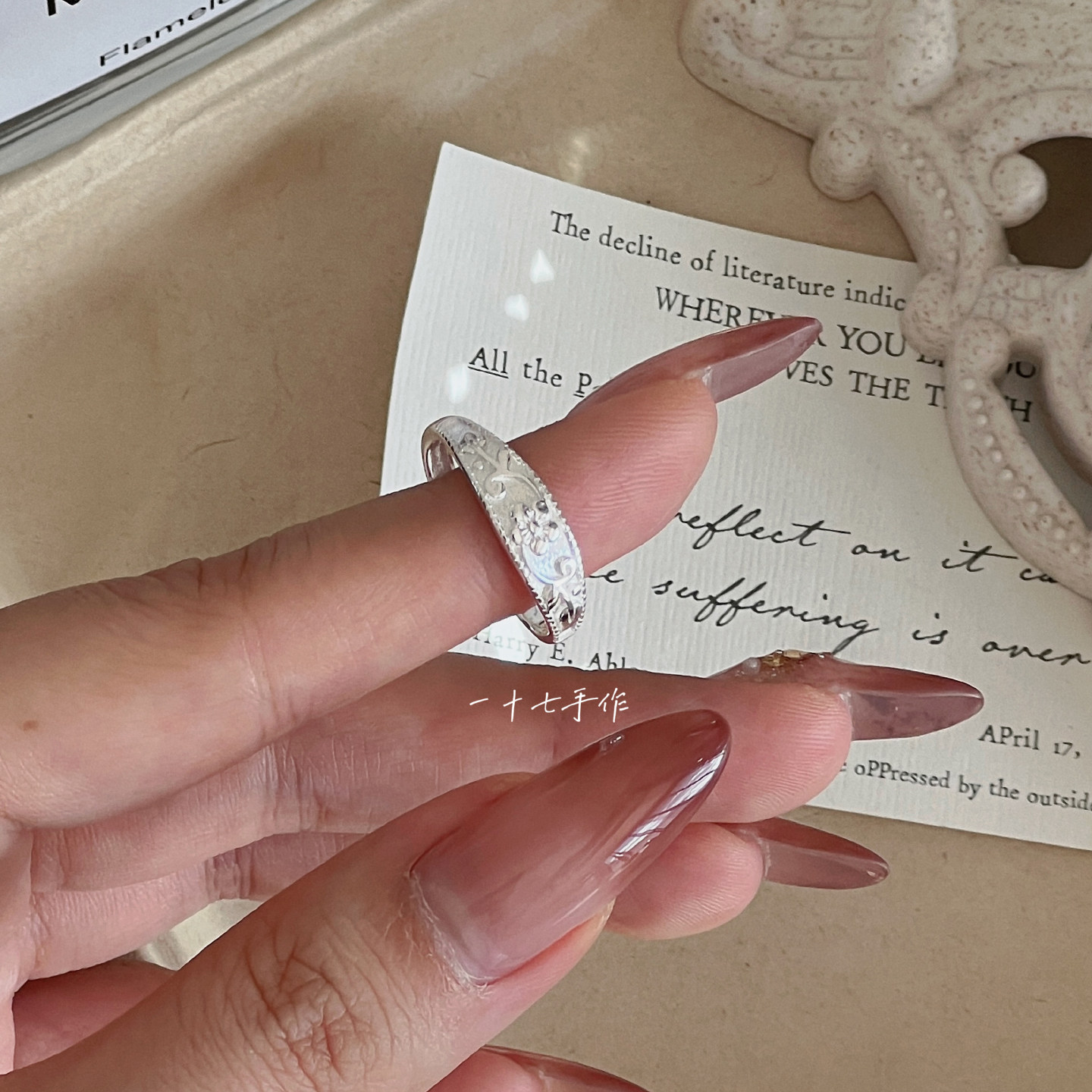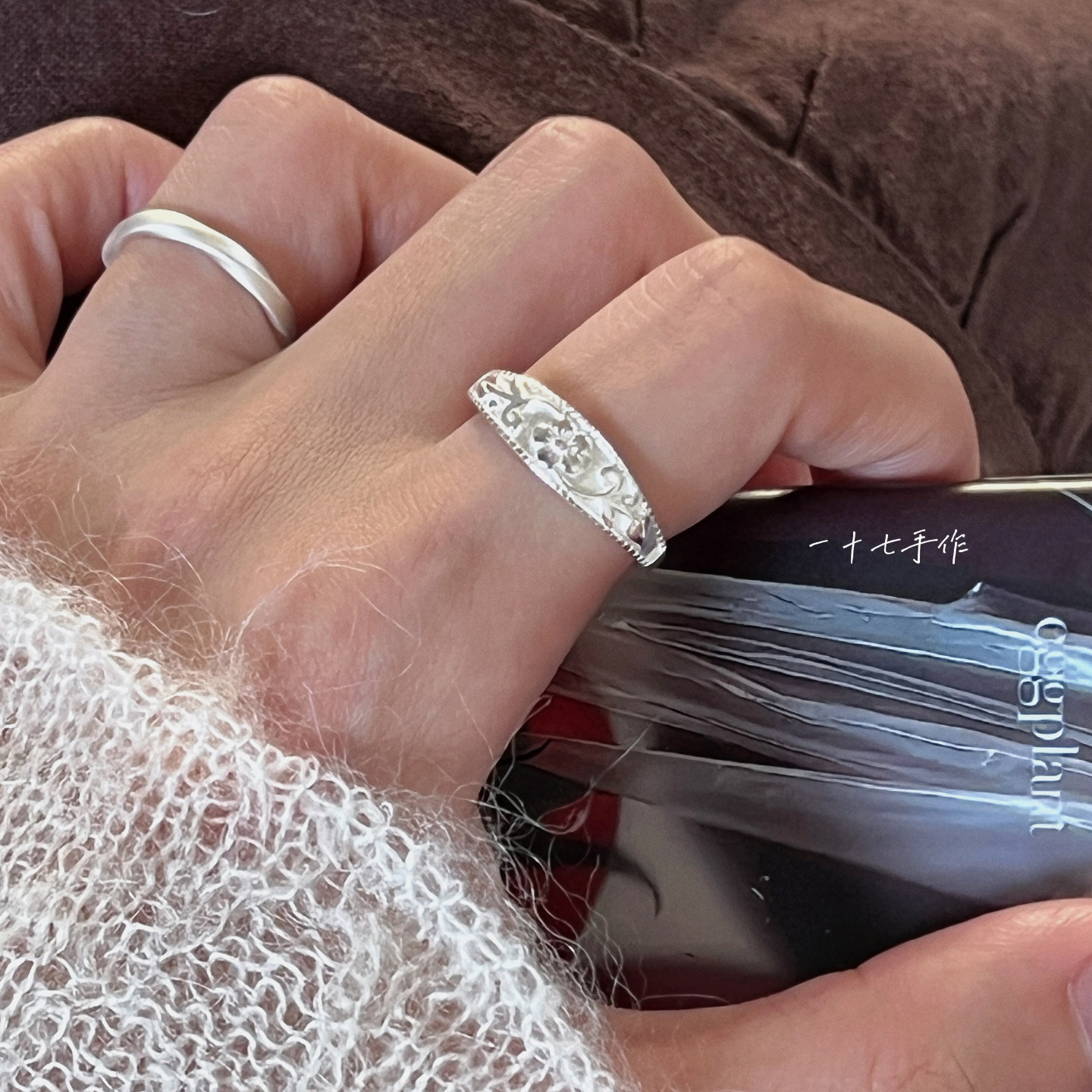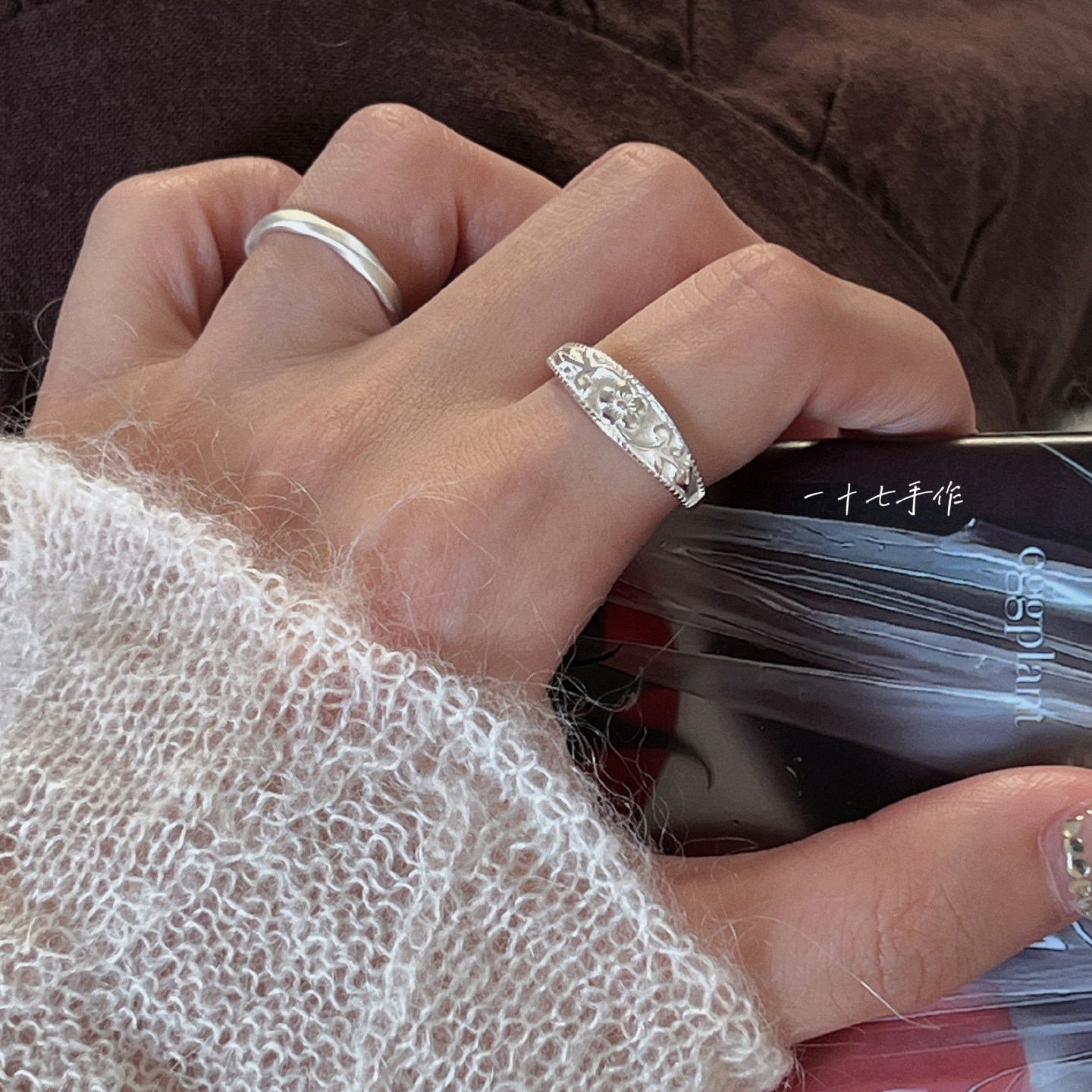 Seventeen Handmade "Plum Blossom Dyeing" Chinese Style New Chinese Pattern S925 Silver Ring Niche Gift for Women