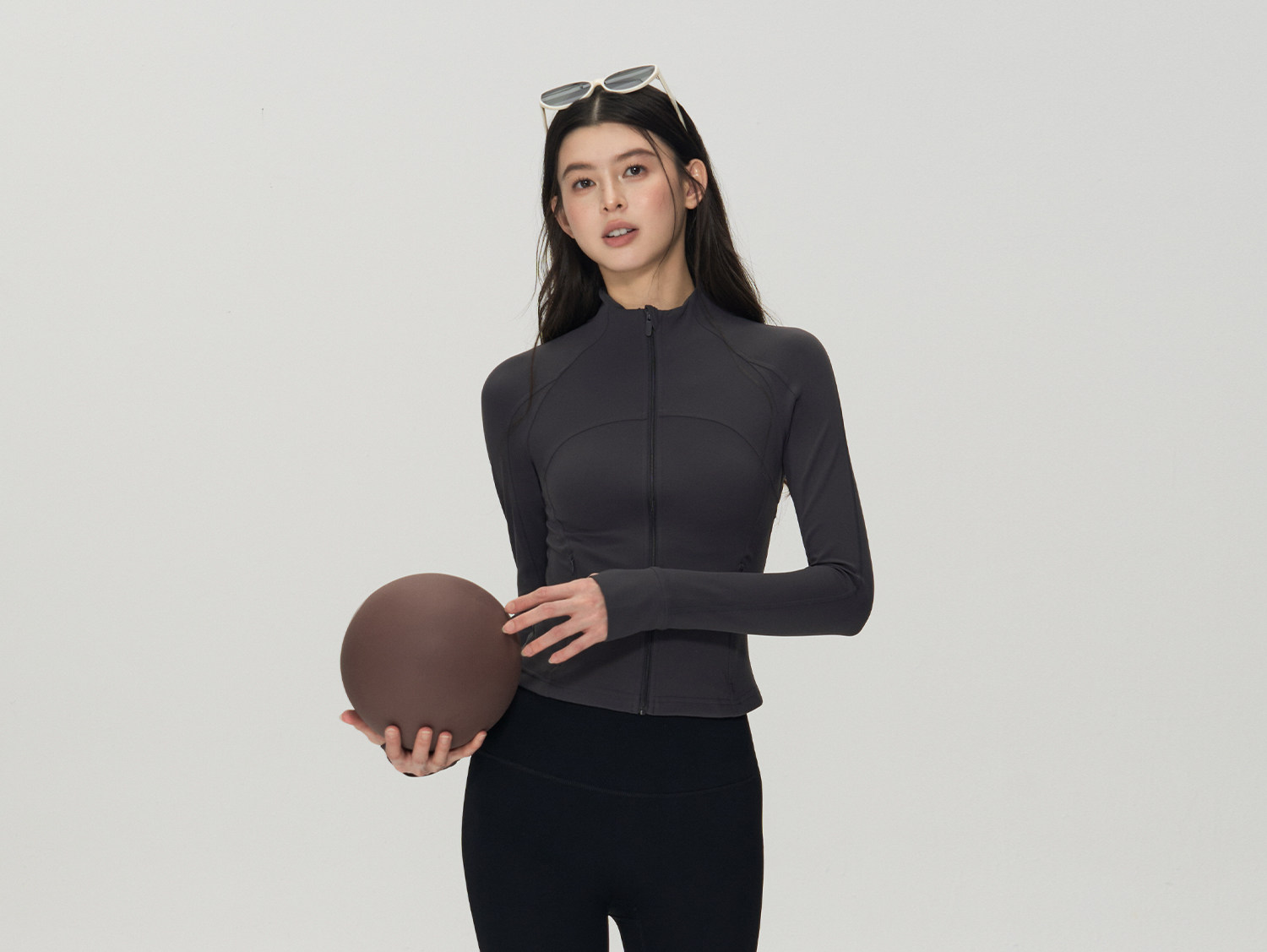Dcw Stand-Up Collar Sports Jacket for Women, Slim Fit, Long-Sleeved Fitness Top, Pilates Training Yoga Top, Cardigan Jacket
