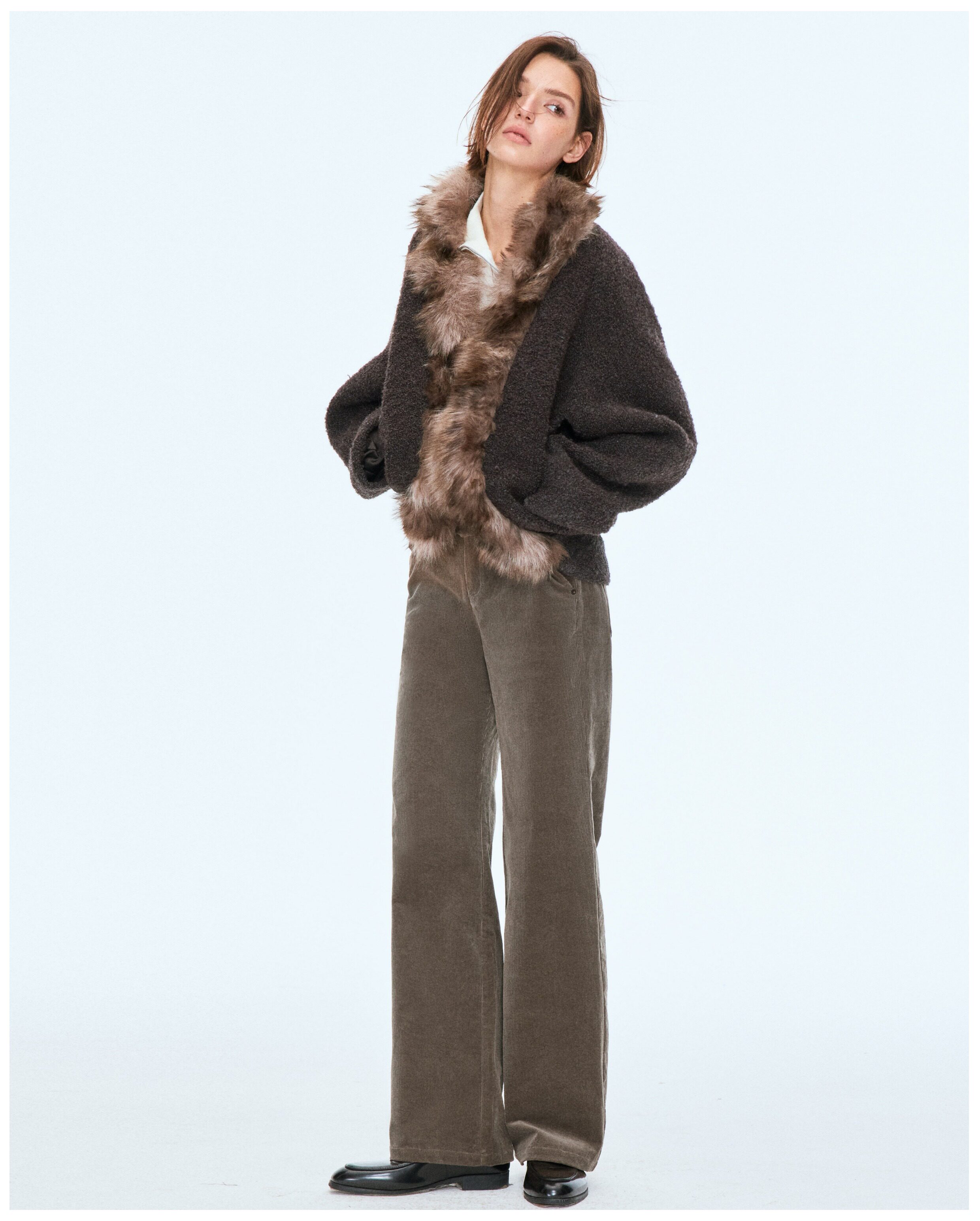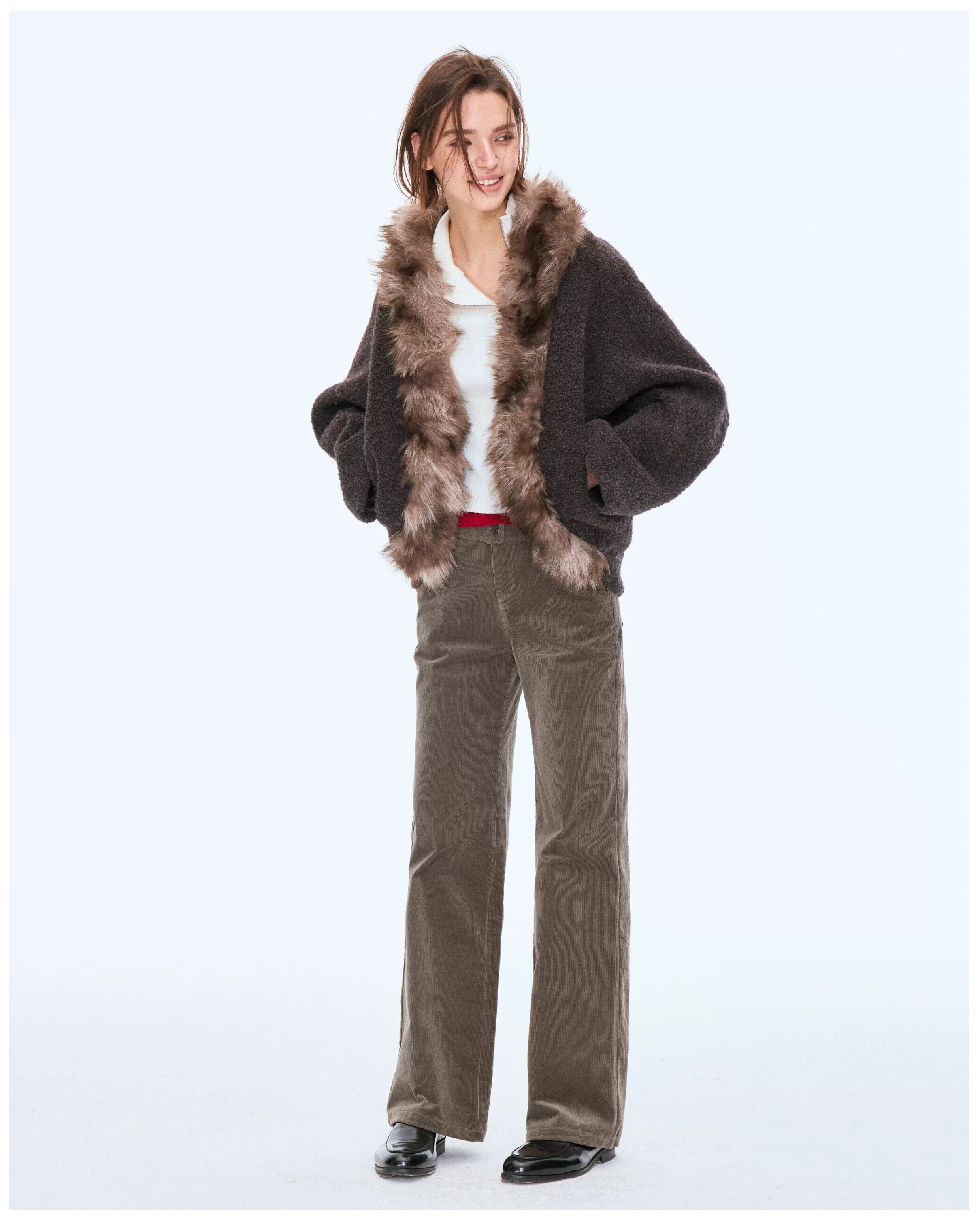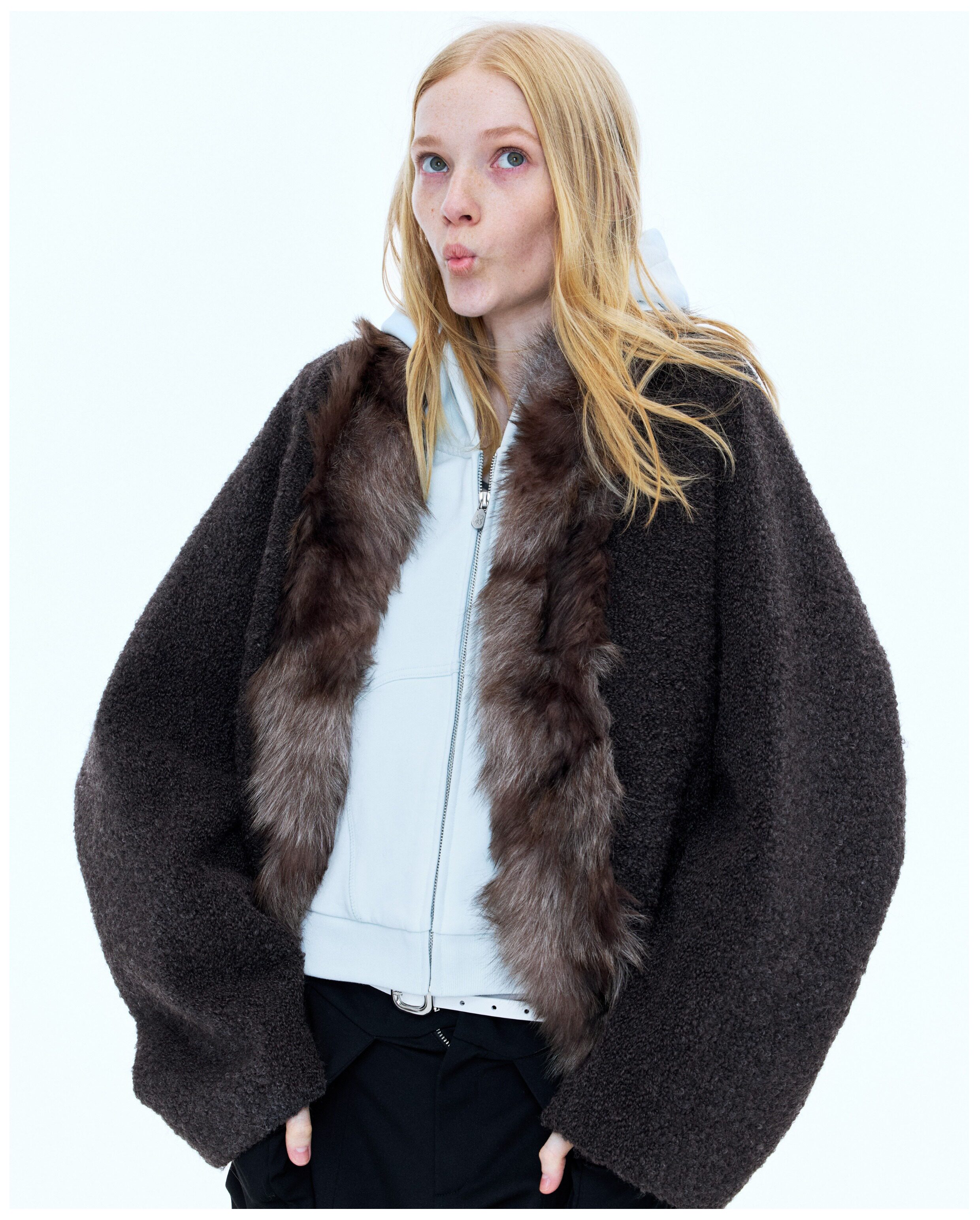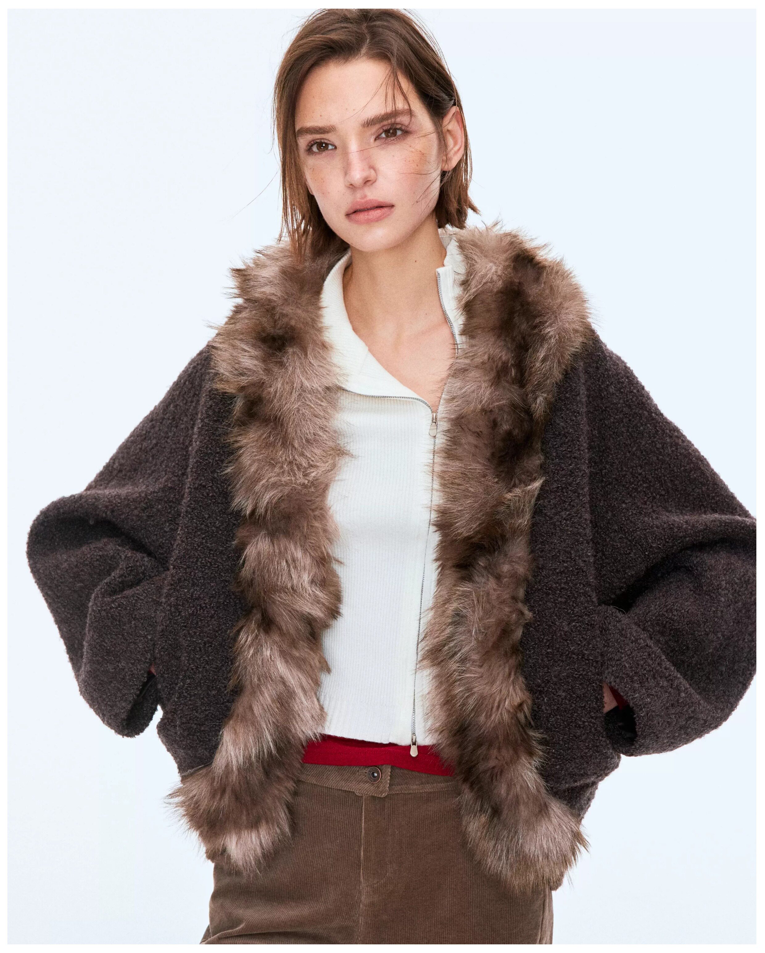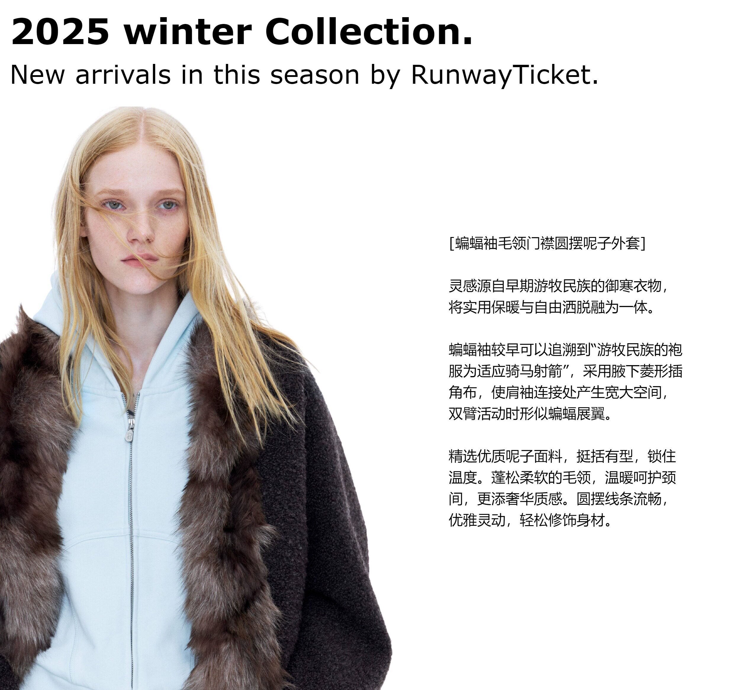 Runway Ticket Zhou Jieqiong's Same Style Retro Batwing Sleeve Woolen Coat with Fur Collar Winter Top