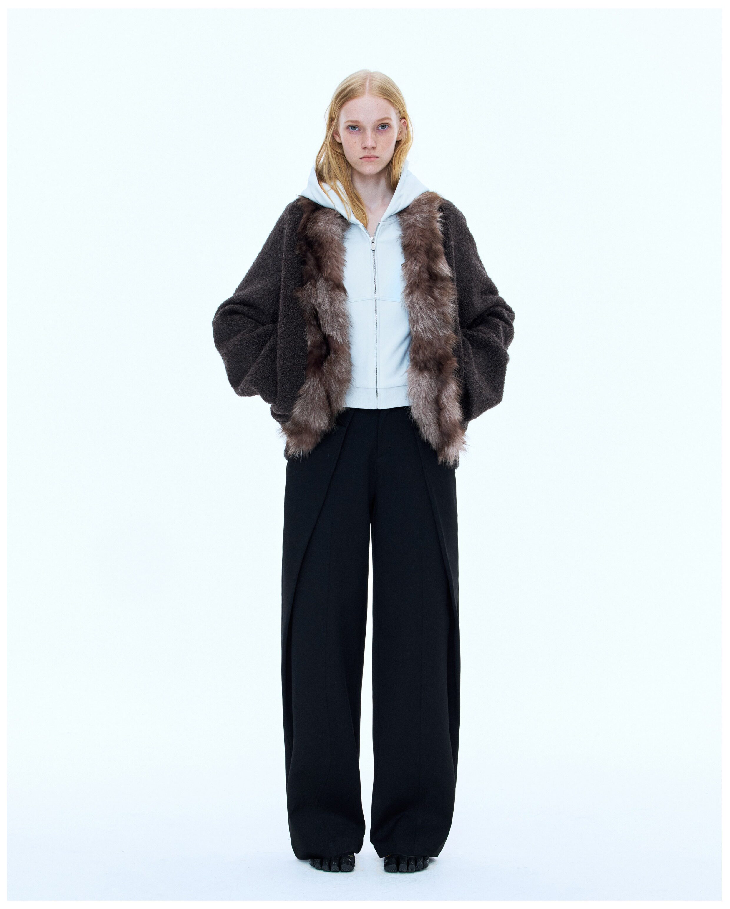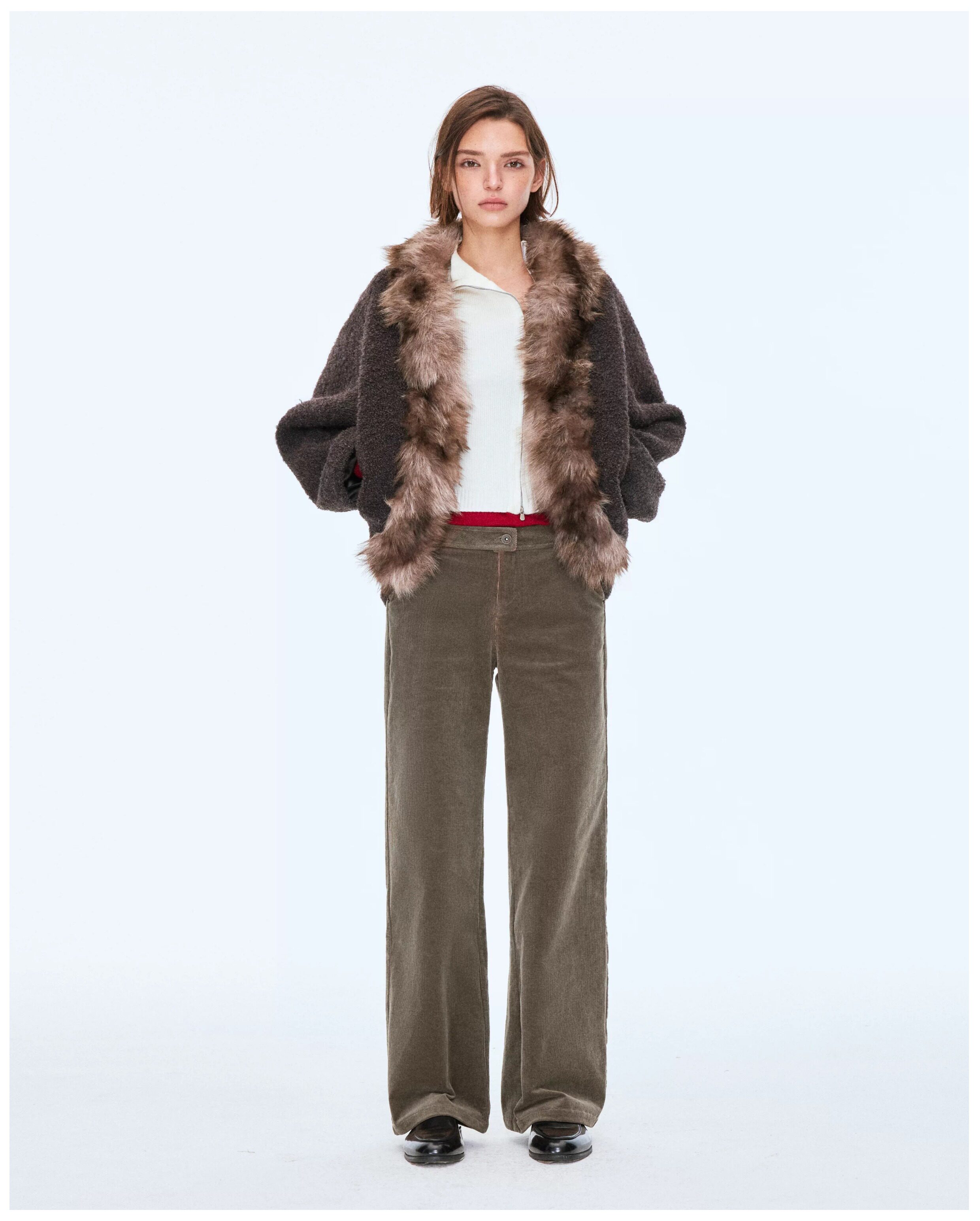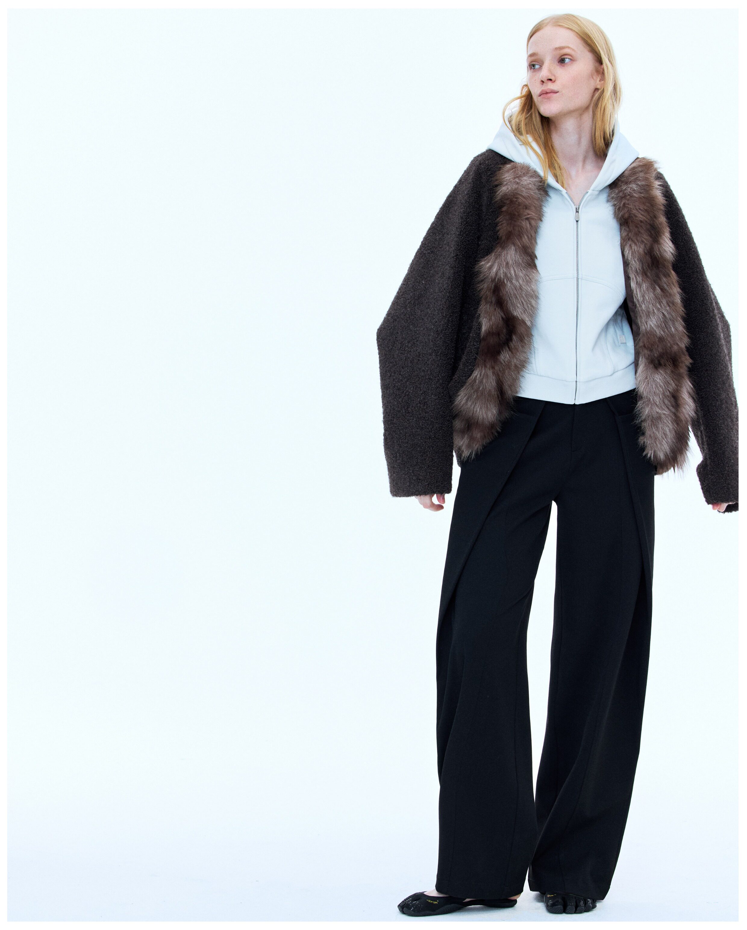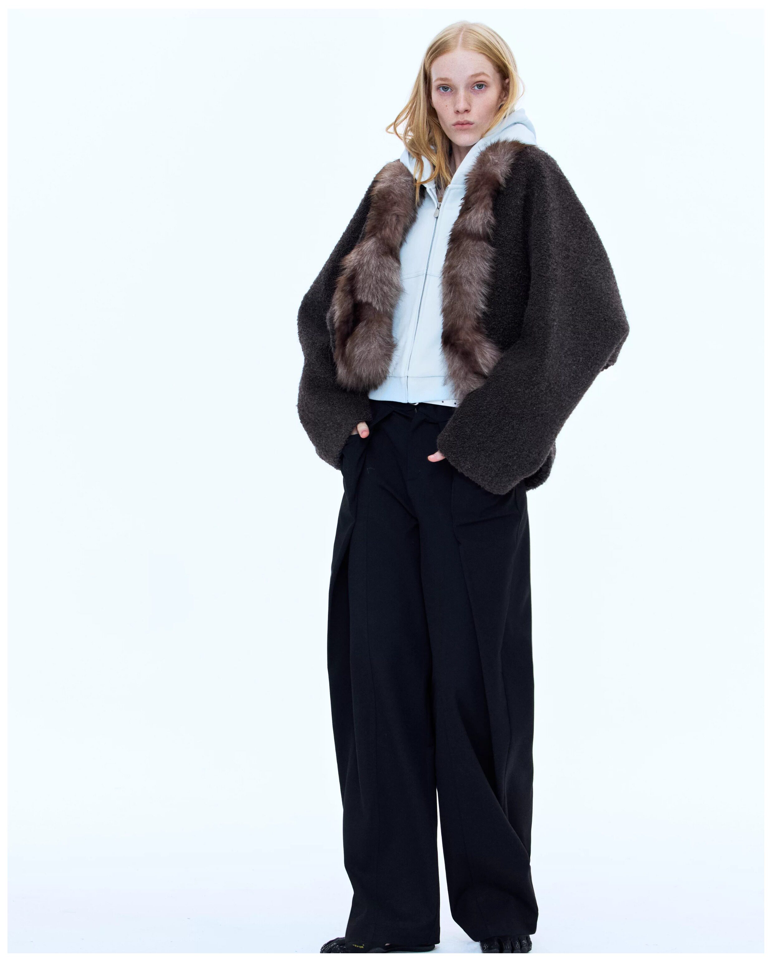 Runway Ticket Zhou Jieqiong's Same Style Retro Batwing Sleeve Woolen Coat with Fur Collar Winter Top