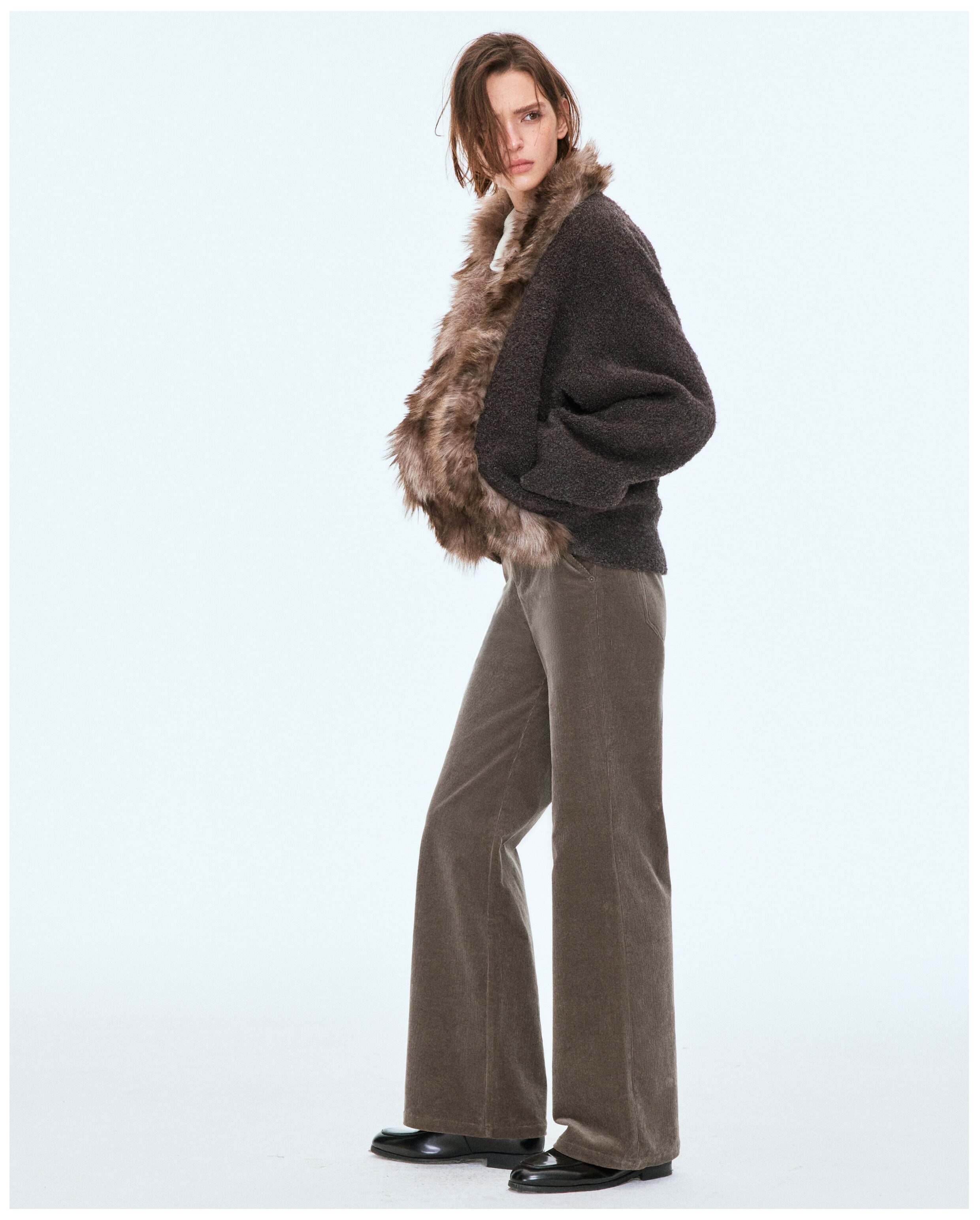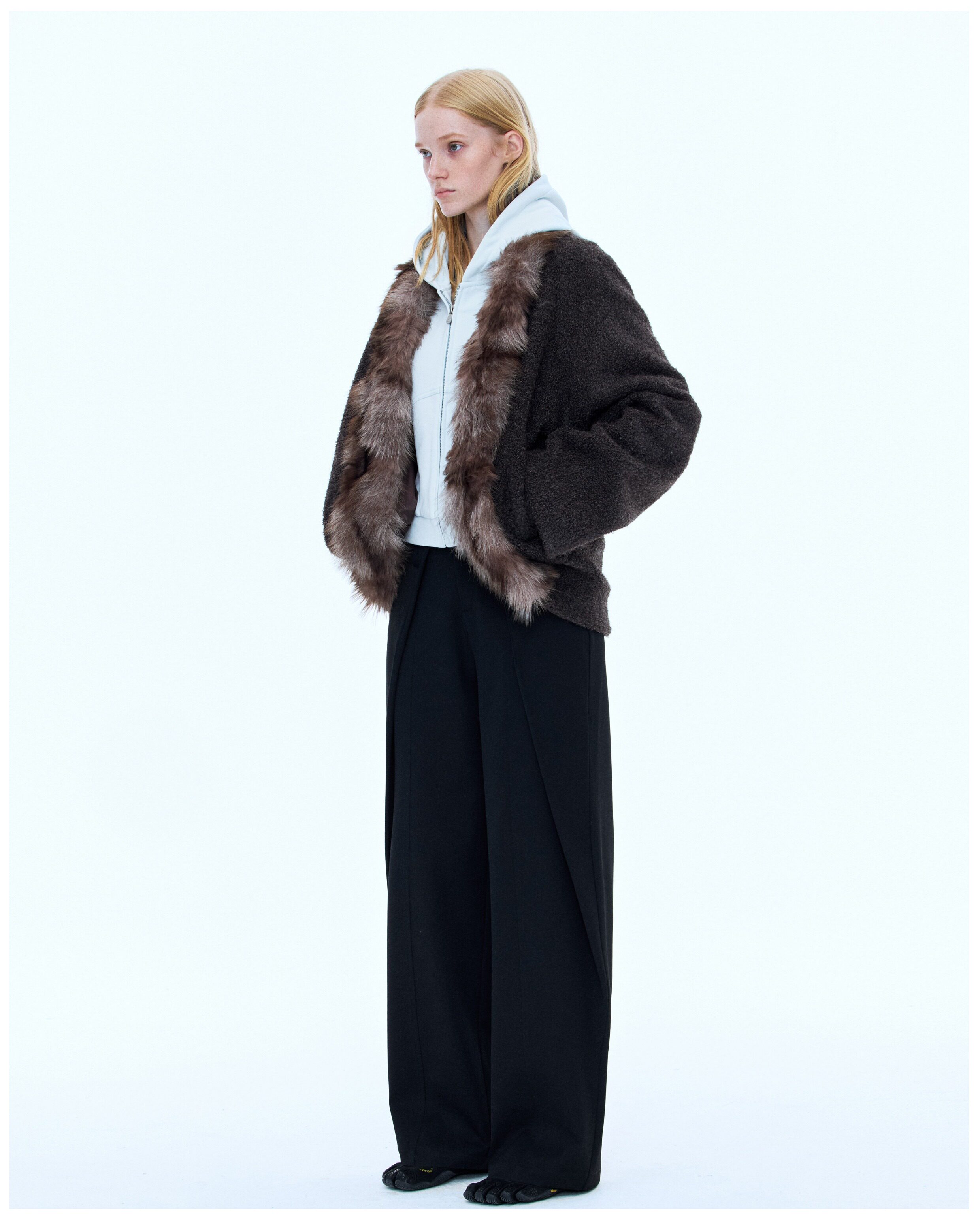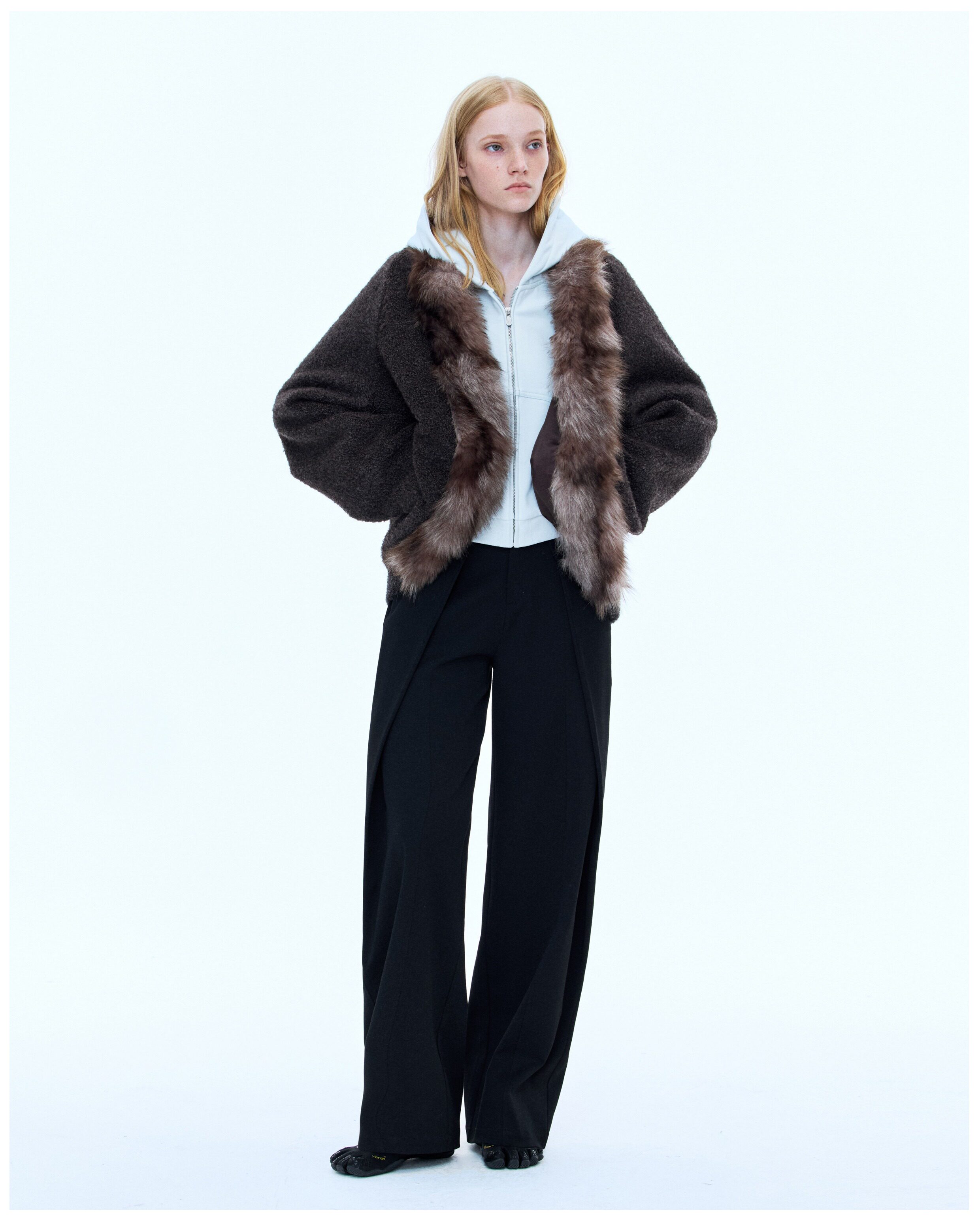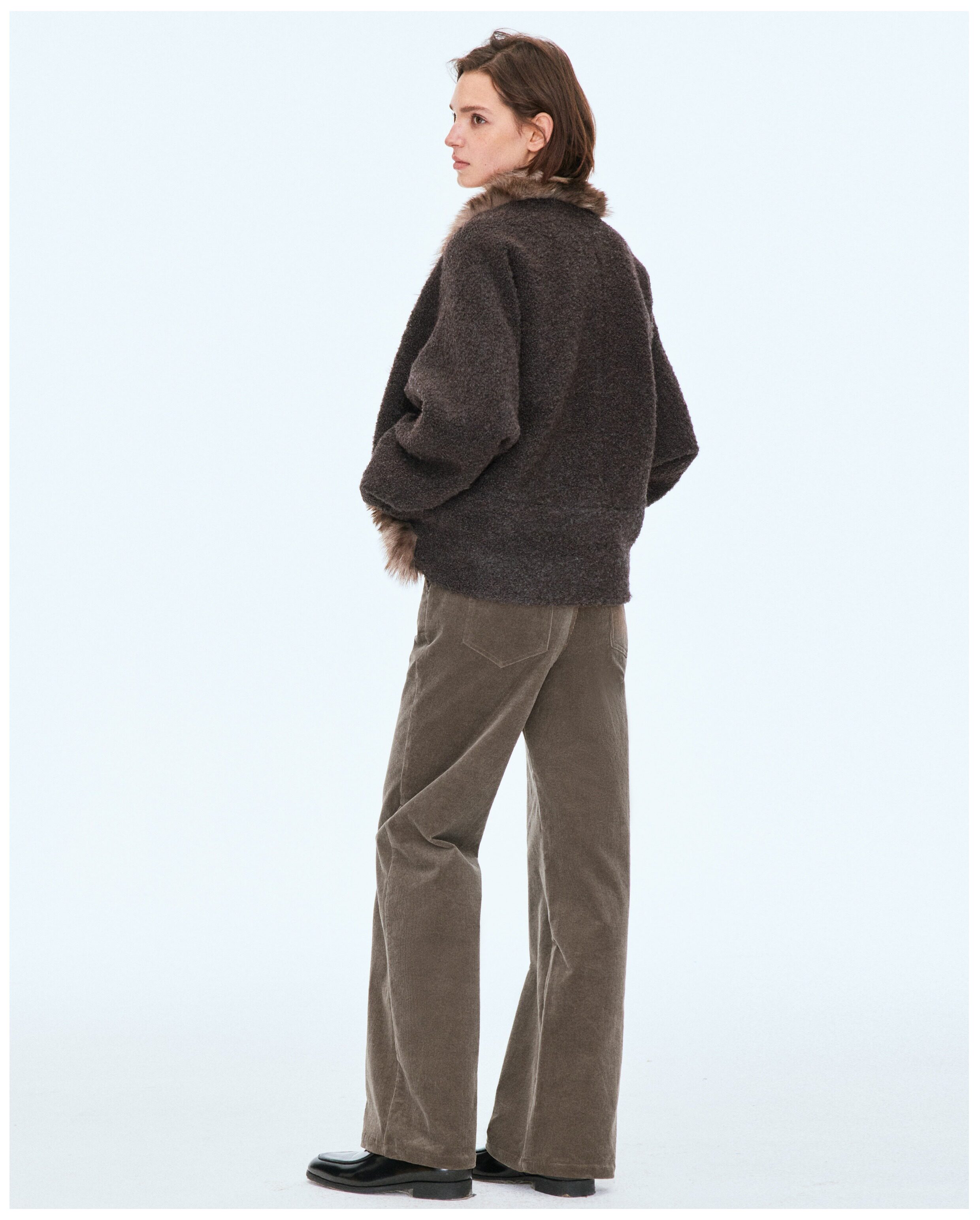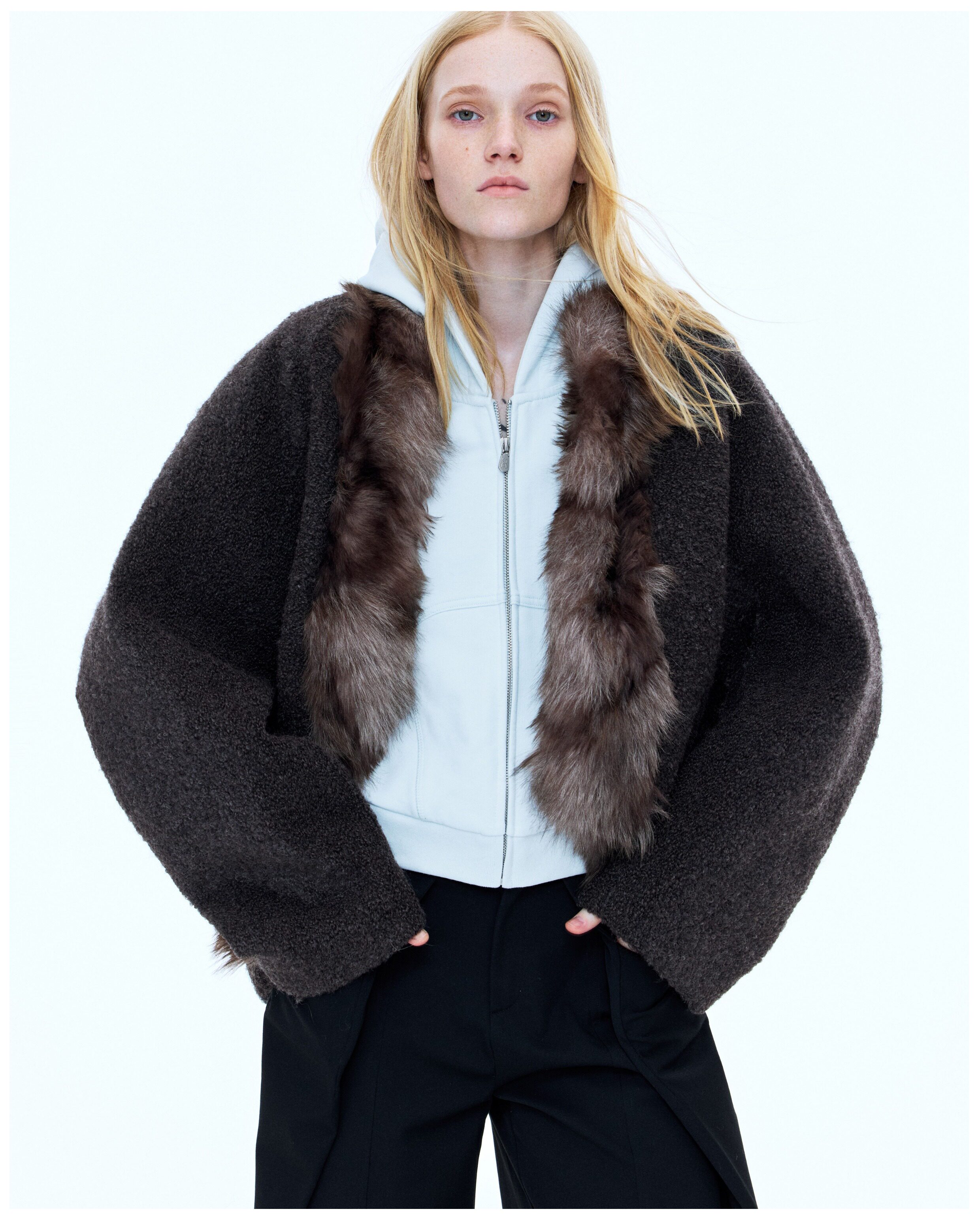 Runway Ticket Zhou Jieqiong's Same Style Retro Batwing Sleeve Woolen Coat with Fur Collar Winter Top