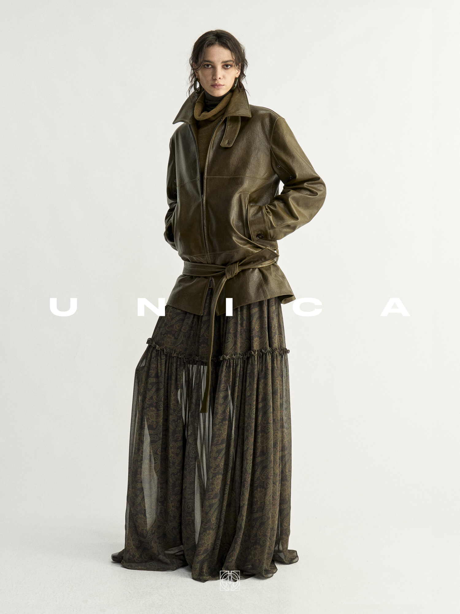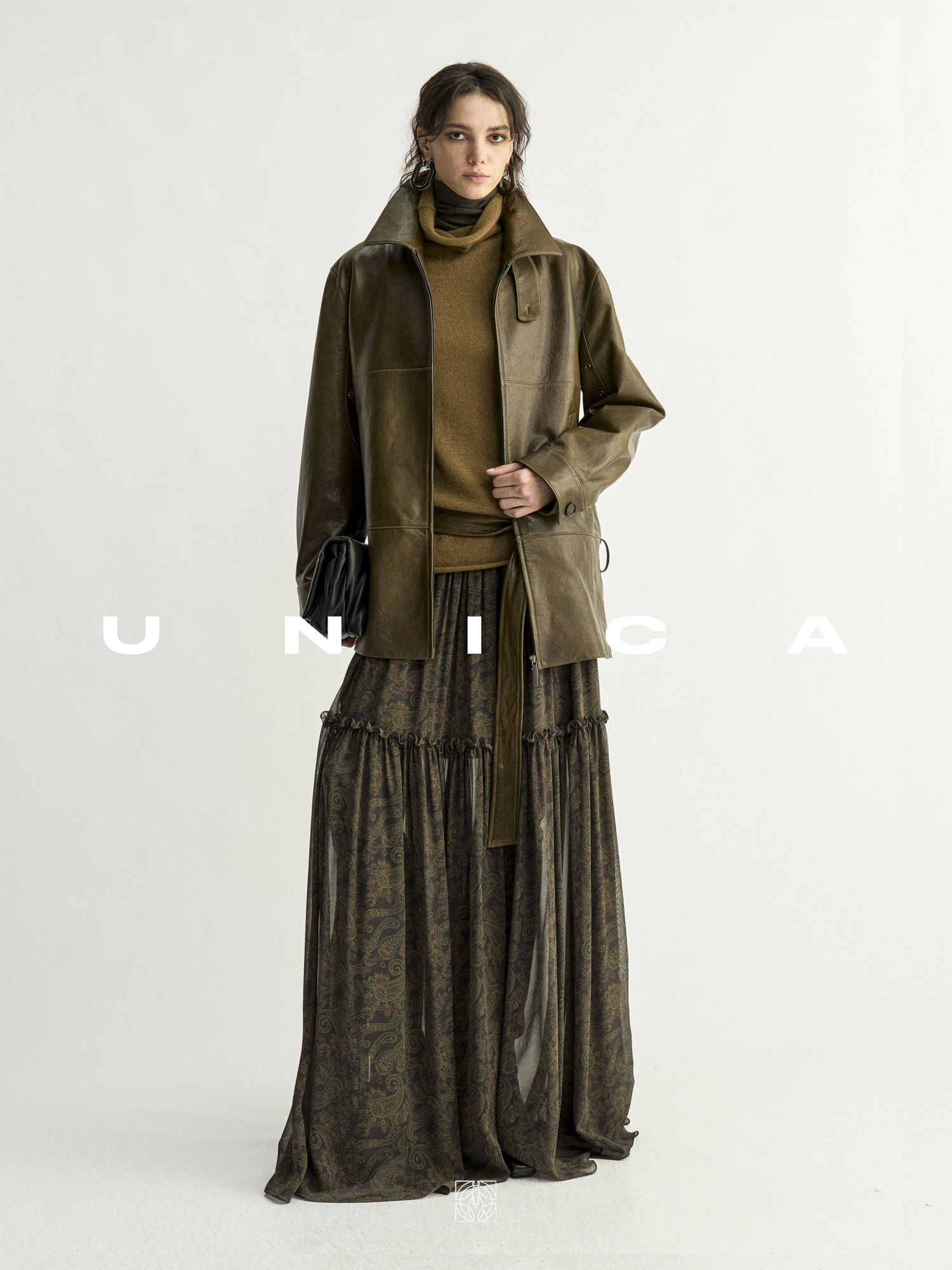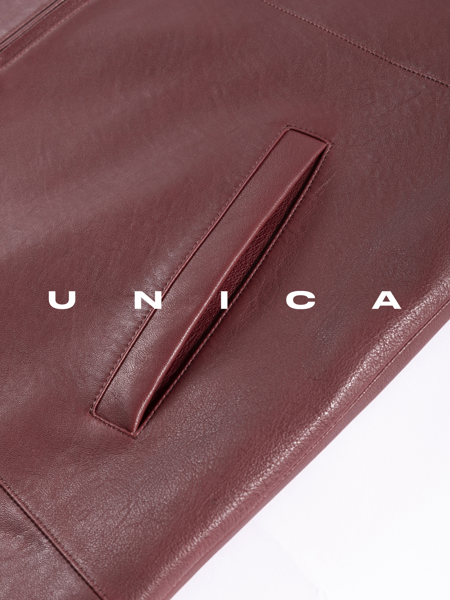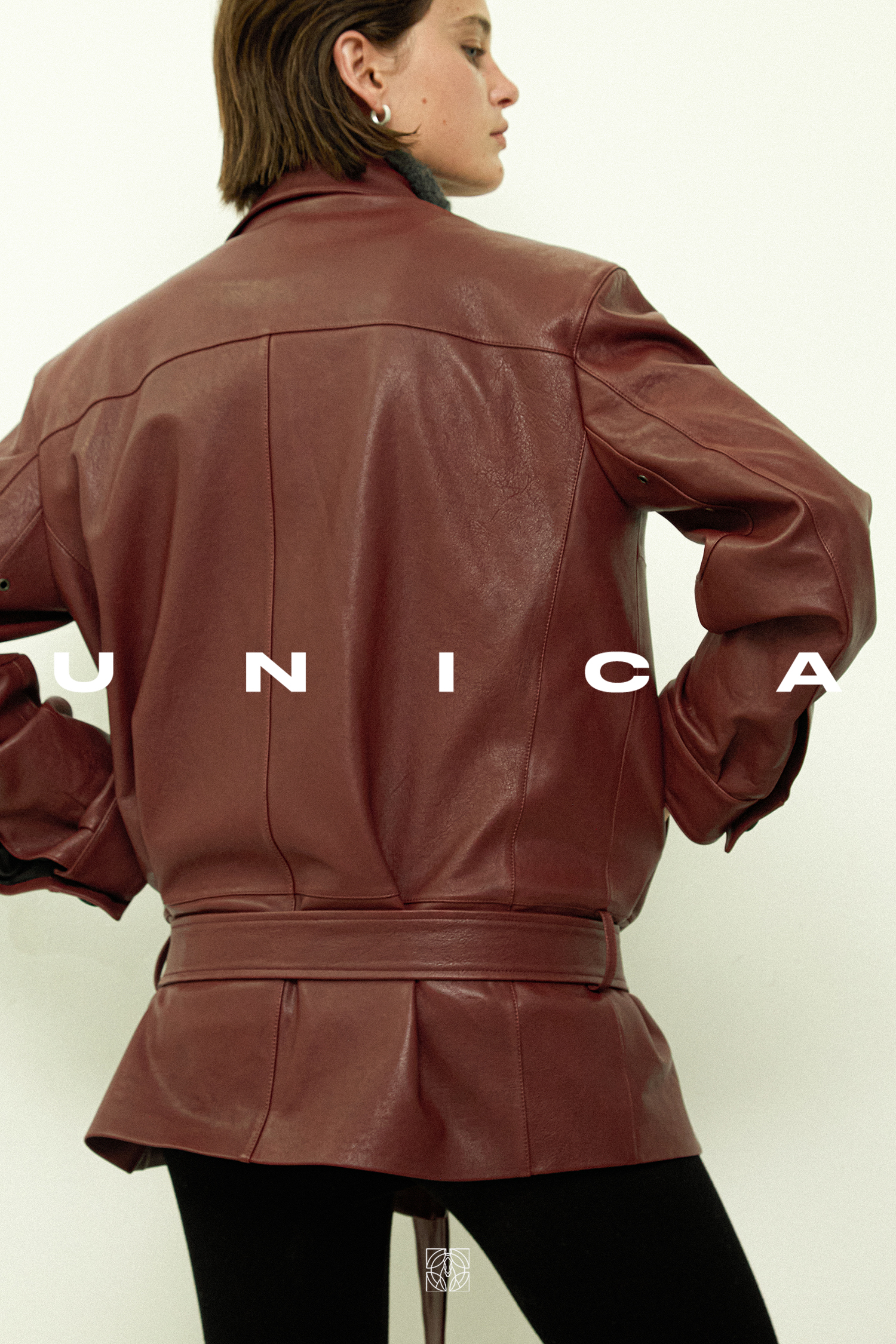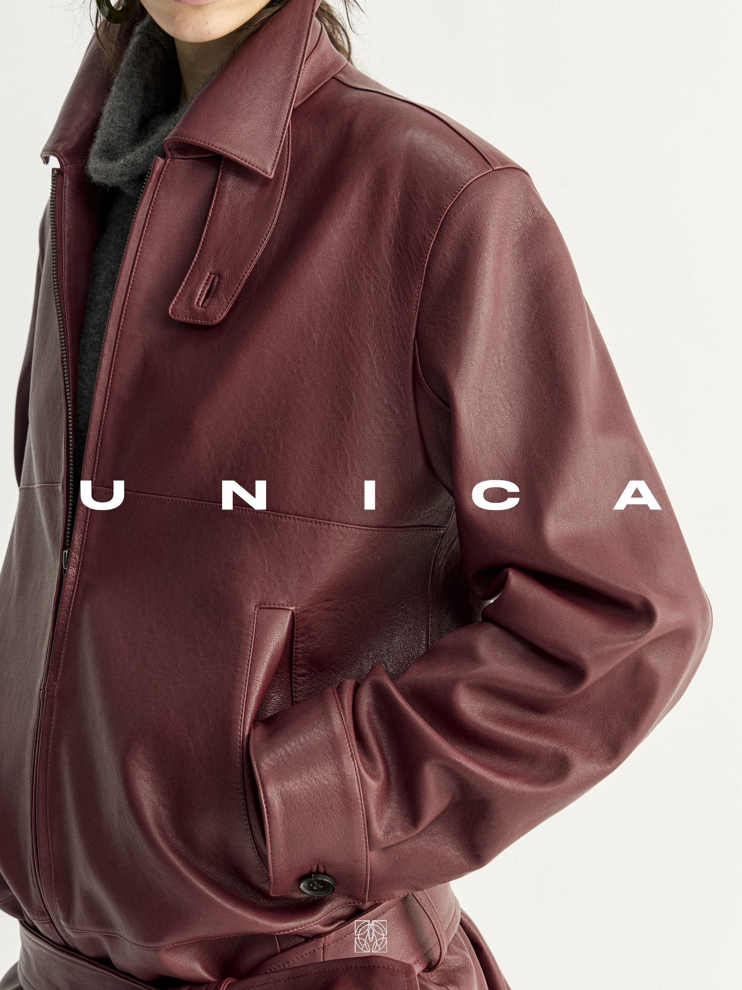 Unica/Ys*L Retro Wide-Shoulder Two-Way Collar Low-Waist Belt European Imported Uncoated Leather Jacket