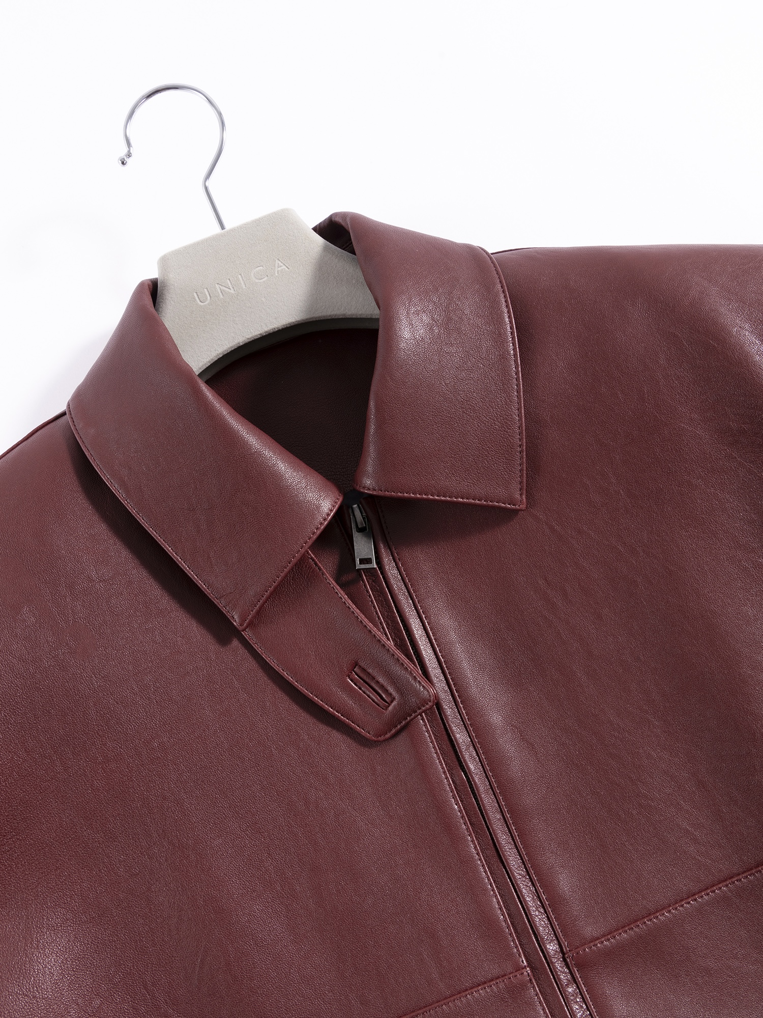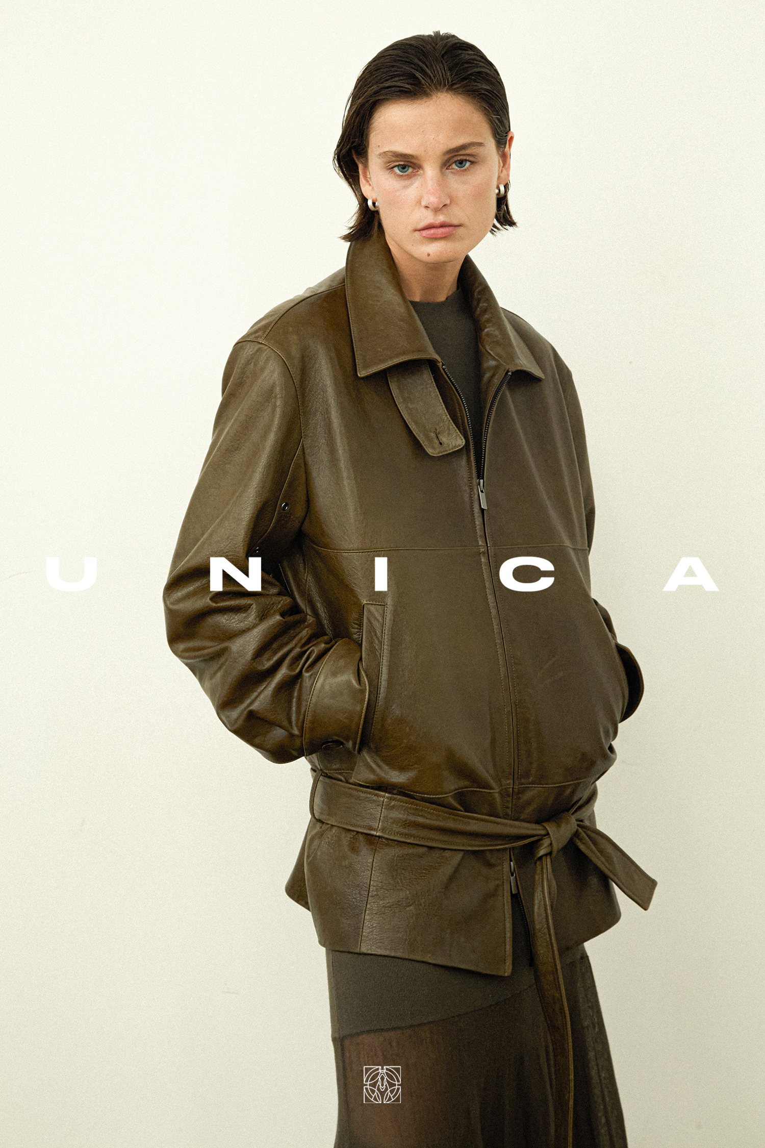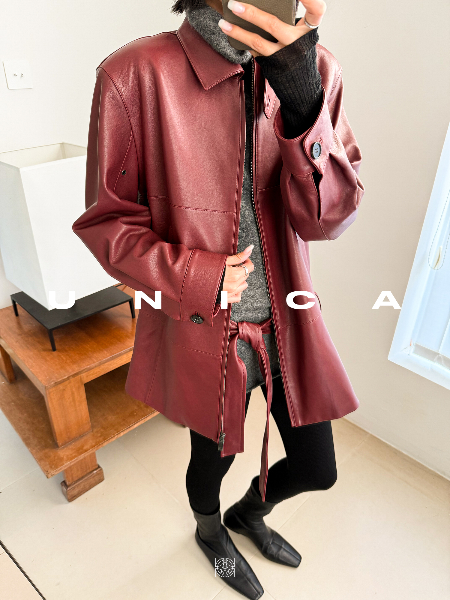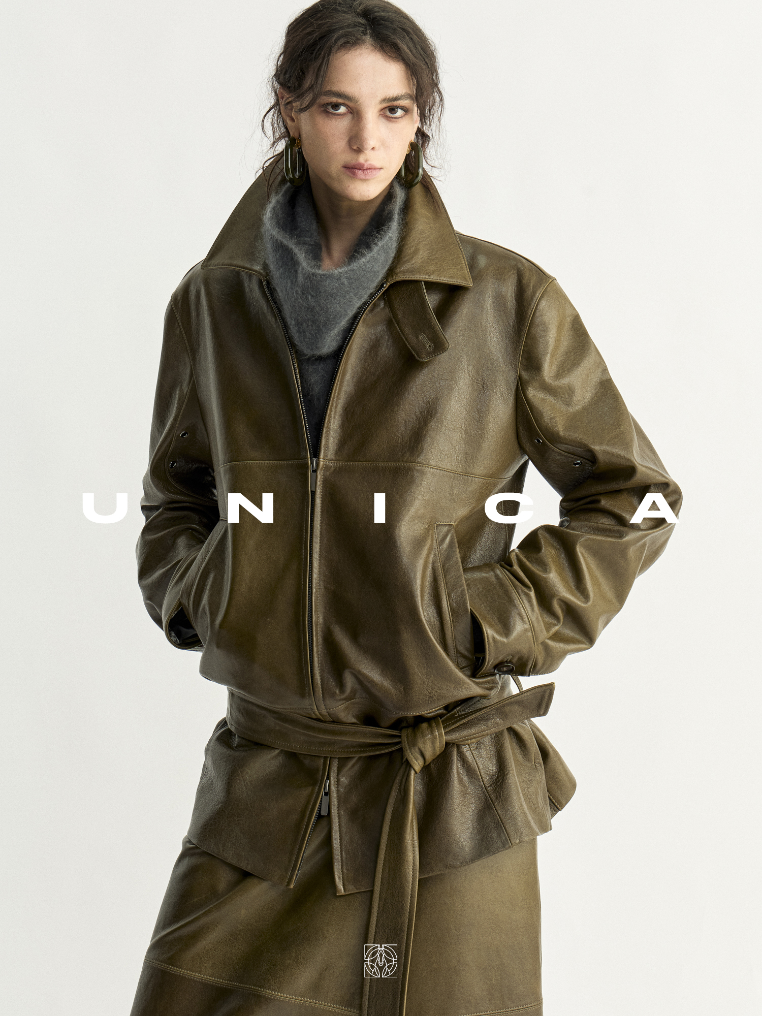 Unica/Ys*L Retro Wide-Shoulder Two-Way Collar Low-Waist Belt European Imported Uncoated Leather Jacket